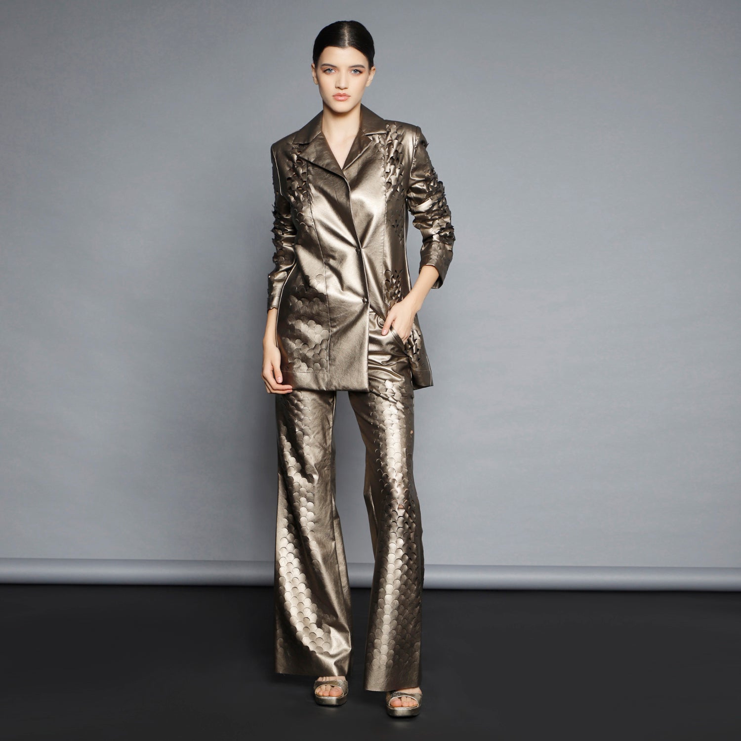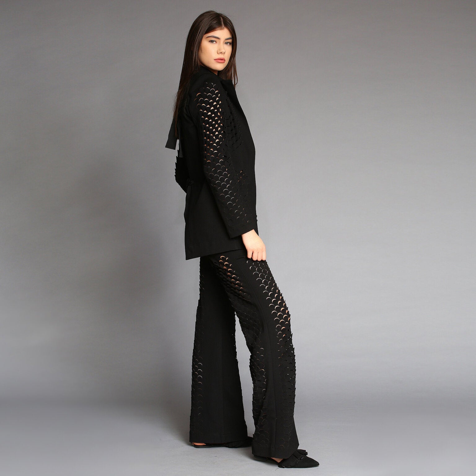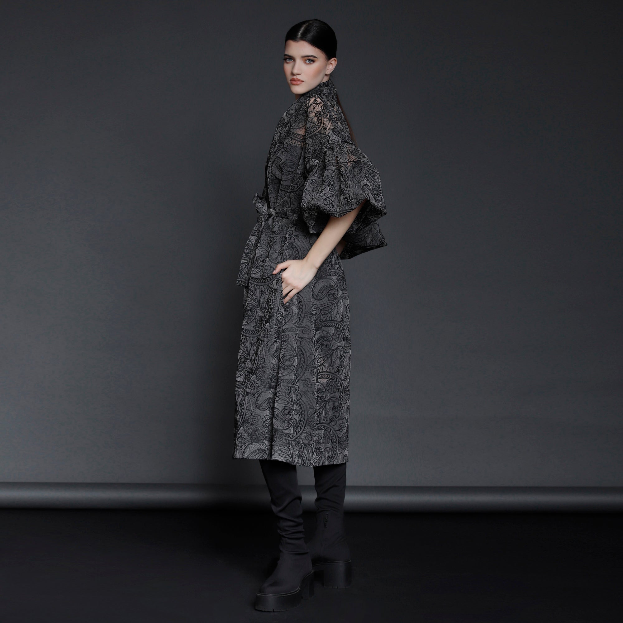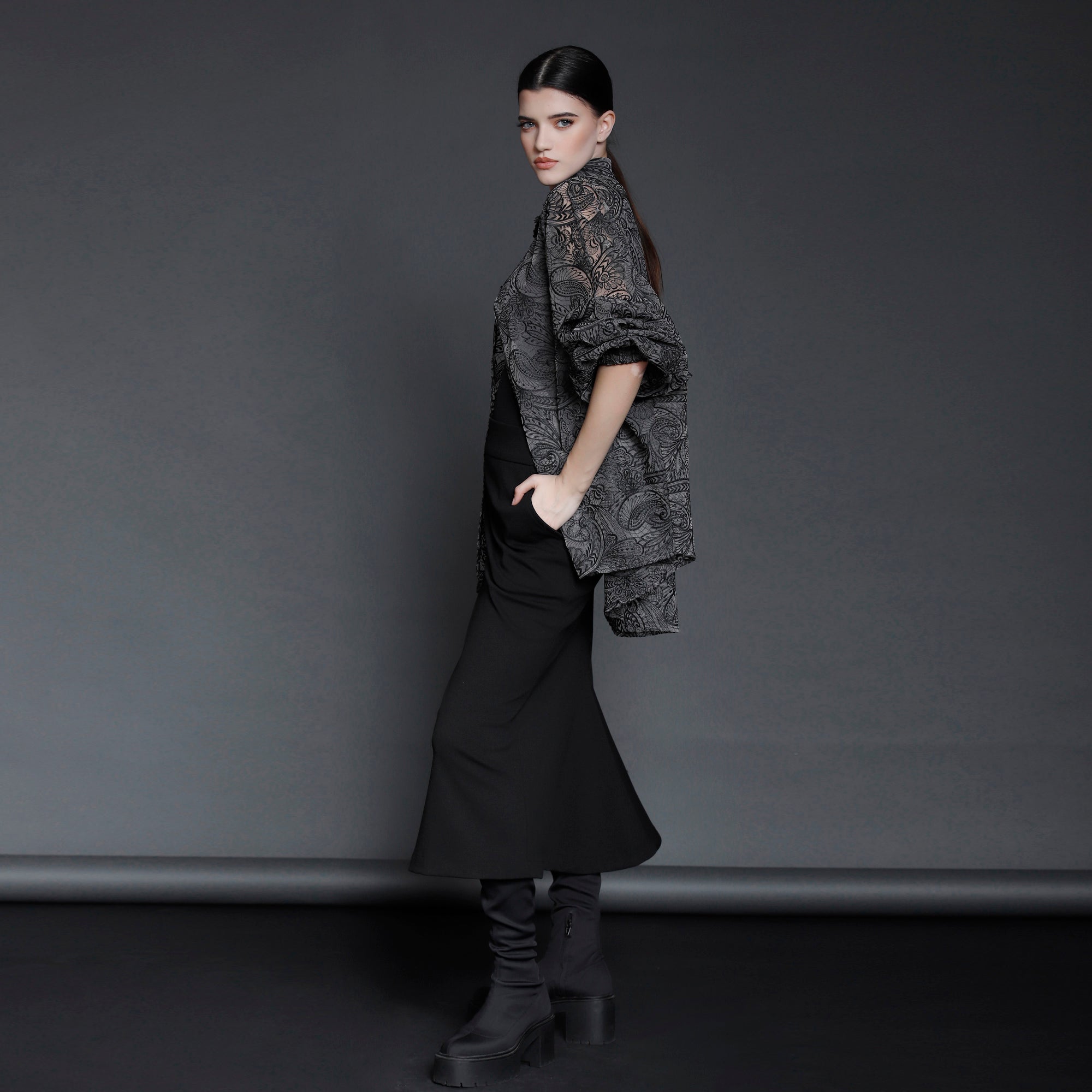 No stock is kept and no fabric is wasted. A highly skilled team ensures exceptional quality and fit. Designs from Iconic pieces or previous collections can be made to order with custom fabric options from the current selection.