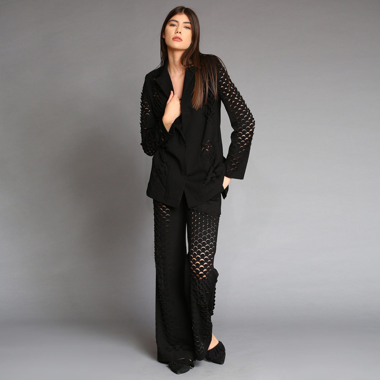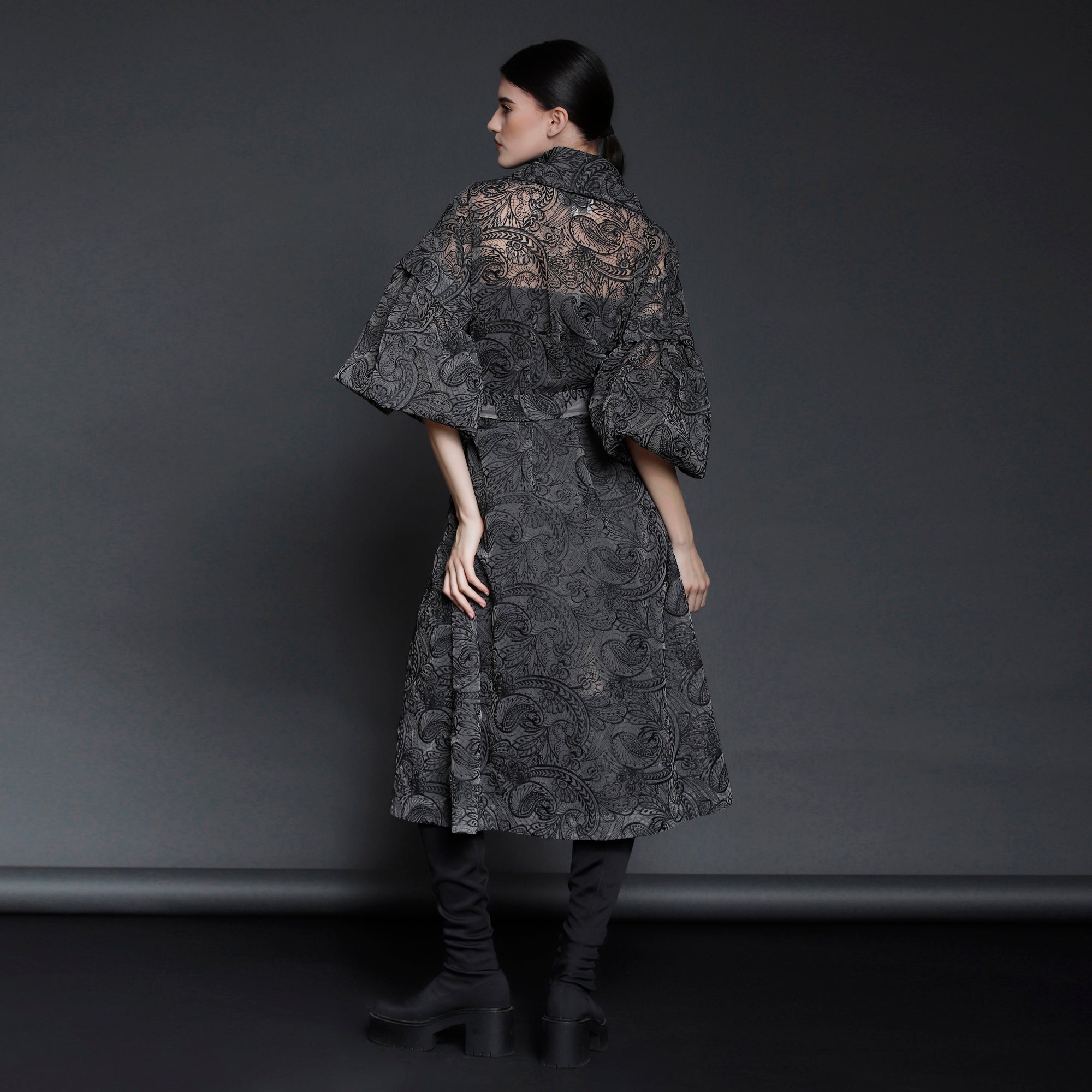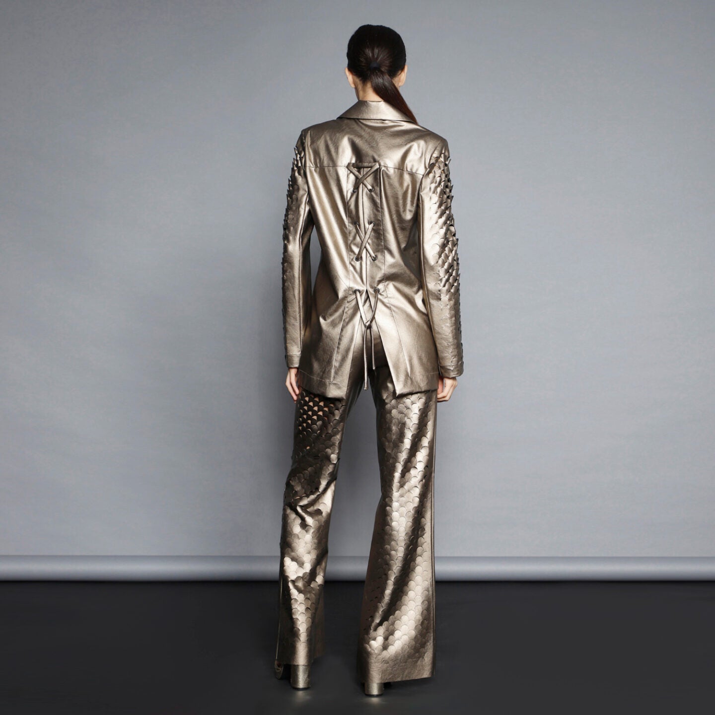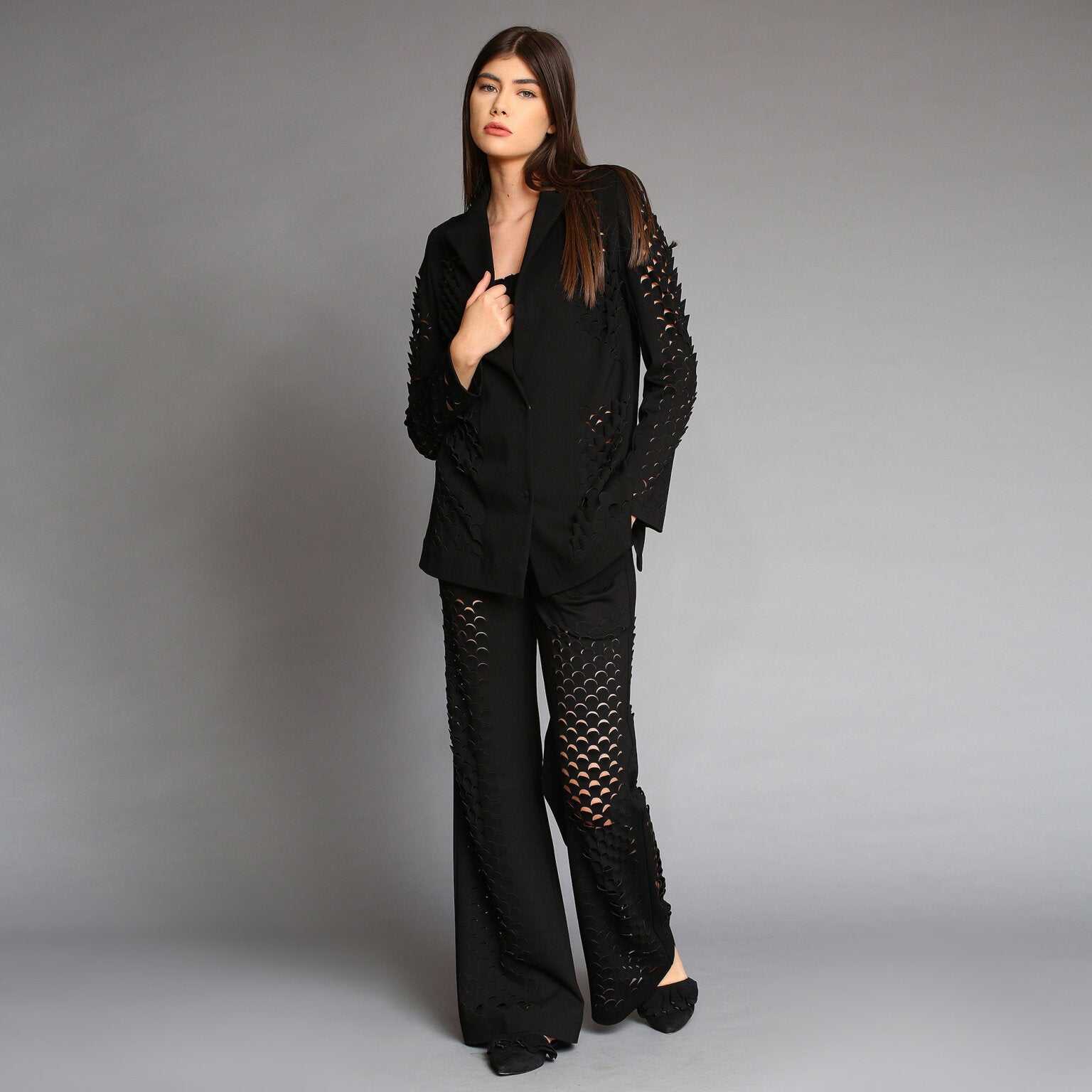 No stock is kept and no fabric is wasted. A highly skilled team ensures exceptional quality and fit. Designs from Iconic pieces or previous collections can be made to order with custom fabric options from the current selection.