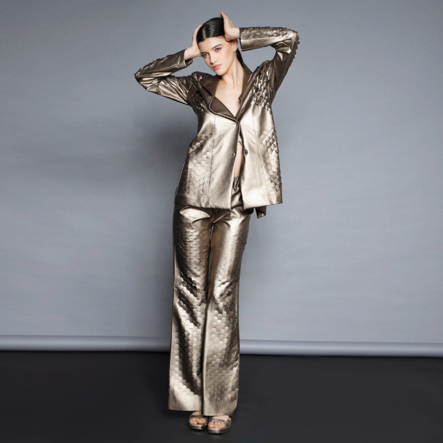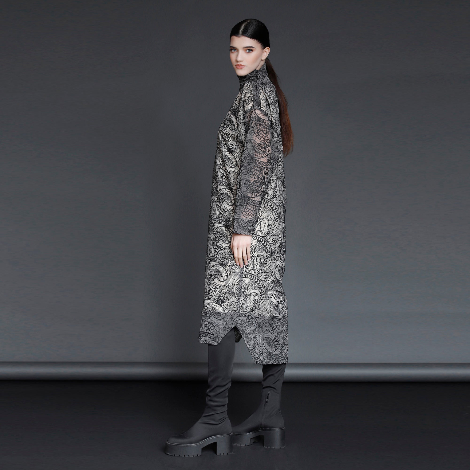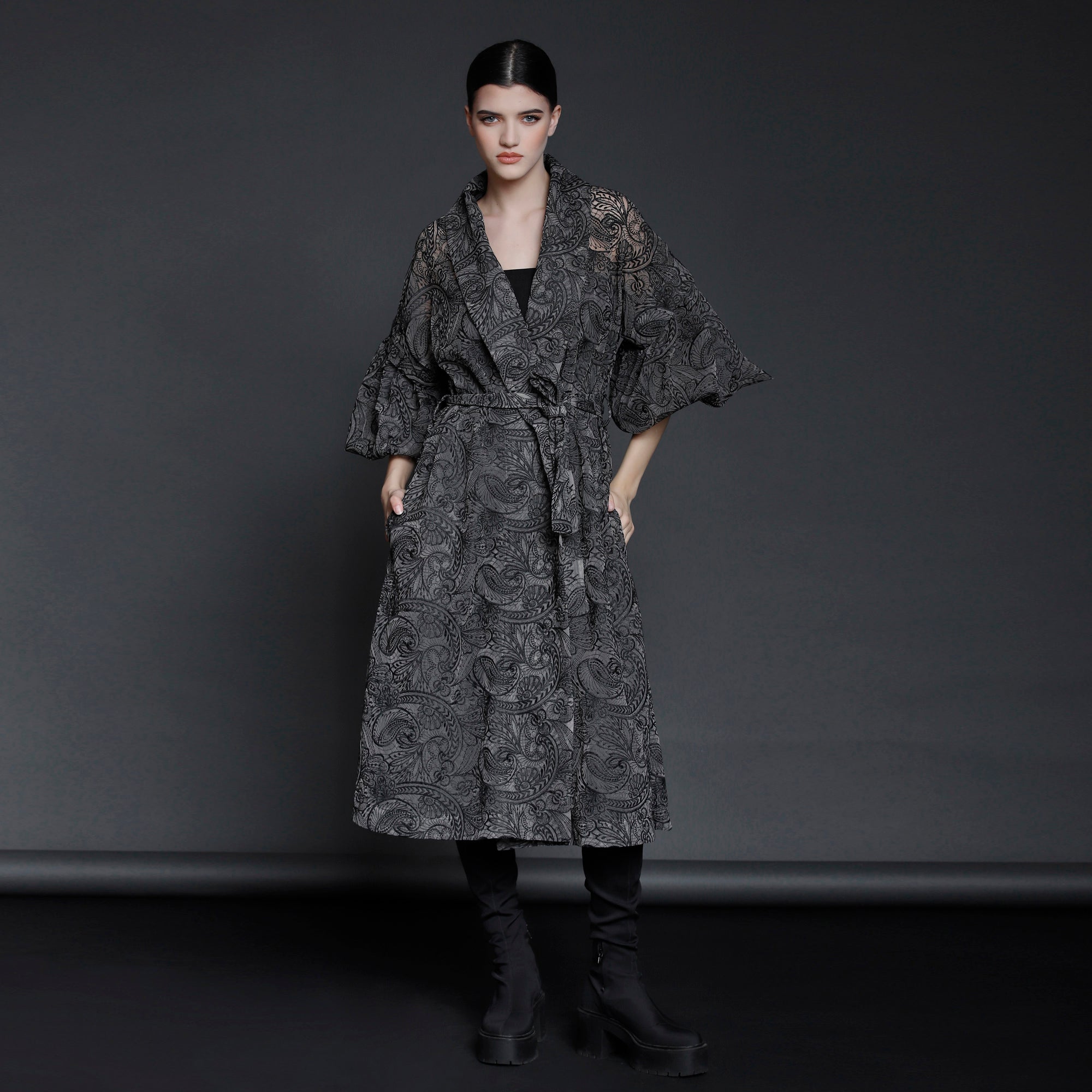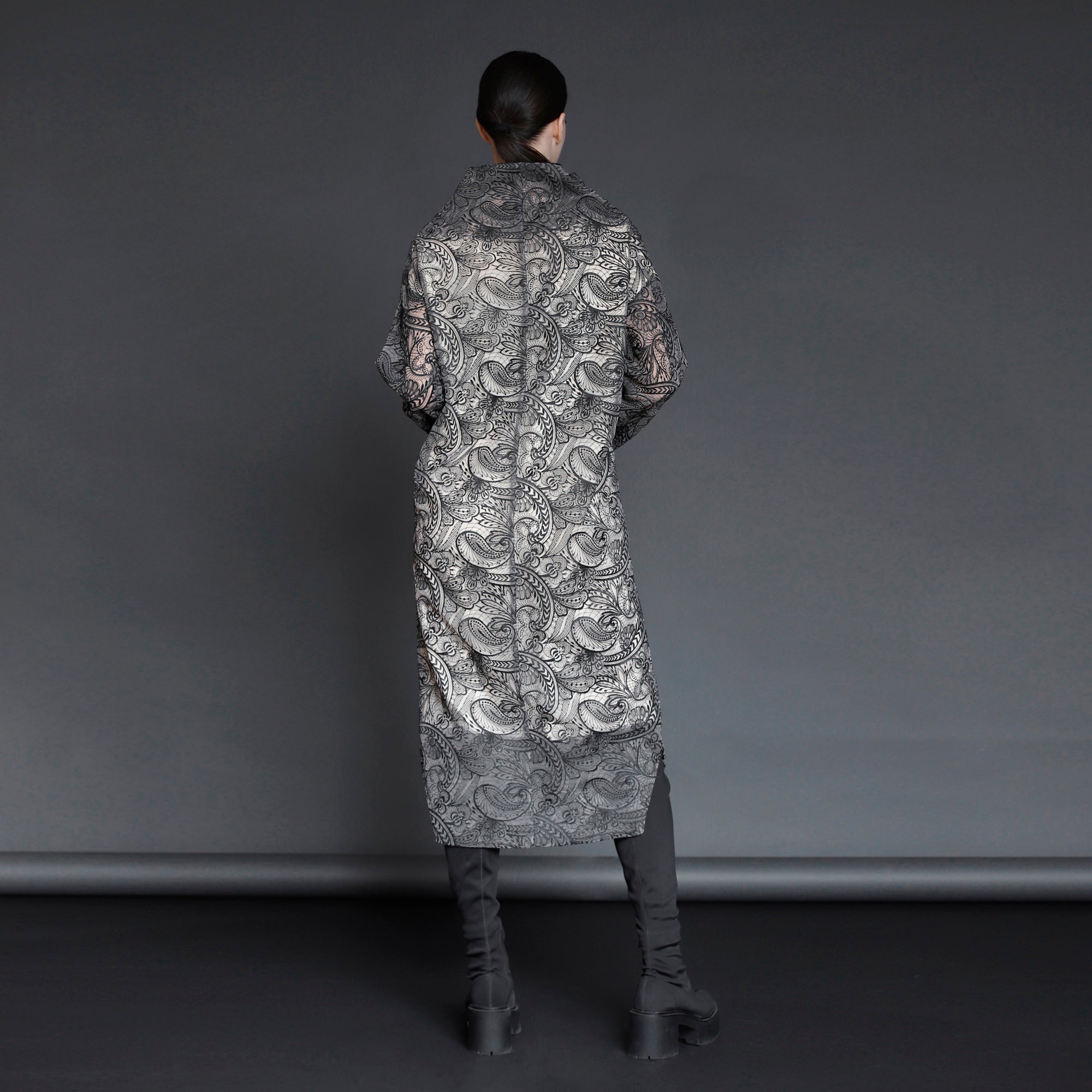 No stock is kept and no fabric is wasted. A highly skilled team ensures exceptional quality and fit. Designs from Iconic pieces or previous collections can be made to order with custom fabric options from the current selection.