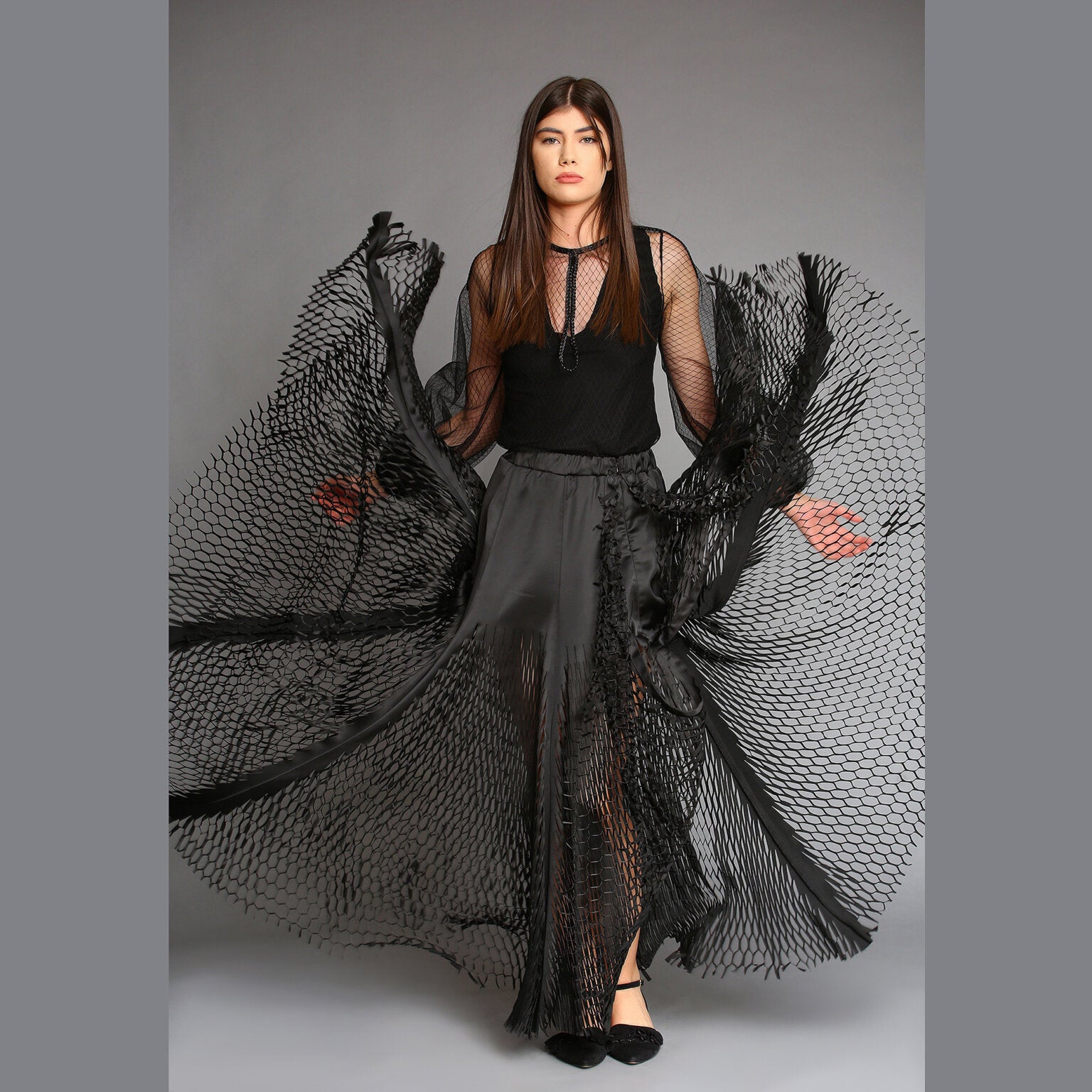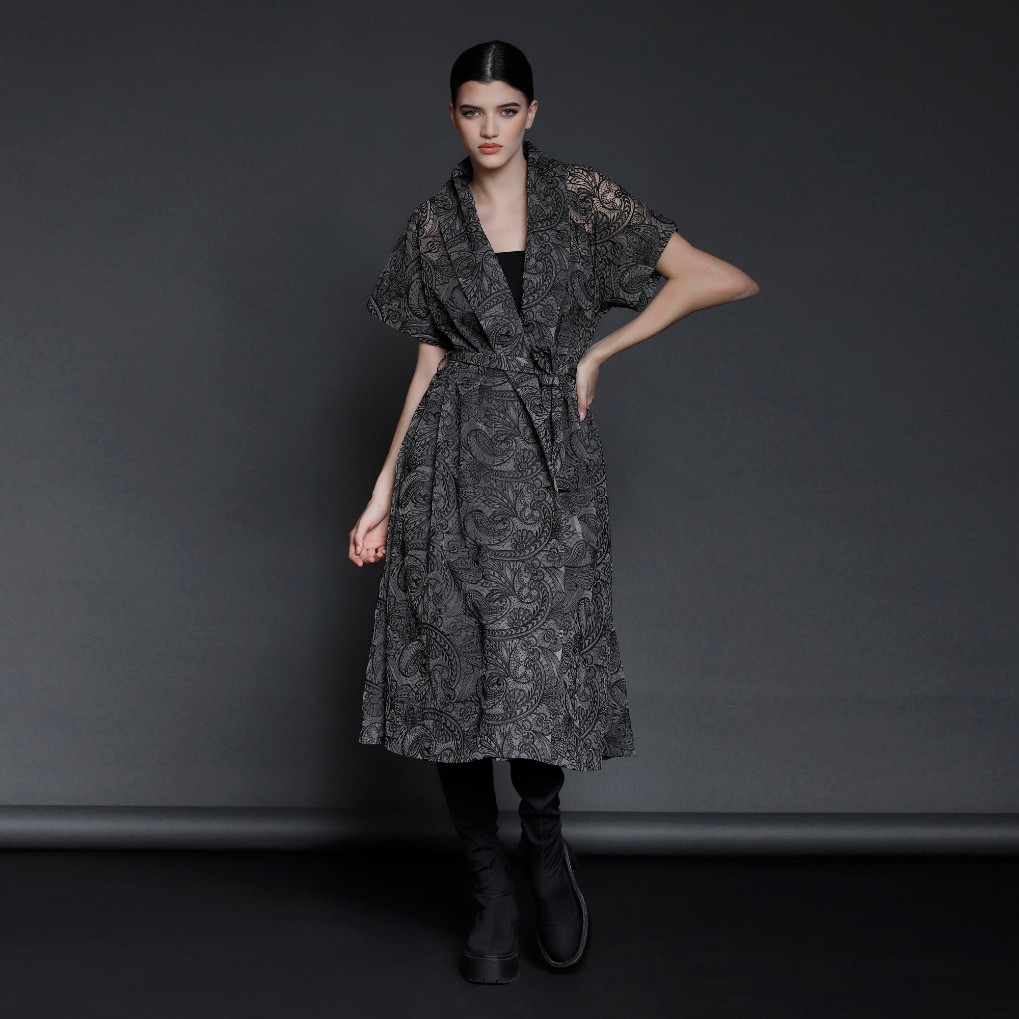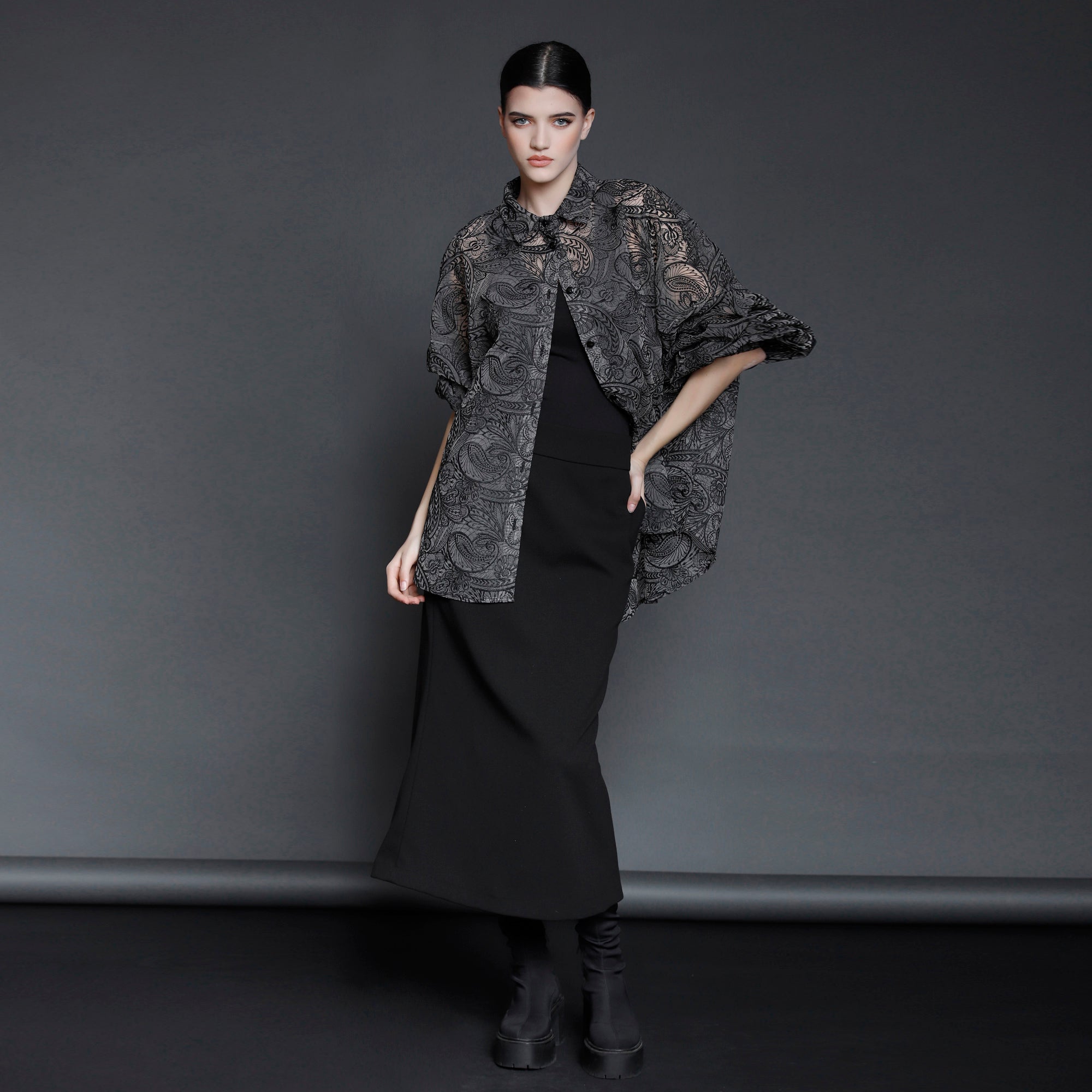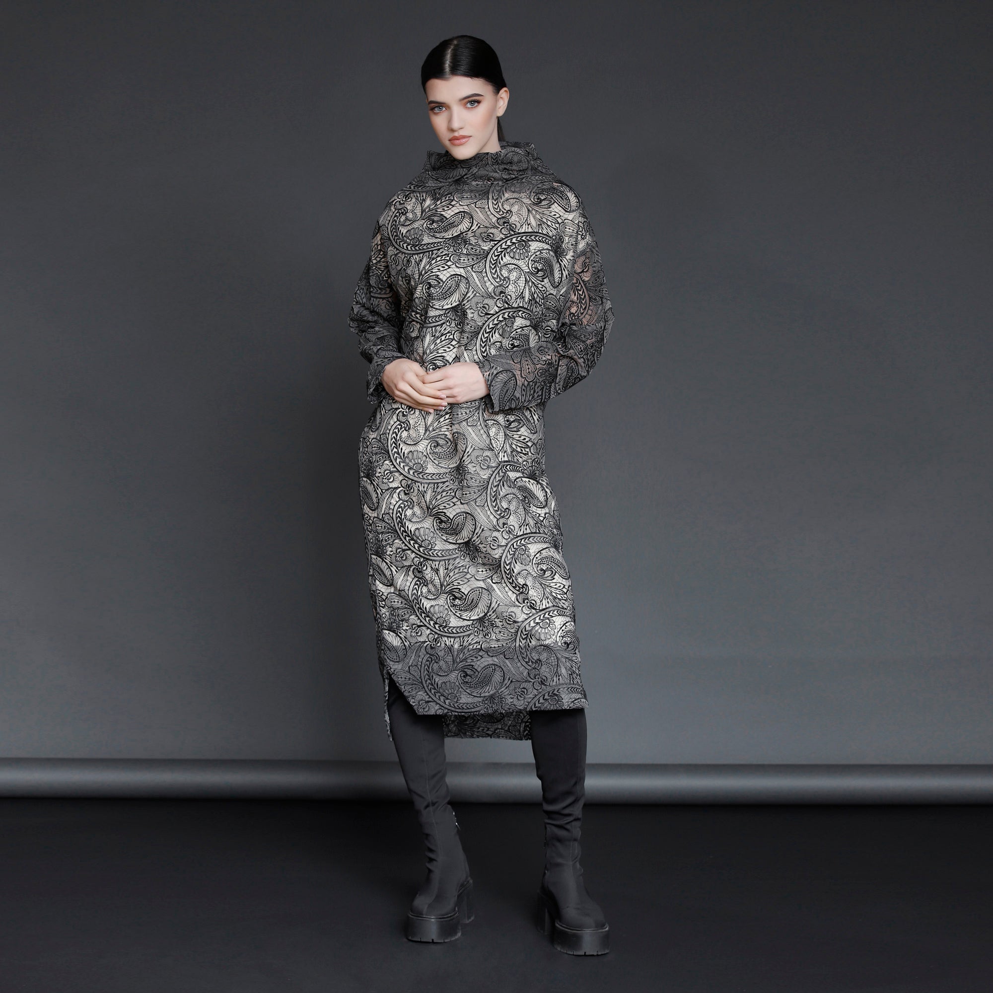 No stock is kept and no fabric is wasted. A highly skilled team ensures exceptional quality and fit. Designs from Iconic pieces or previous collections can be made to order with custom fabric options from the current selection.