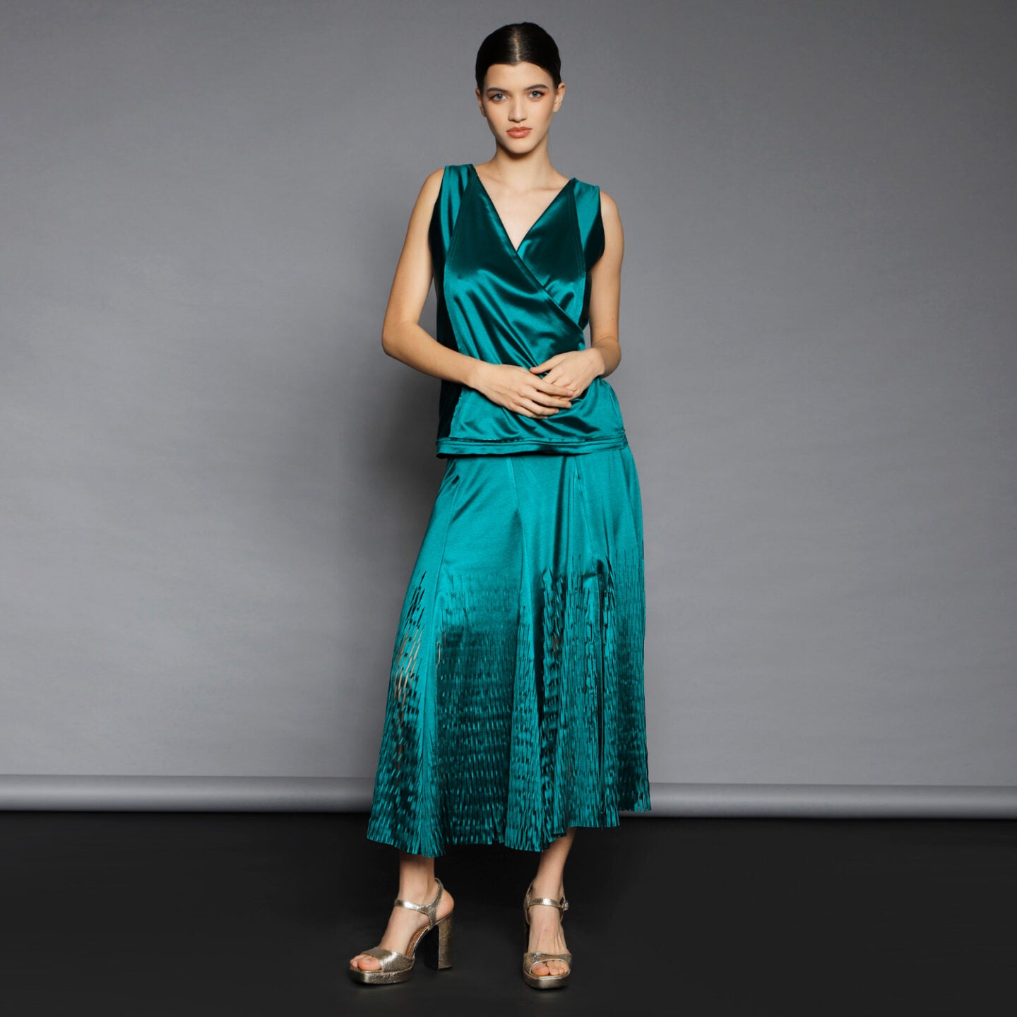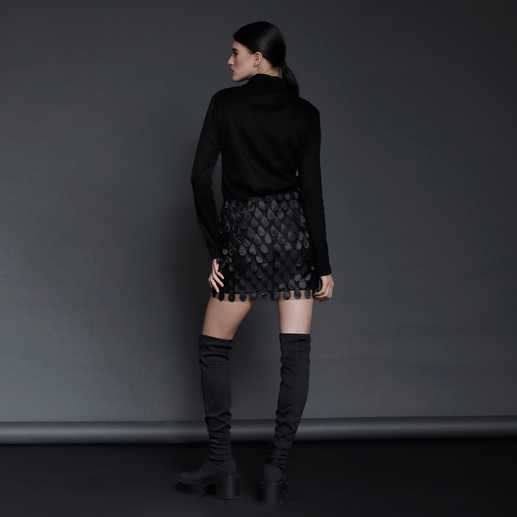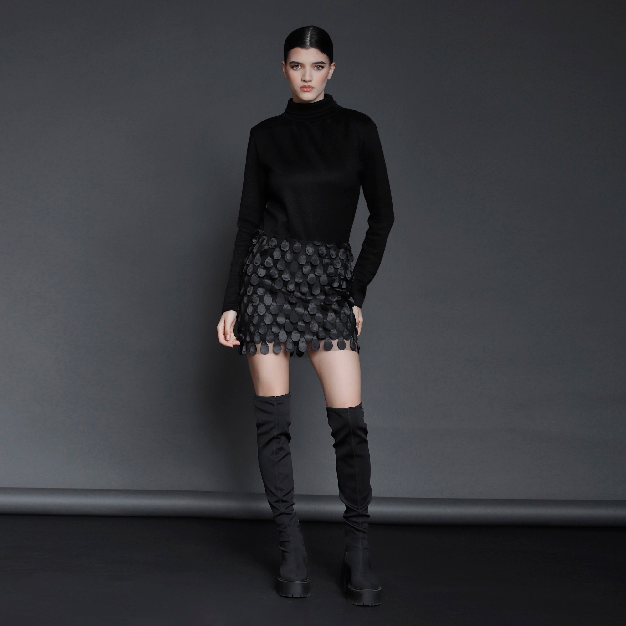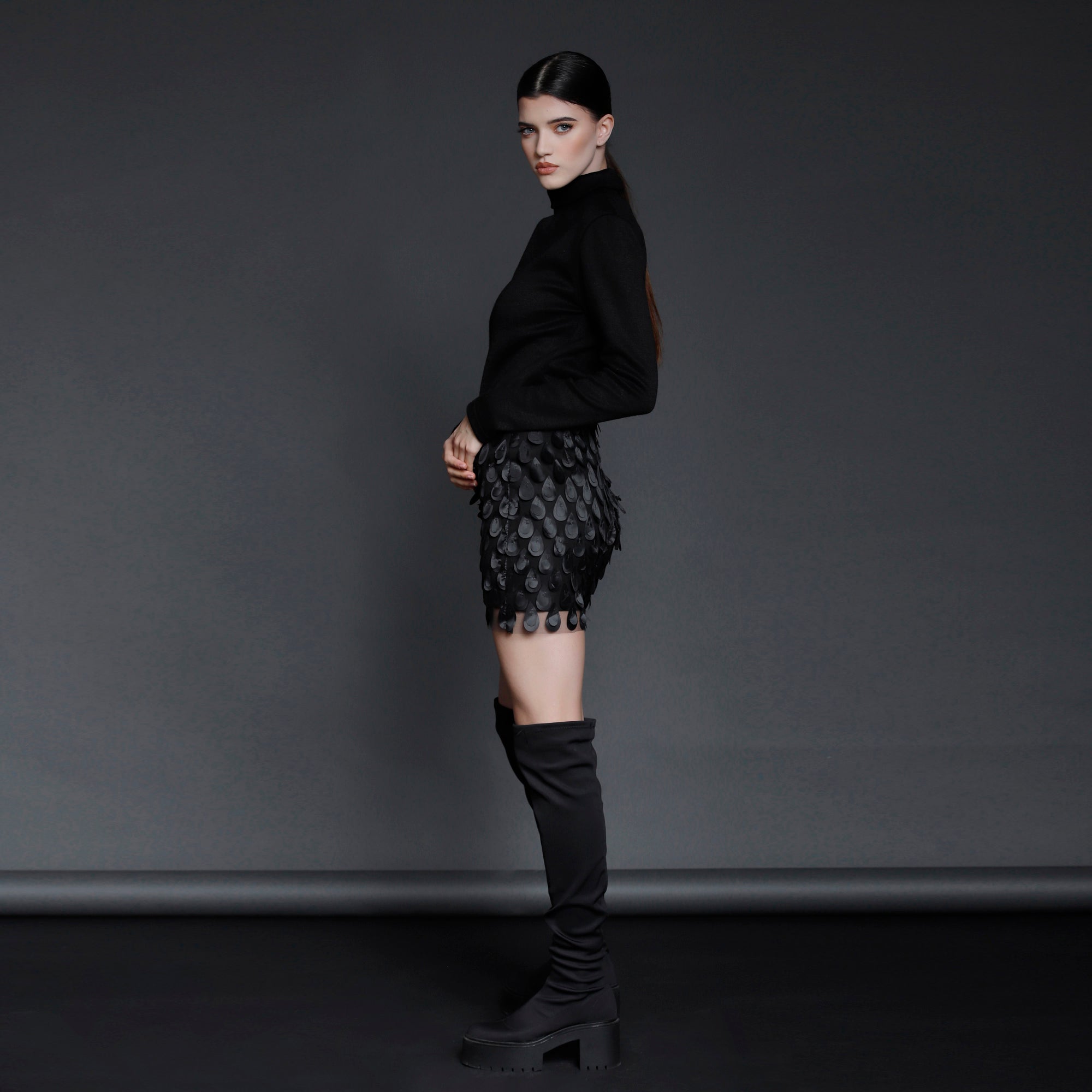 No stock is kept and no fabric is wasted. A highly skilled team ensures exceptional quality and fit. Designs from Iconic pieces or previous collections can be made to order with custom fabric options from the current selection.
