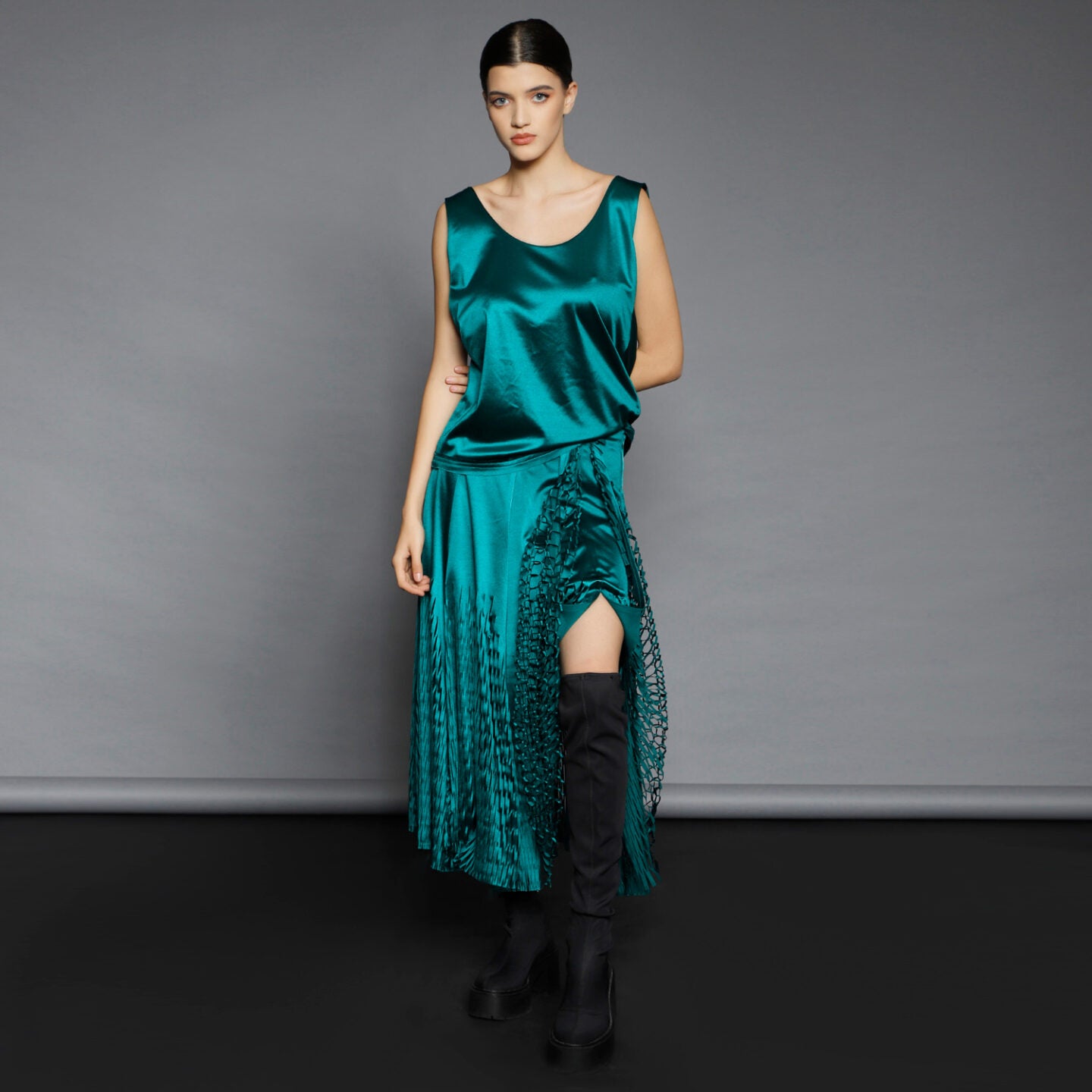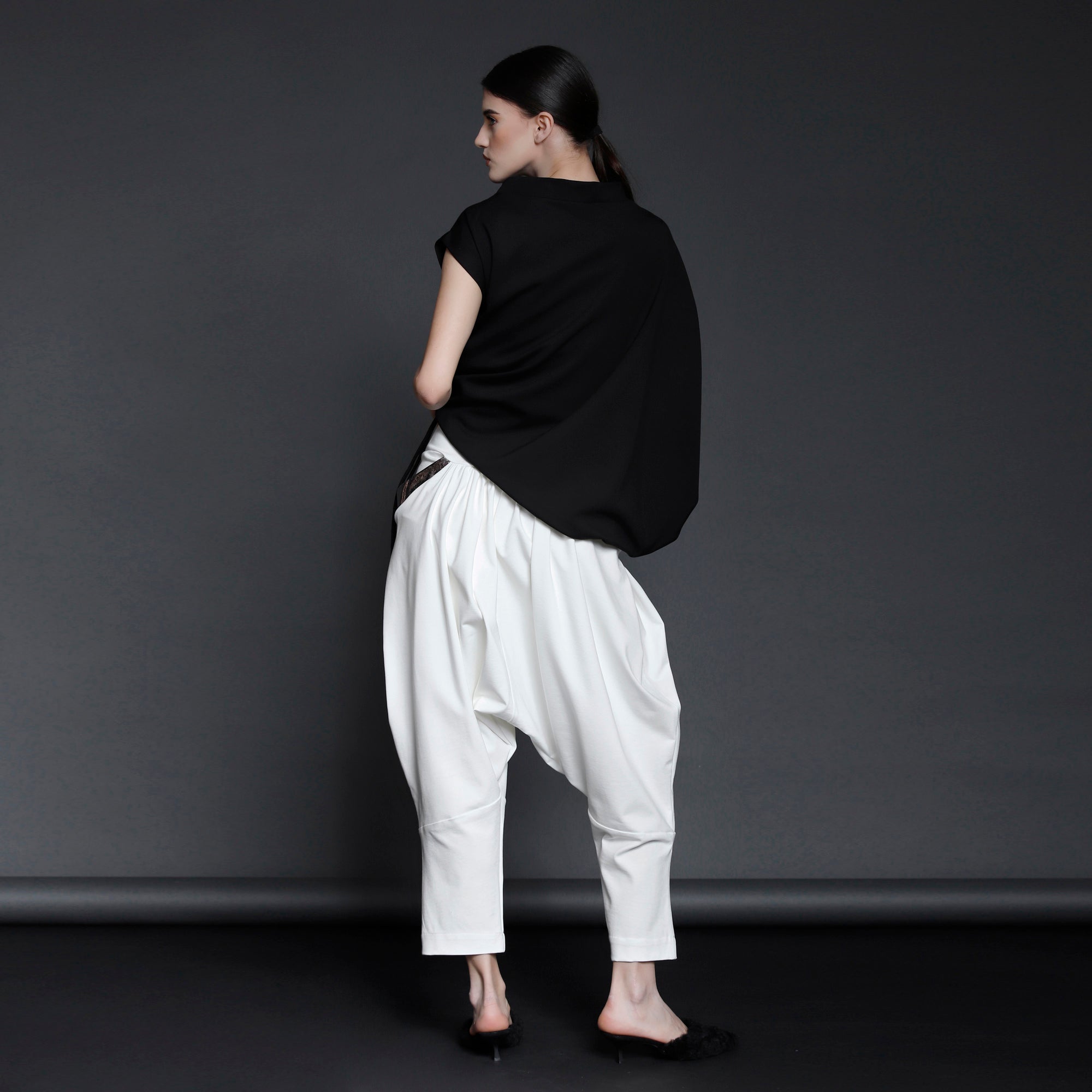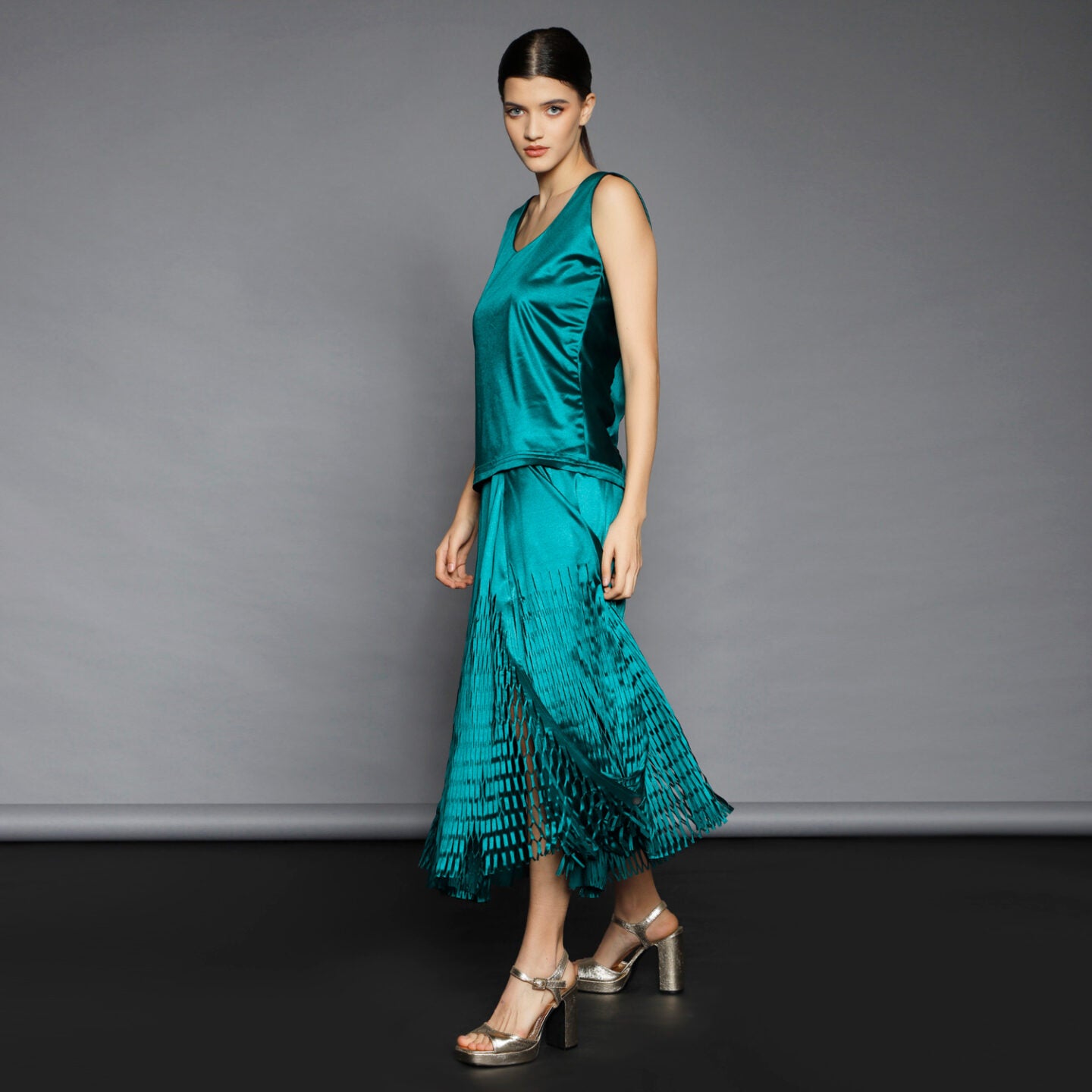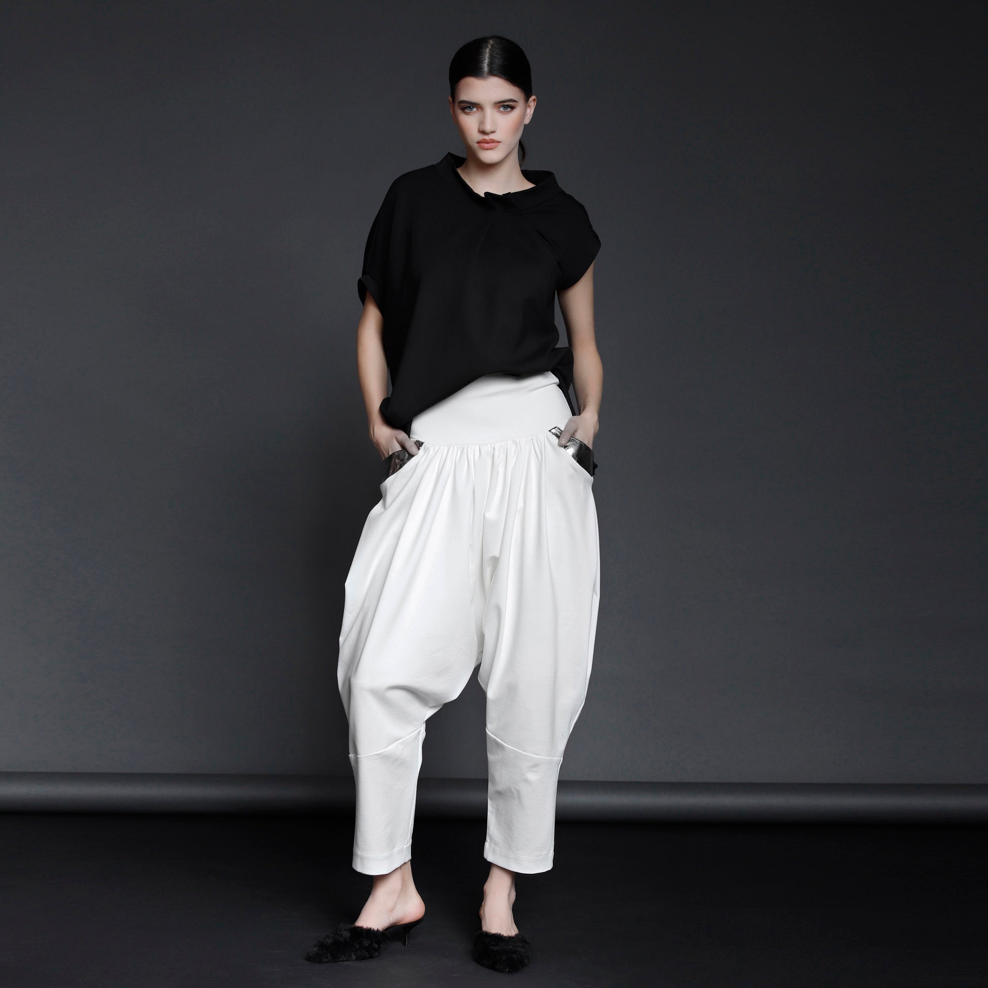 No stock is kept and no fabric is wasted. A highly skilled team ensures exceptional quality and fit. Designs from Iconic pieces or previous collections can be made to order with custom fabric options from the current selection.