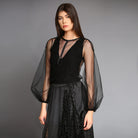 Puffed sleeved textured tulle blouse with applications and padded front.