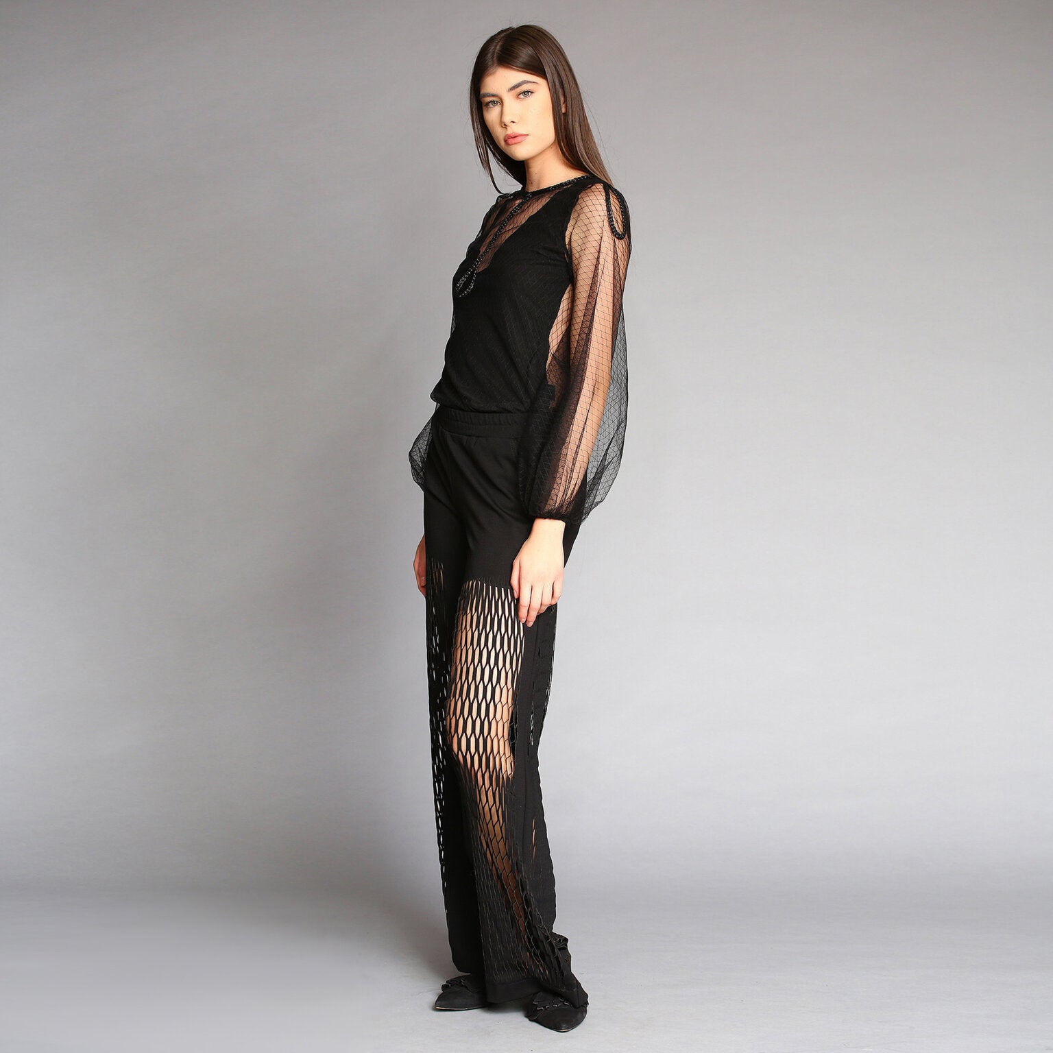 Transparent Blouse With Puffed Sleeves