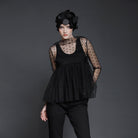 Polka Dot Boat Neck Tulle Blouse with Ruffle
