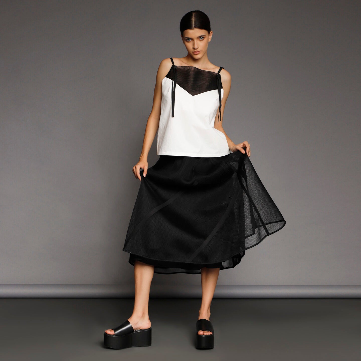 Designer recommendation: Ideal for both casual and semi-formal settings, this top can be paired with a variety of bottoms to create diverse looks for different occasions. With its breathable fabric and customizable straps, this top effortlessly combines comfort and sophistication, making it a versatile choice for any fashion-forward individual.