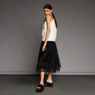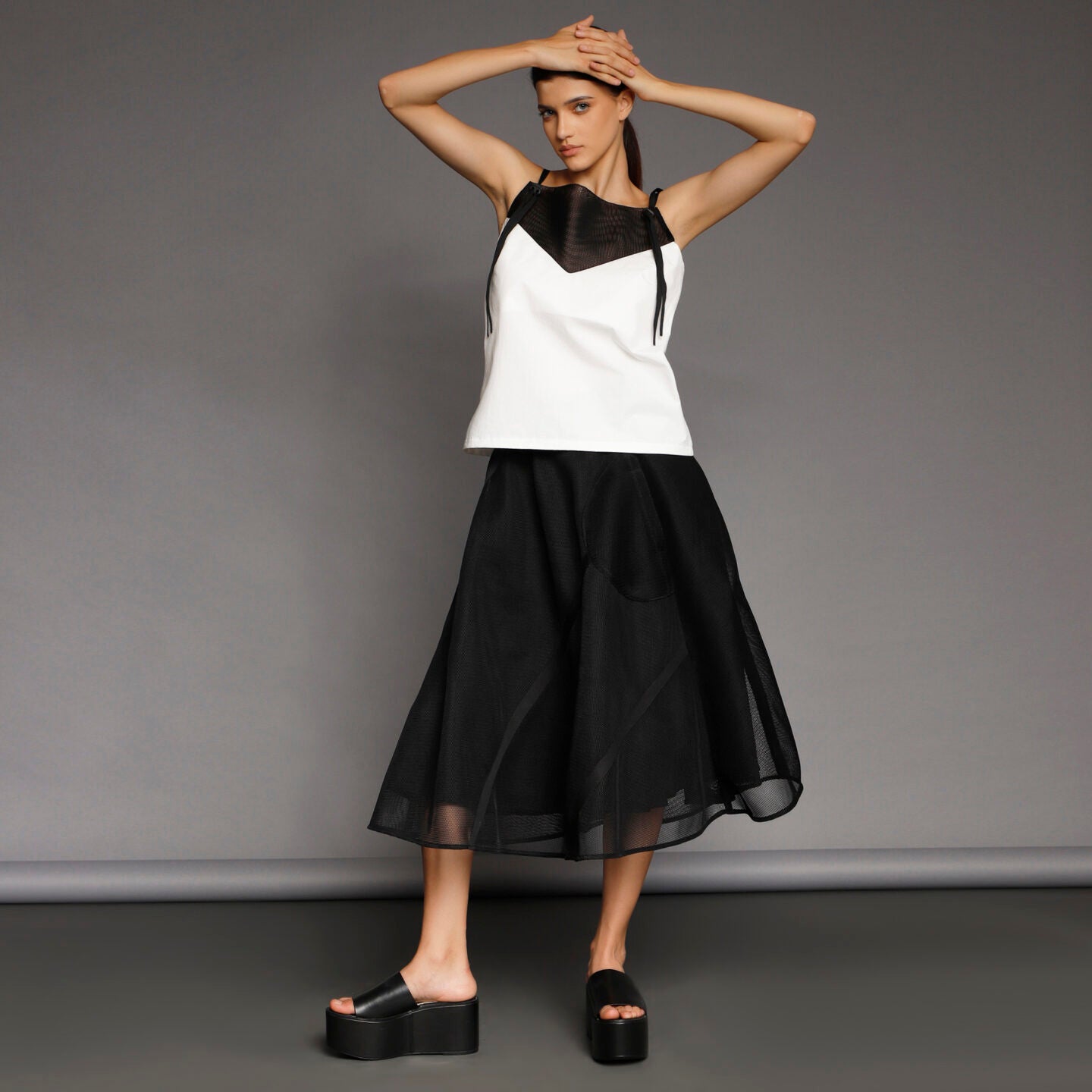 The top combines the comfort of cotton with a touch of sophistication through its unique mesh embellishment. Perfect for various occasions, the adjustable straps add an element of customization to ensure the perfect fit.