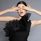 The detachable ruffle top is crafted from exceptionally elastic fabric and enriched with tulle frills. This piece not only elevates any outfit to a showstopper but also is incredibly versatile. With detachable tulle frills, you can style and wear this top in multiple ways, making it perfect for various occasions.