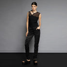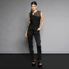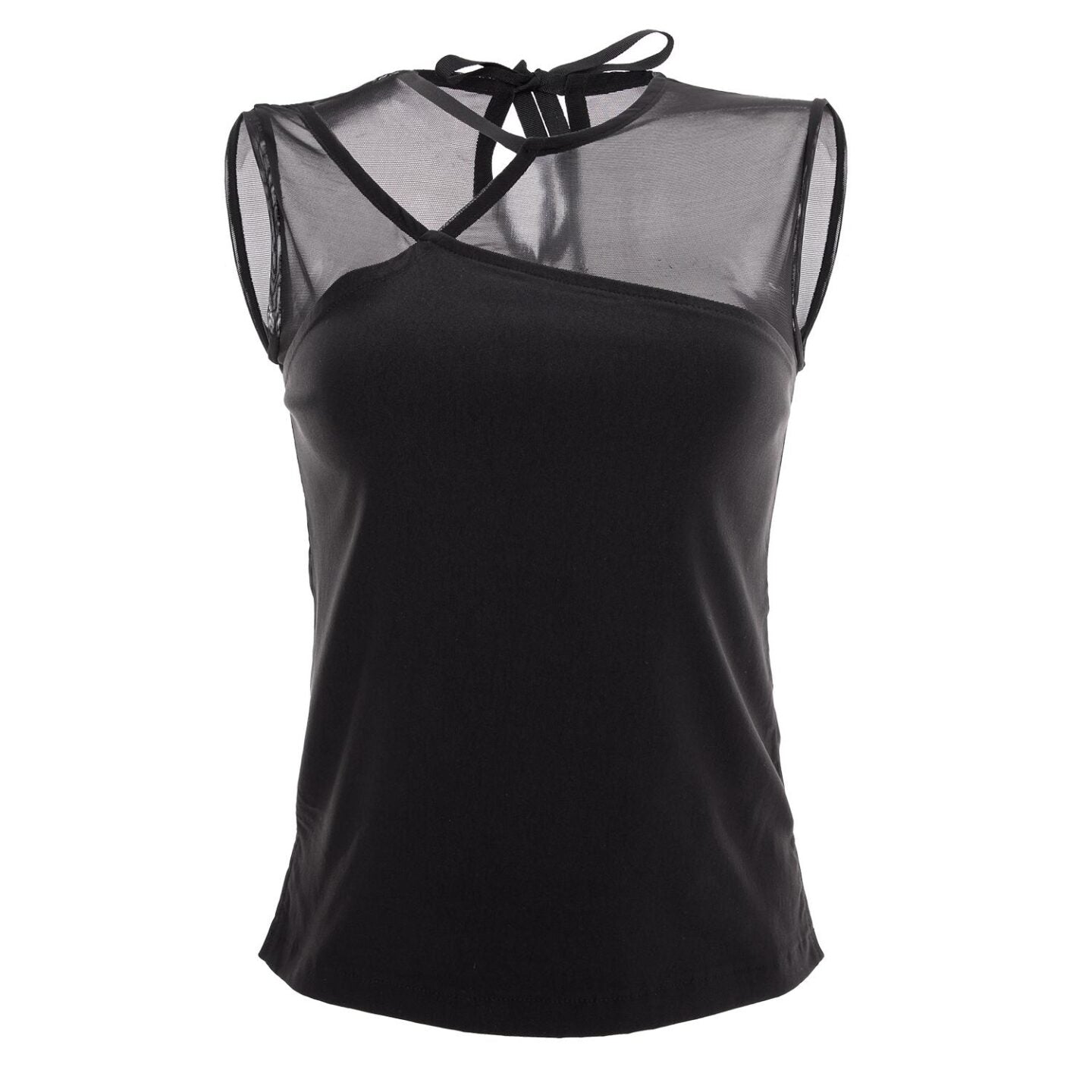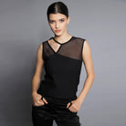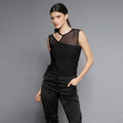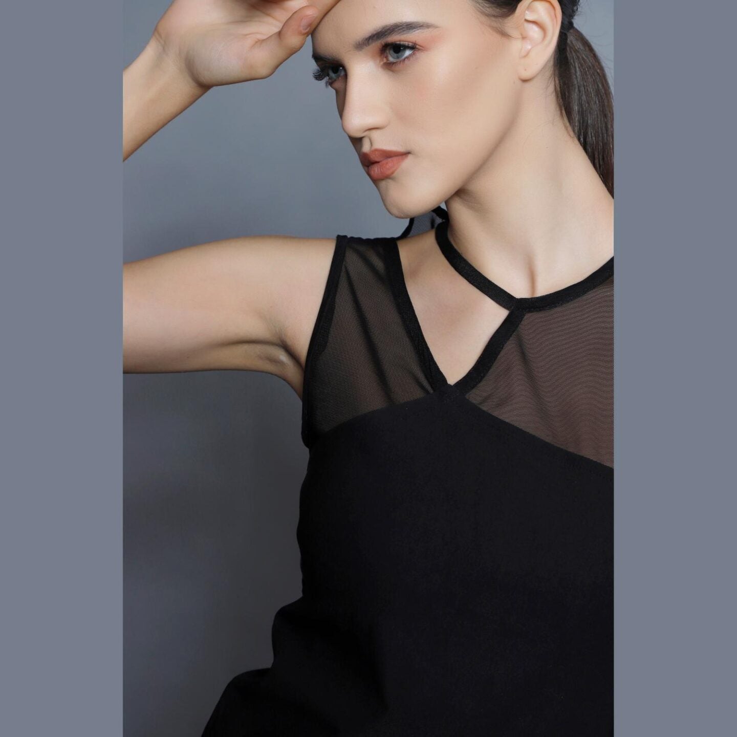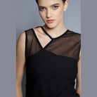 Mesh Cutout Top, crafted from highly elastic material that seamlessly merges with the neckline, adorned with intricately cut delicate mesh.