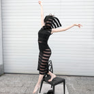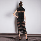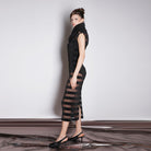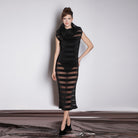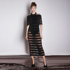 Black Pleated Organza Dress With Modular Collar