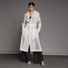 White A-Line Mesh Trench Coat