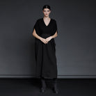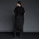 Belted Gathered Black Jersey Dress
