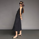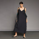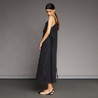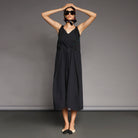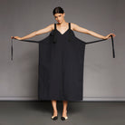 A wardrobe staple that combines comfort with chic design. The dress features adjustable straps with snaps detail sthat allows you to customize the length. The green lining adds a special touch, making it a versatile and stylish choice.