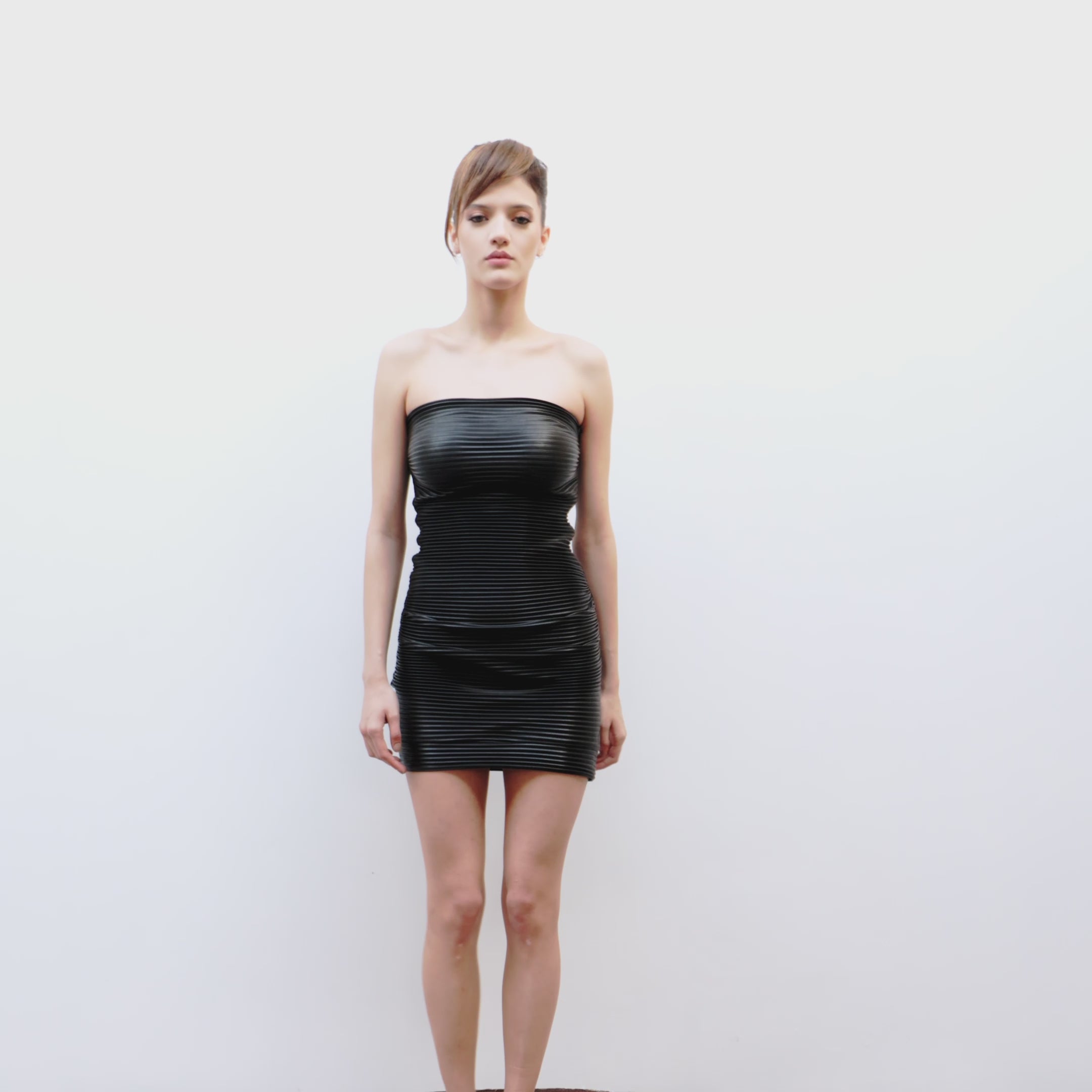 It’s not just sexy. It’s intentional. The sheen isn’t a bonus — it’s the point. This ultra-soft pleated eco-leather hugs the body without holding it back. It moves with you but stays unforgettable. The kind of dress that doesn’t need styling — just presence.
