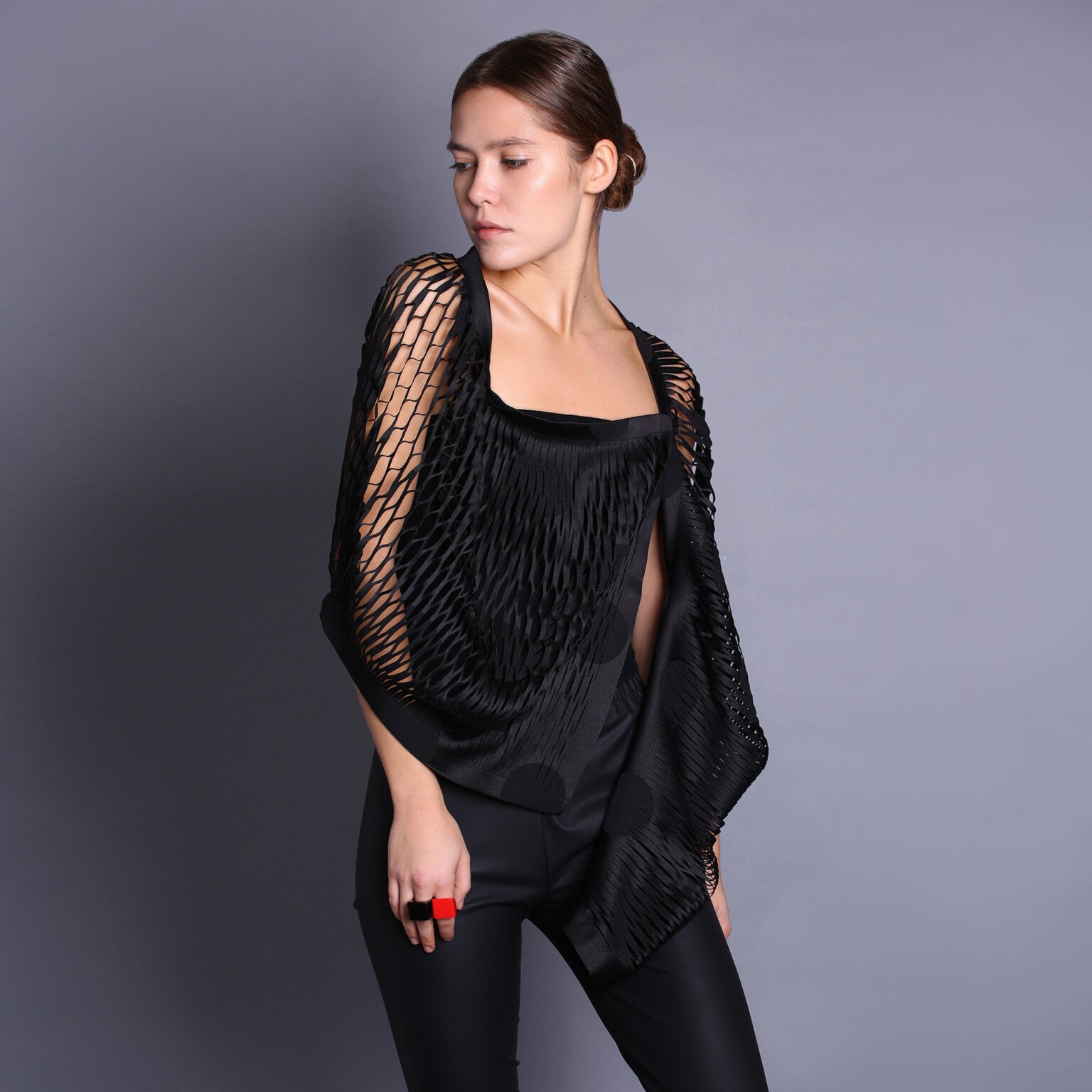 3D Black Taffeta Scarf