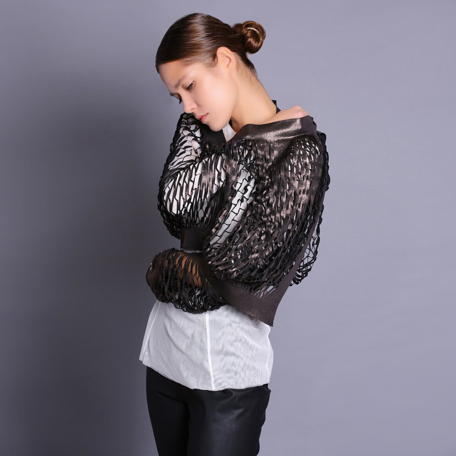 The fabric is alchemized by designer’s passion for technology and craft. Laser cutting is opening us to a unique experience. This precise technique adds dimension to our pieces so you can stand out from the crowd.