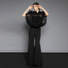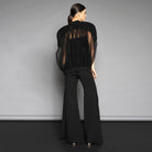 These pants are crafted from a fluid material, offering both comfort and style. Designed with an elastic back waist for ease of wear and a high rise for a flattering fit, these wide-leg pants effortlessly blend comfort and sophistication.