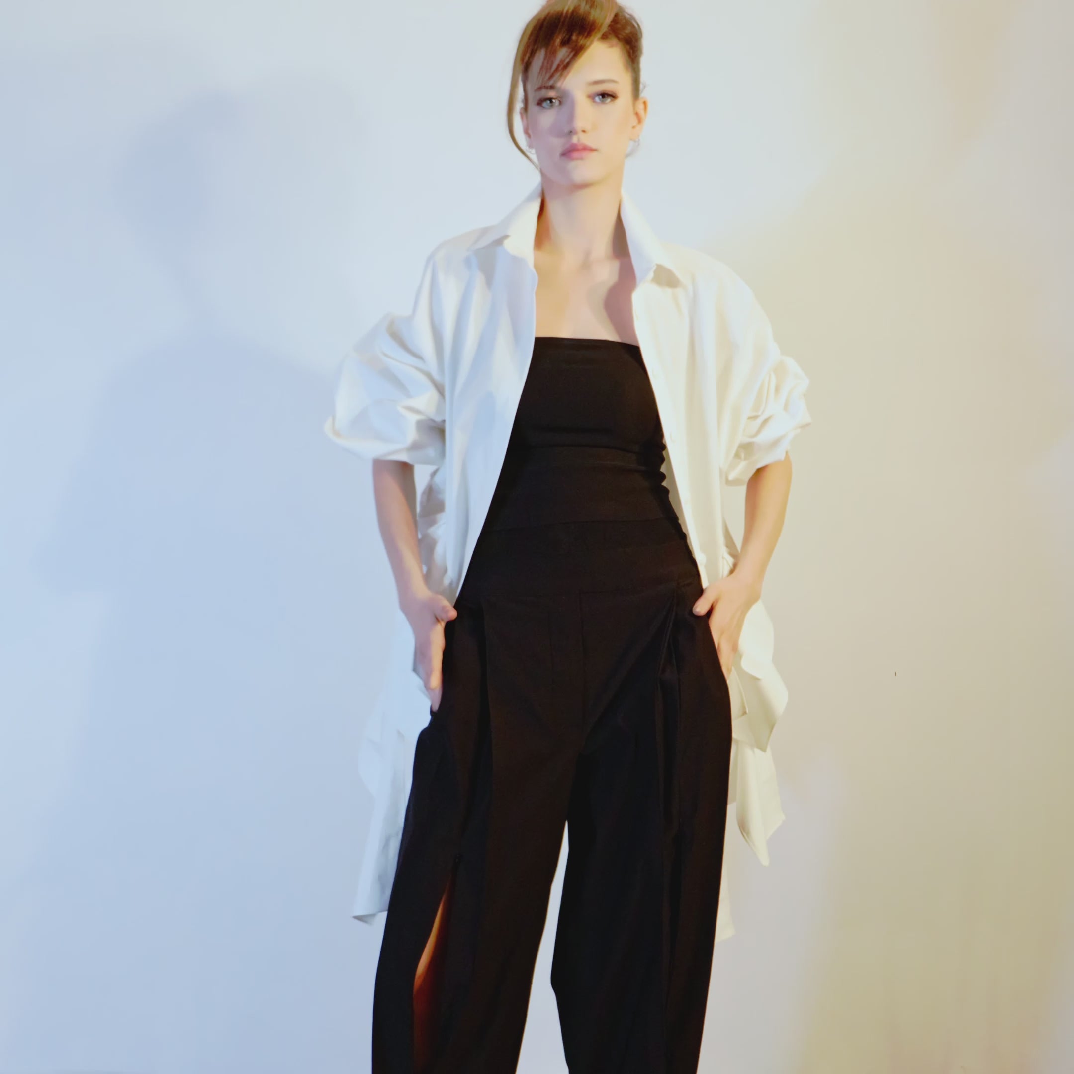 Looks like a shirt, but it isn’t. Seems to have ruffles, but they’re not quite that. What’s certain: it’s lightweight, versatile, and makes an impression without ever trying too hard. The oversized cut means effortless wear, and the appliqués add that “I have better things to do than explain my outfit” attitude. Everyone who’s tried it on? Instant obsession. It’s not a stage piece, but it steals the spotlight anyway.