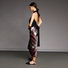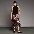 A classic A-line silhouette elevated to a new level of sophistication. Crafted from satin fabric, this skirt takes on a unique twist with a playful jackpot symbol print, like a big and unexpected win. The simple A-line design draws attention through the bold print, while the elastic waistband ensures both style and comfort.