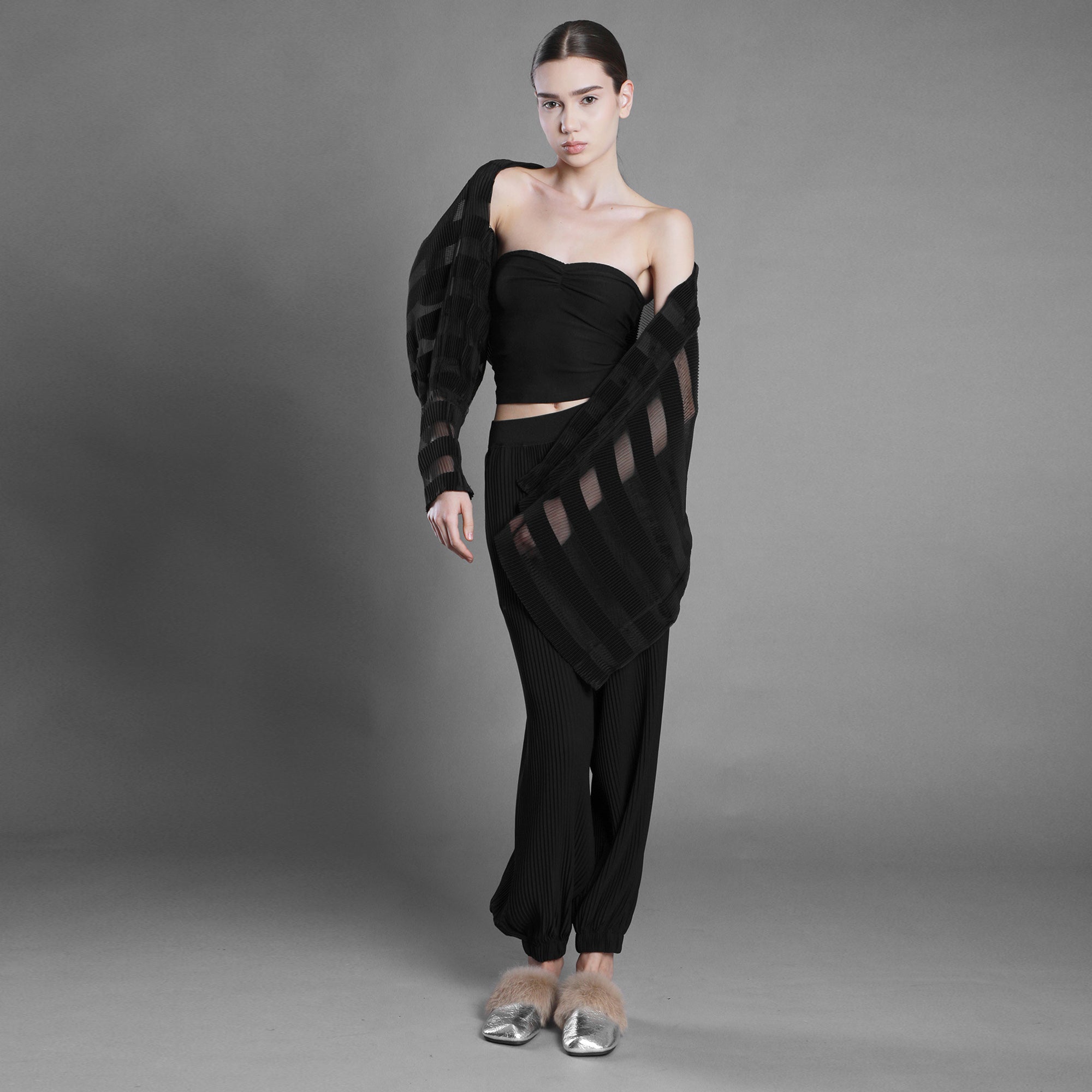 Sofia is 179 cm tall, with a 60 cm waist and 90 cm bust, and here is wearing size 38/S.