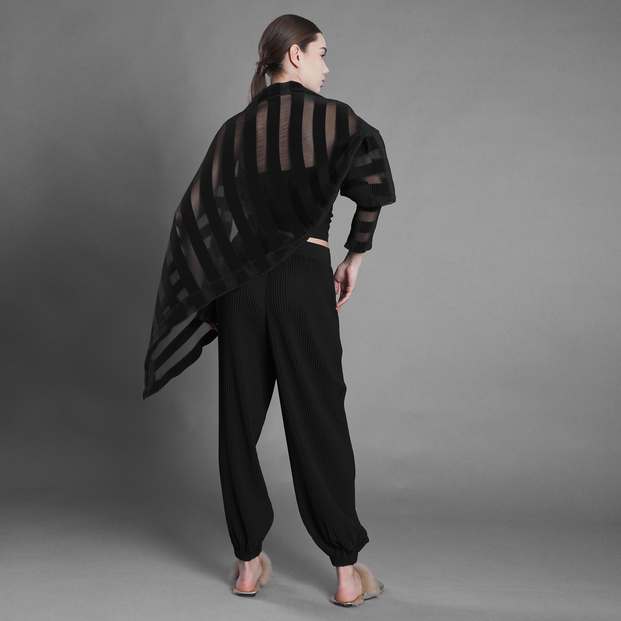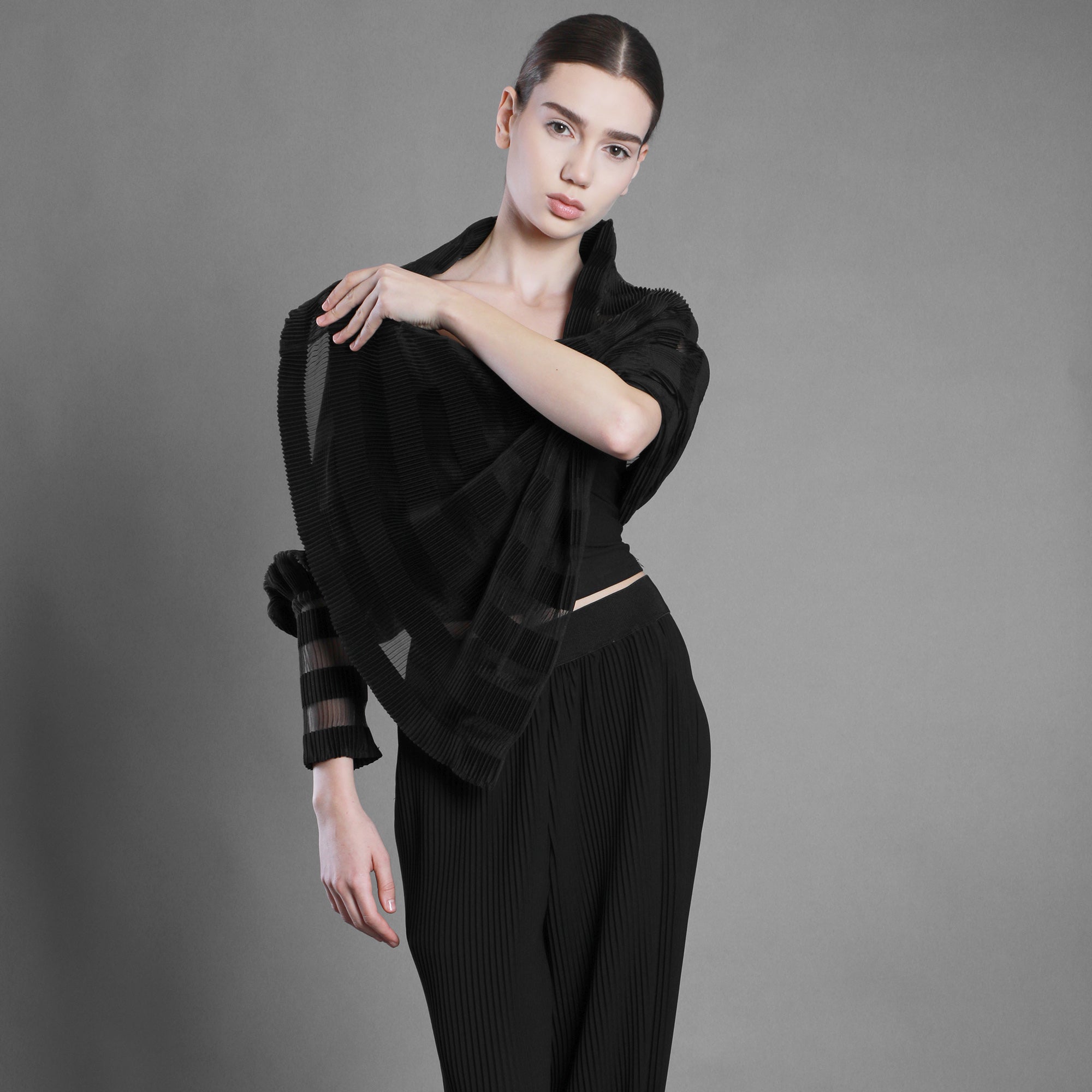 Available in one size, with the option of tailor-made customization. The model shown fits sizes 36/S to 42/L.
