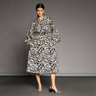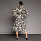 A timeless piece that has become a staple in the designer’s collections over the past few years. This iteration takes on a more casual look with the use of black and white material. The detachable sleeves add versatility, making it suitable for various occasions and temperatures.