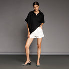 Black Cotton Oversized Short-Sleeve Shirt