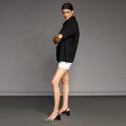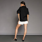 A versatile piece that effortlessly enhances any summer outfit. Crafted from soft black cotton, this oversized shirt combines comfort with classic style, making it a wardrobe essential for the warmer seasons. The oversized design adds a contemporary twist, making it suitable for various occasions.