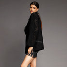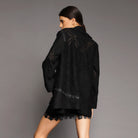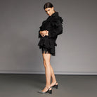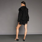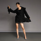 Black Lace Blazer with Detachable Ruffles
