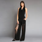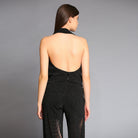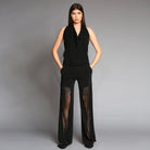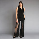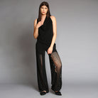 Laser cut black glitter pants. The zig-zag laser cut shows originality without showing of.