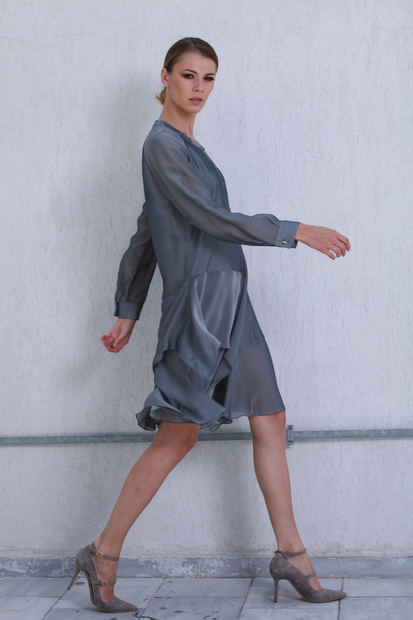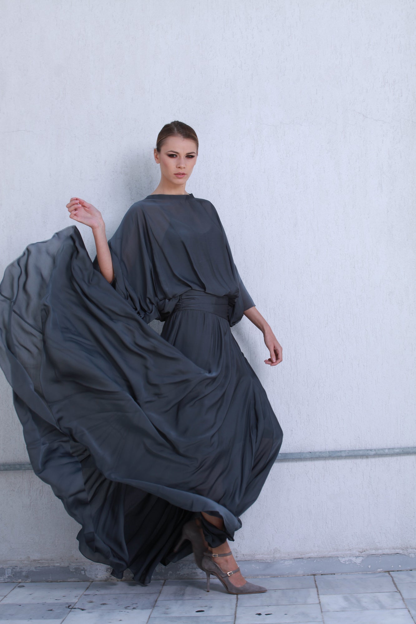 Embarking on a journey into the realm of spring/summer fashion, this collection places a profound emphasis on the freedom of movement. Fluid materials take center stage, seamlessly transitioning between mini and maxi lengths. The color palette dances between the classic elegance of black and white, with punctuations of violet and grey adding subtle accents.