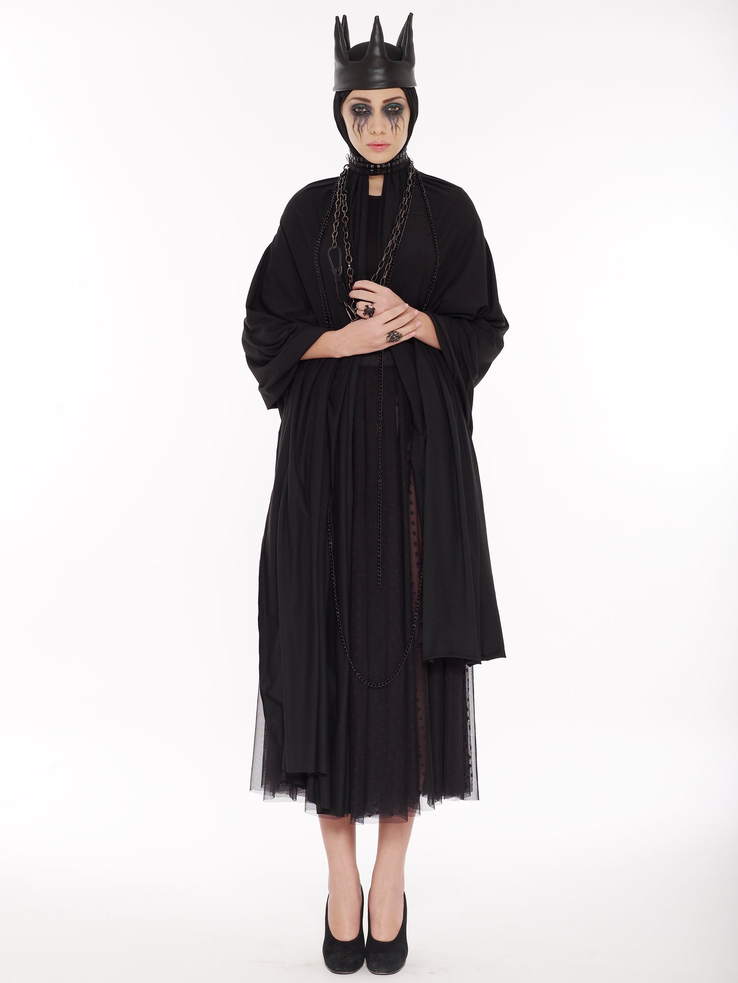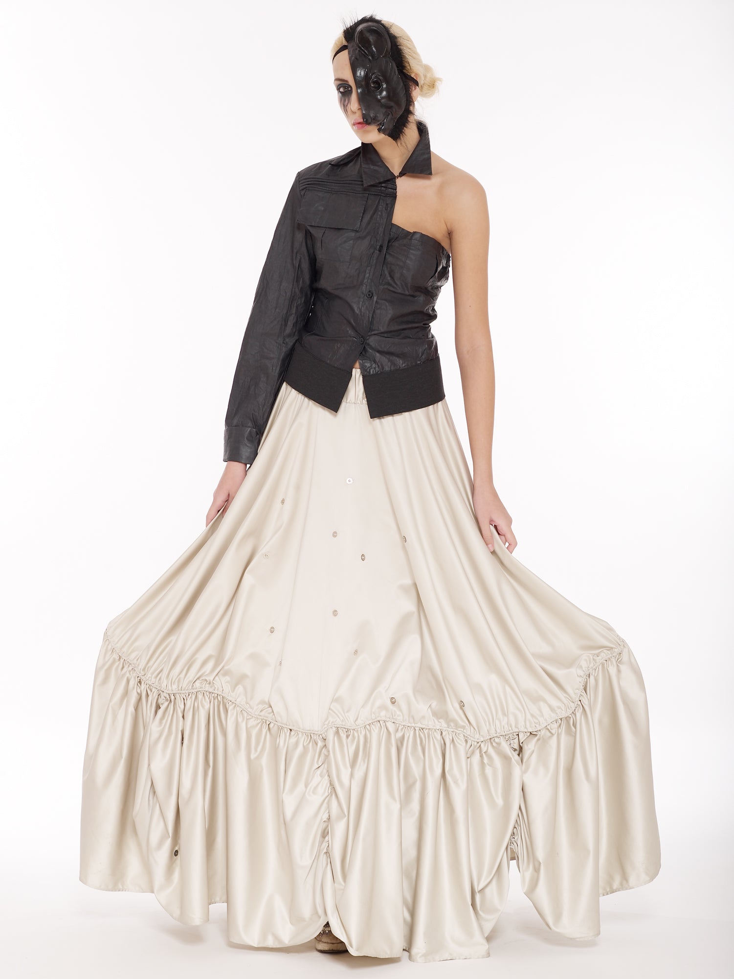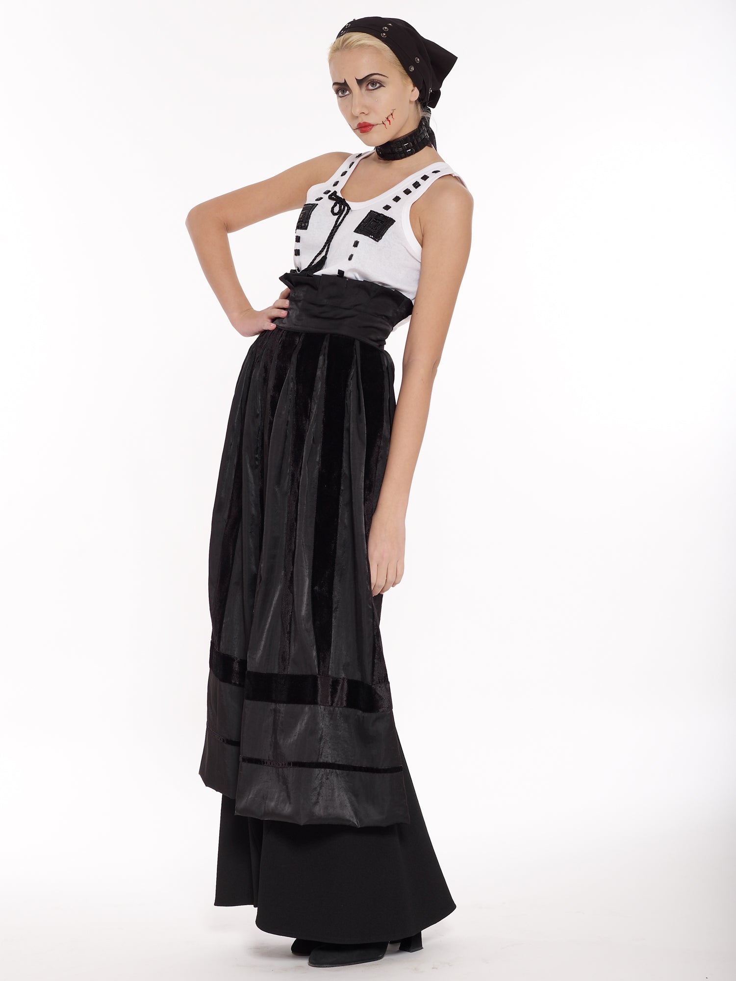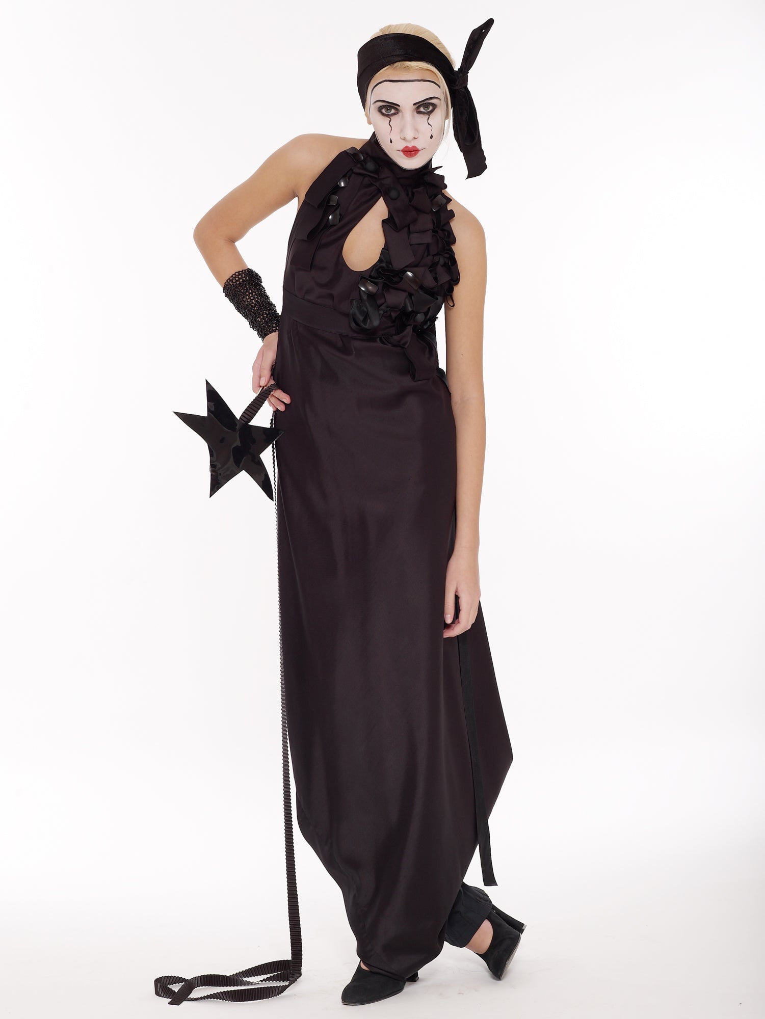 Embarking on a creative journey, I crafted a capsule collection inspired by the enchantment of Halloween parties – Ghostly Fashionistas. The pièces de résistance of this collection? Wigs made from Barbie doll heads, a playful irony that delves into the notion that from a young age, we are drawn to Halloween festivities, with costume preoccupations lingering as a perennial fascination, and the dress, composed of layered slips that adds a unique dimension through its juxtaposition of textures.