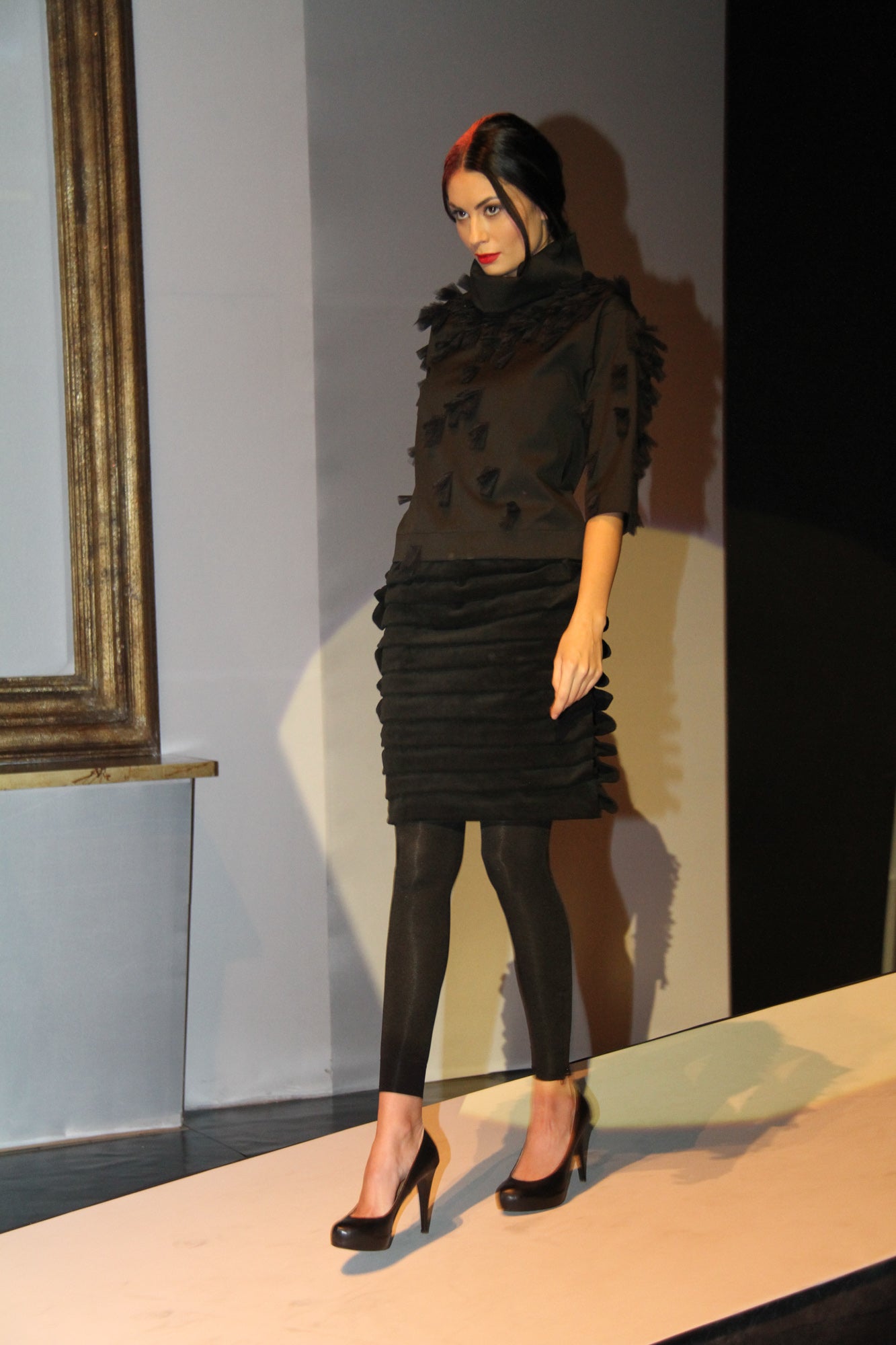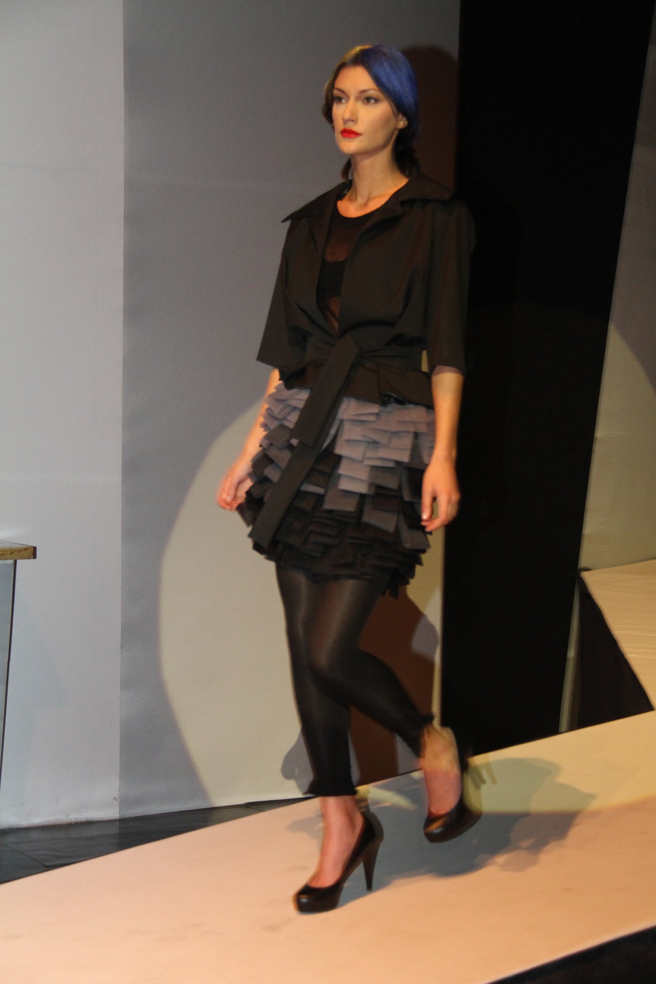 This commissioned collection, created for a brand's product launch, meticulously adheres to a black, blue, and red color palette, not just meeting the brief but elevating it with nuanced innovation. Key ensembles stand out as bold, expressive statements, strategically enhancing the brand's presence. Quality materials, skillfully alternating between transparency and opacity, add a dynamic interplay of light and shadow, enriching the collection's aesthetic appeal. Ultimately, this collection embodies a perfect blend of creative vision and brand alignment, showcasing refined craftsmanship and captivating sophistication.