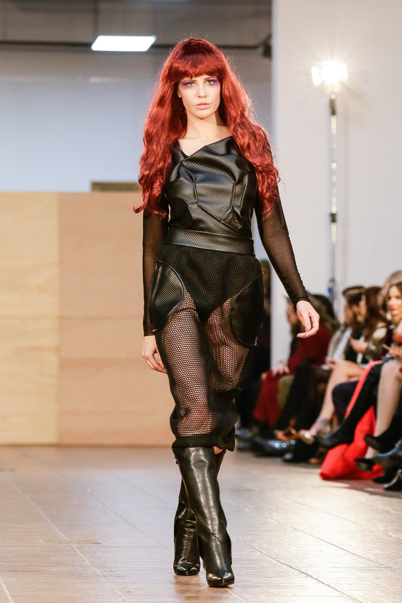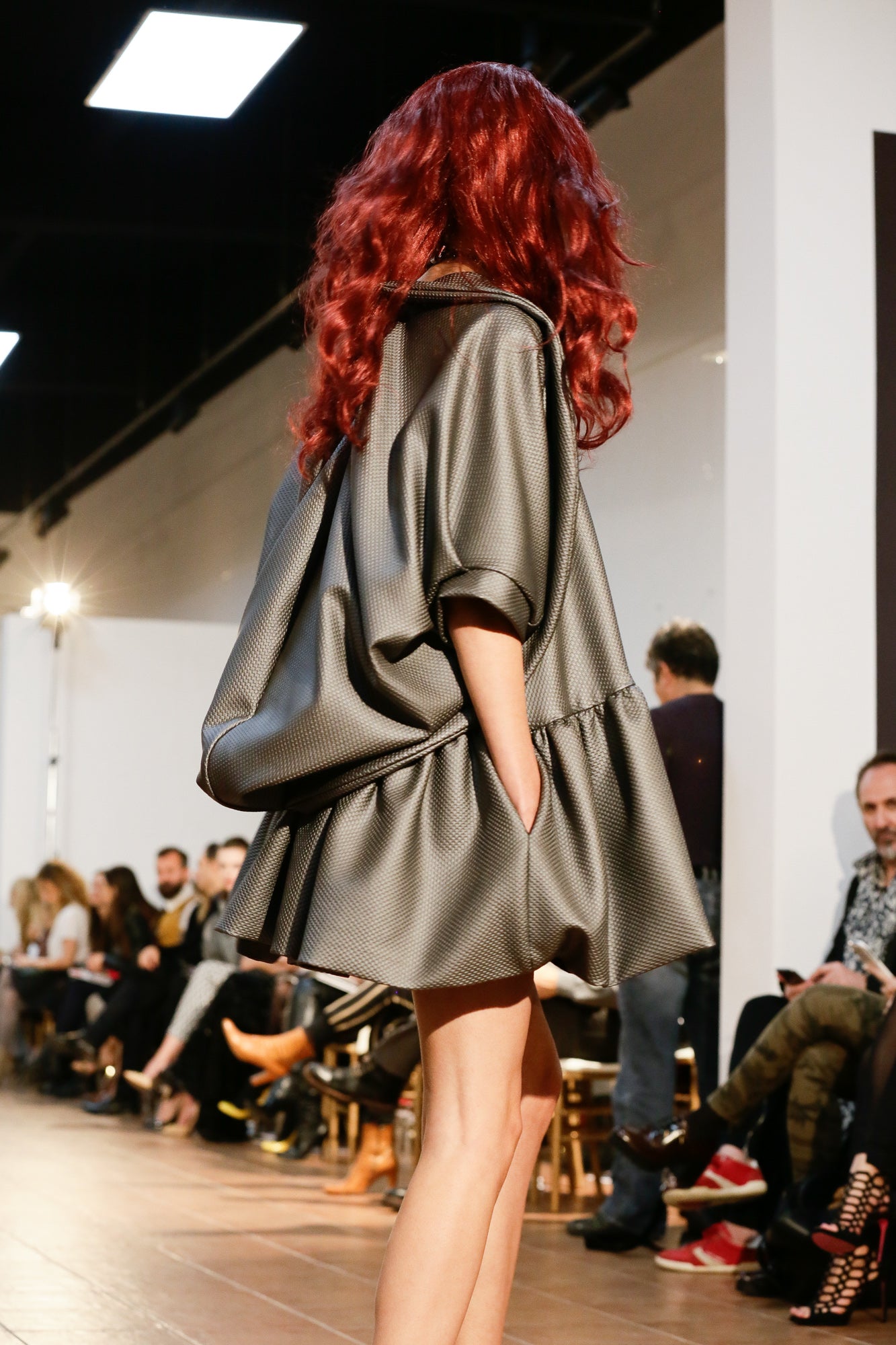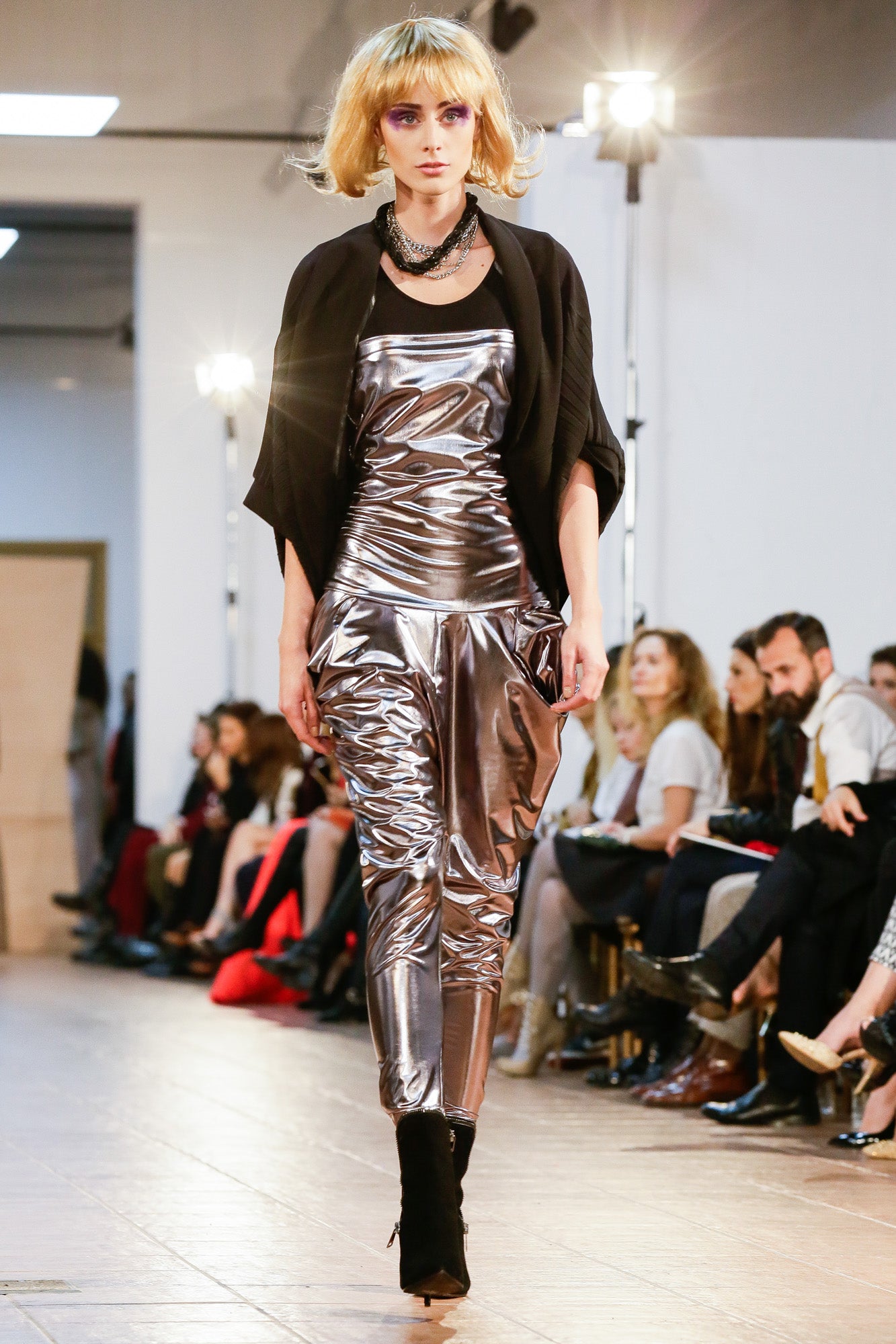 This collection serves as a powerful expression of the belief that without change, indifference leads to tragic events. Aptly named "Obligatory Change," the collection unfolds on the runway, and at the show's climax, models shed their wigs, revealing white headbands adorned with this powerful inscription. The materials used are as luminescent as flames, coupled with the sleek touch of synthetic leather. Each piece is a testament to the transformative power of change, urging us to break free from the ordinary and embrace the change.