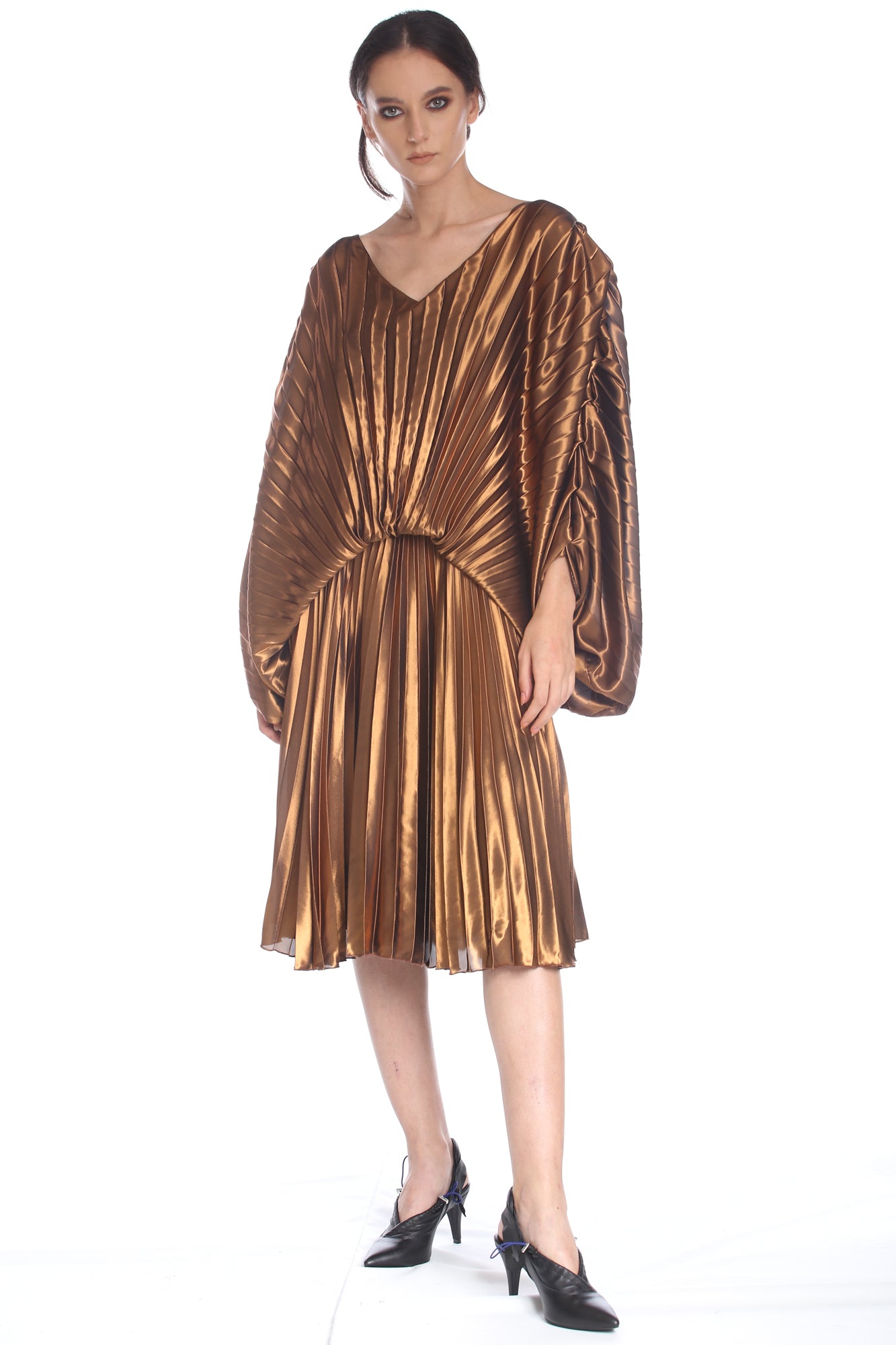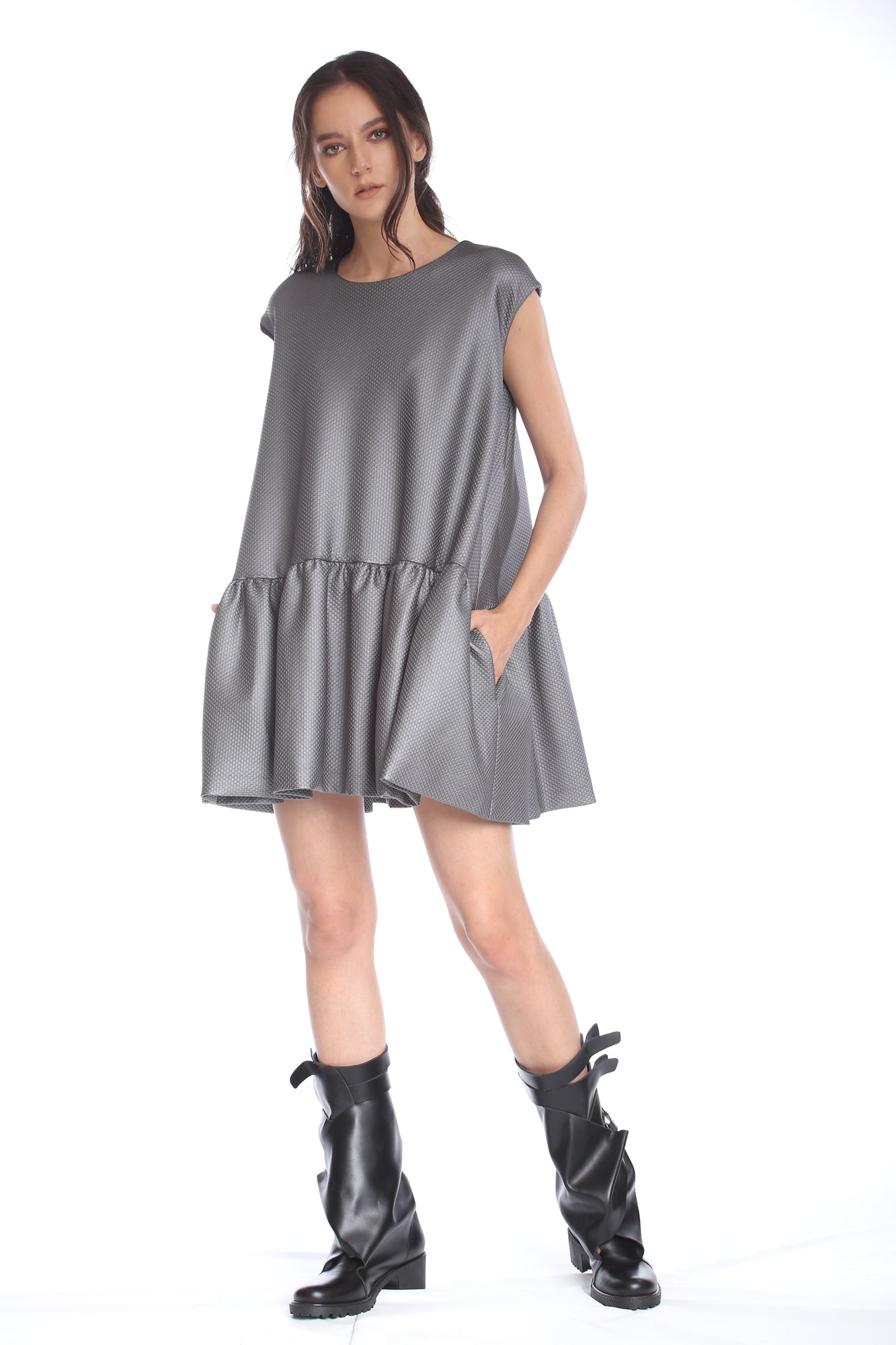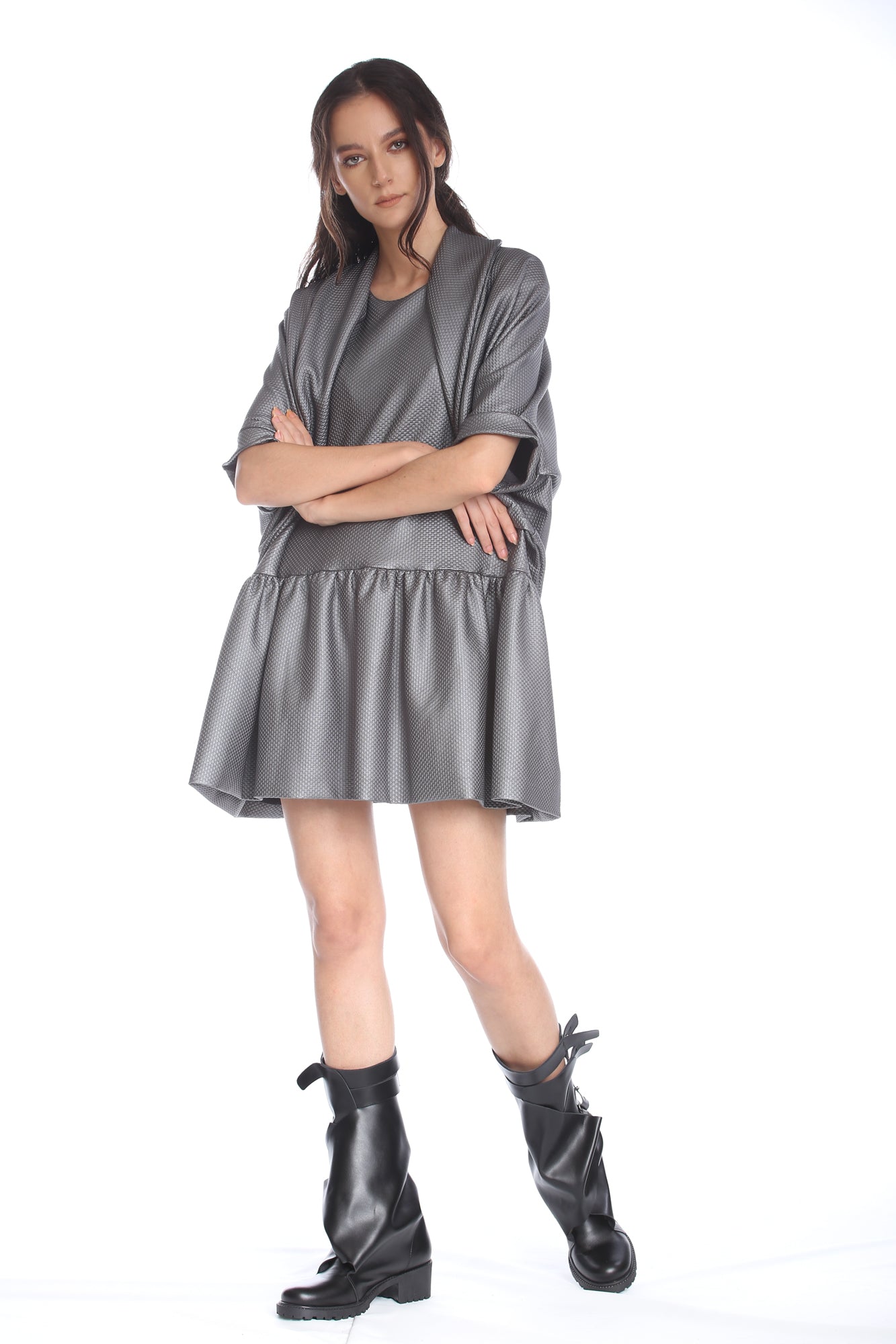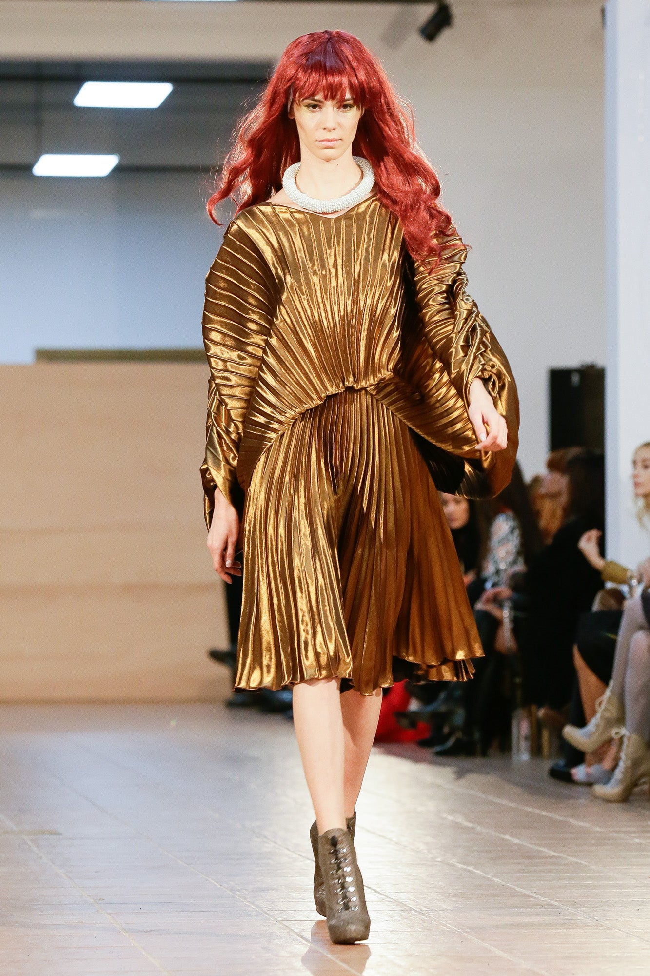 This collection serves as a powerful expression of the belief that without change, indifference leads to tragic events. Aptly named "Obligatory Change," the collection unfolds on the runway, and at the show's climax, models shed their wigs, revealing white headbands adorned with this powerful inscription. The materials used are as luminescent as flames, coupled with the sleek touch of synthetic leather. Each piece is a testament to the transformative power of change, urging us to break free from the ordinary and embrace the change.