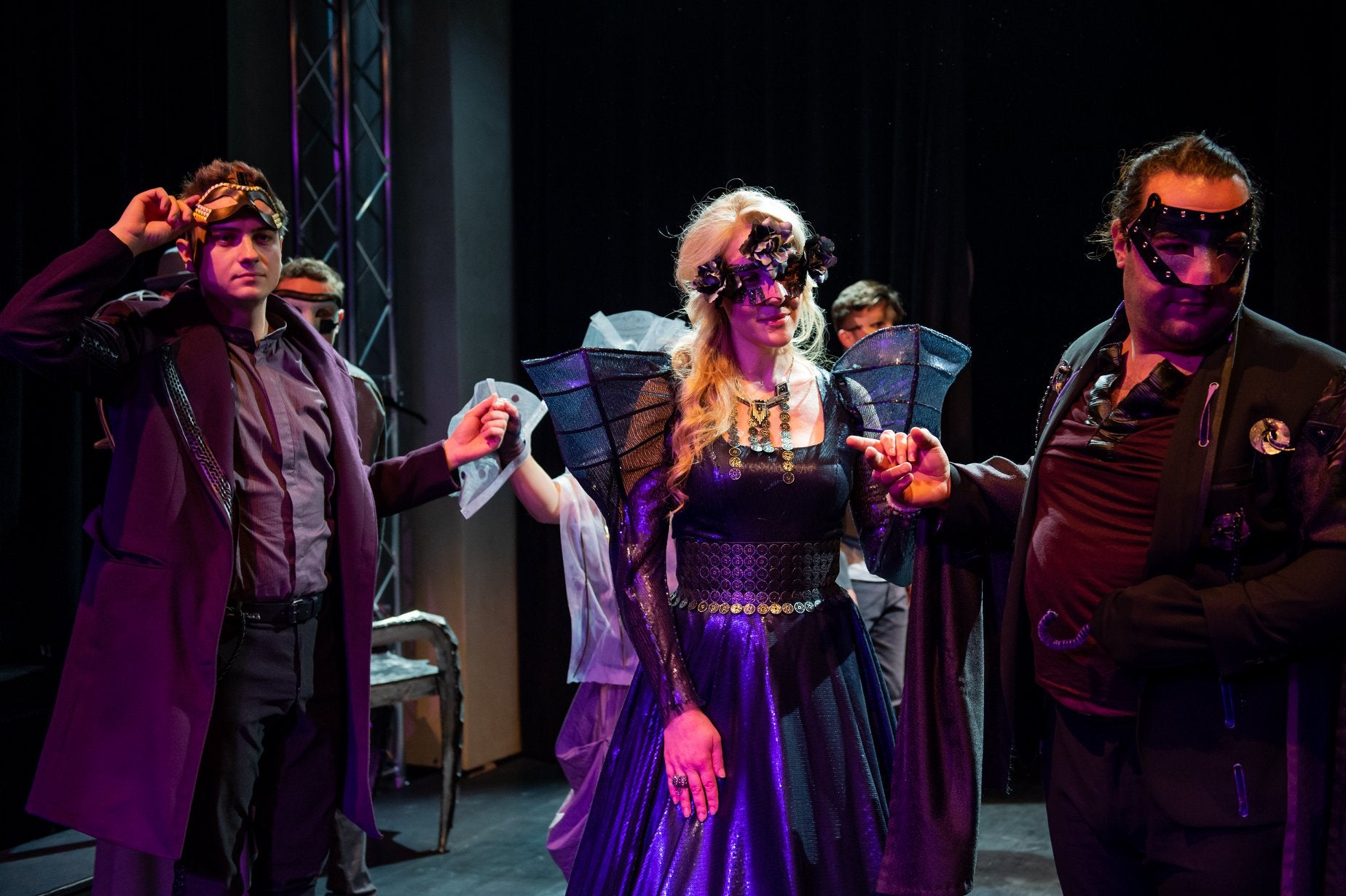 A second collaboration with director Liliana Pana resulted in a highly acclaimed production that resonated on stages across the country. Her directorial vision aimed to transform Shakespeare's classic "Romeo and Juliet" into an accessible and relatable experience for a younger audience. The costumes, blending period attire with contemporary urban wear, reflected this innovative approach. The ballroom scene costumes, adorned with masks and exaggerated ornaments, masterfully balanced the evolution of the costumes throughout the performance, gradually transitioning into everyday elements, eventually reaching the simplicity of a basic t-shirt.
