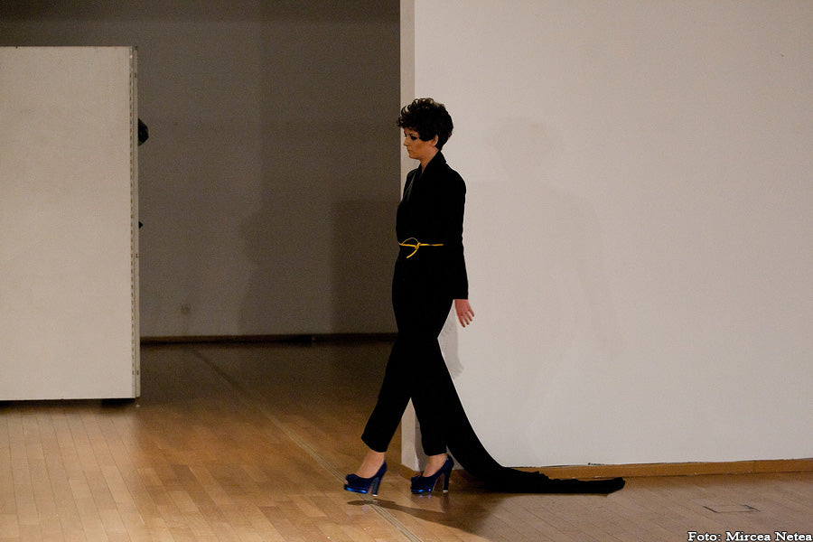 This collection focuses on versatility, with each piece designed to transform for different occasions. Short, flirty dresses become elegant gowns with detachable hems, while tailcoats convert into stylish tops. Pants play with perception, appearing as long tubes cinched with garters, and what seems like a long skirt ensemble morphs into sophisticated office attire with a tailored jacket and pants. Each piece serves as a canvas for transformation, offering multiple styling options for diverse settings.