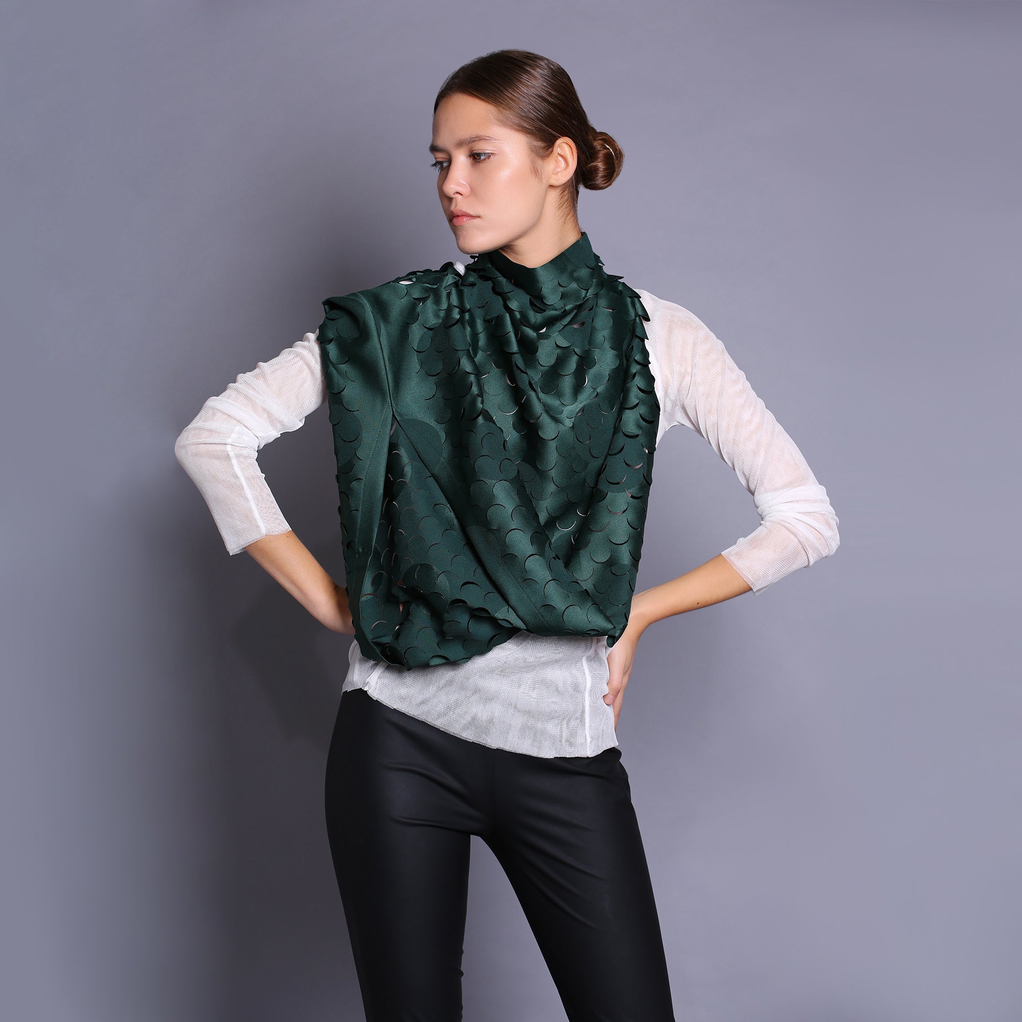 A sustainable way in fashion design is to use materials from existing stock, as well as leftovers from tailoring previous collections. We are guided by the principle of “zero losses”. Because we use materials from stock and scrap, there may be small contrasts in the details, but not in the final look. Wearing this accessory, you choose a sustainable style.