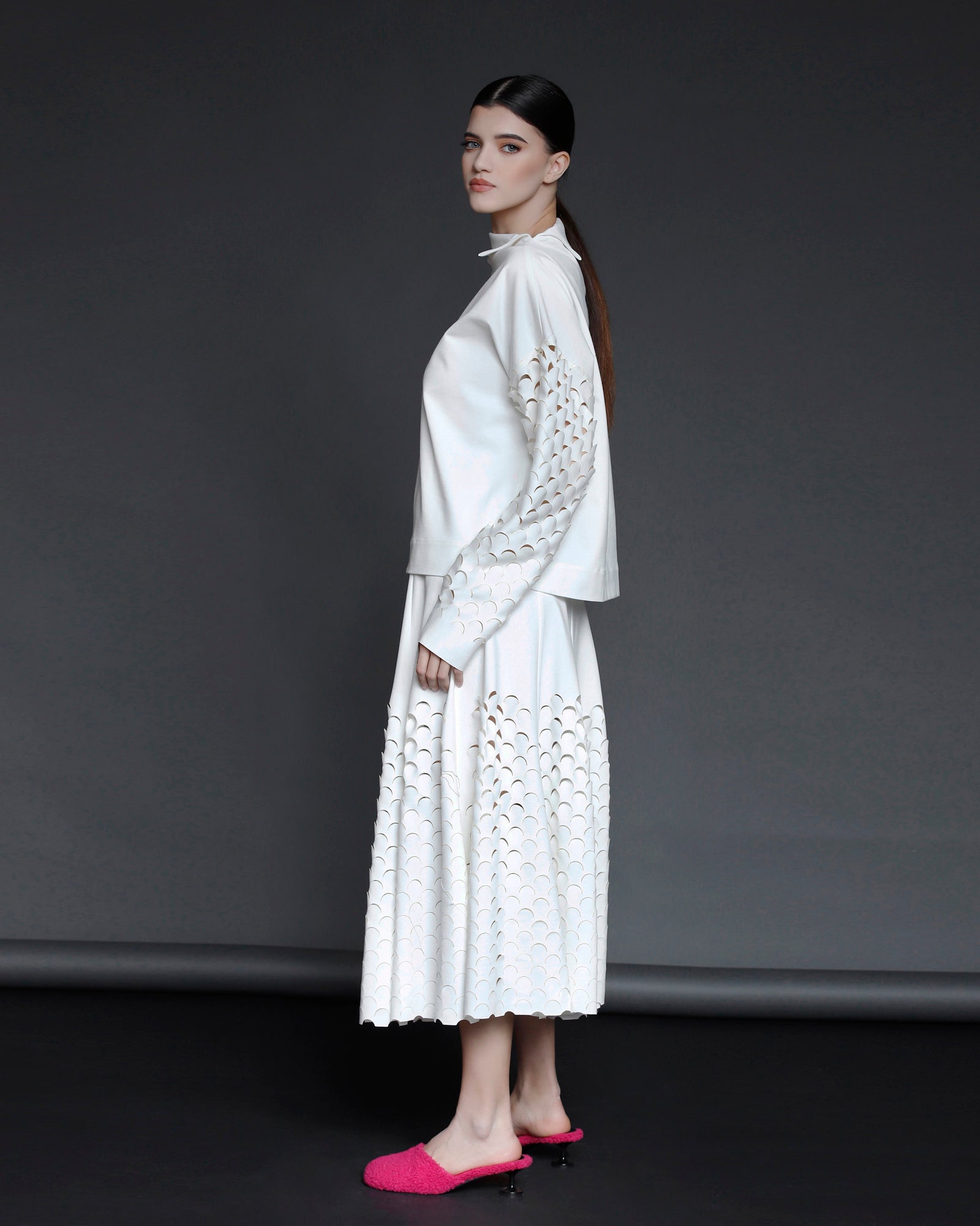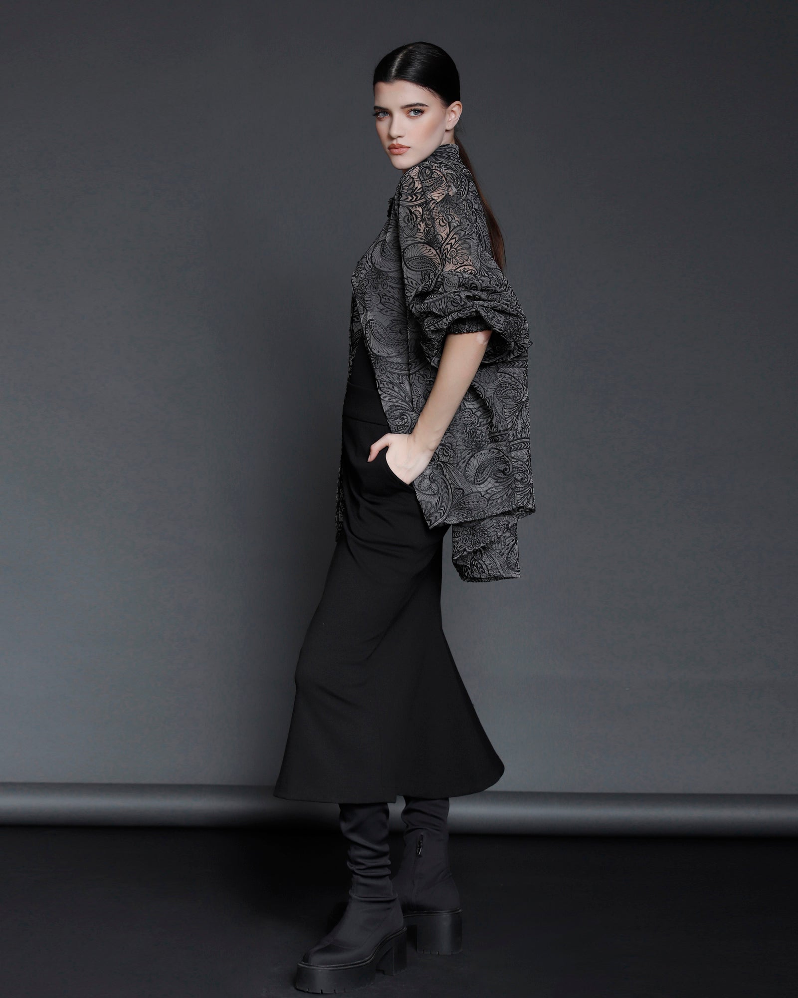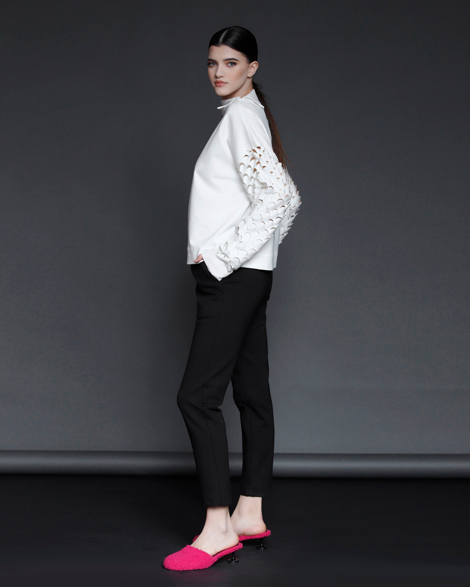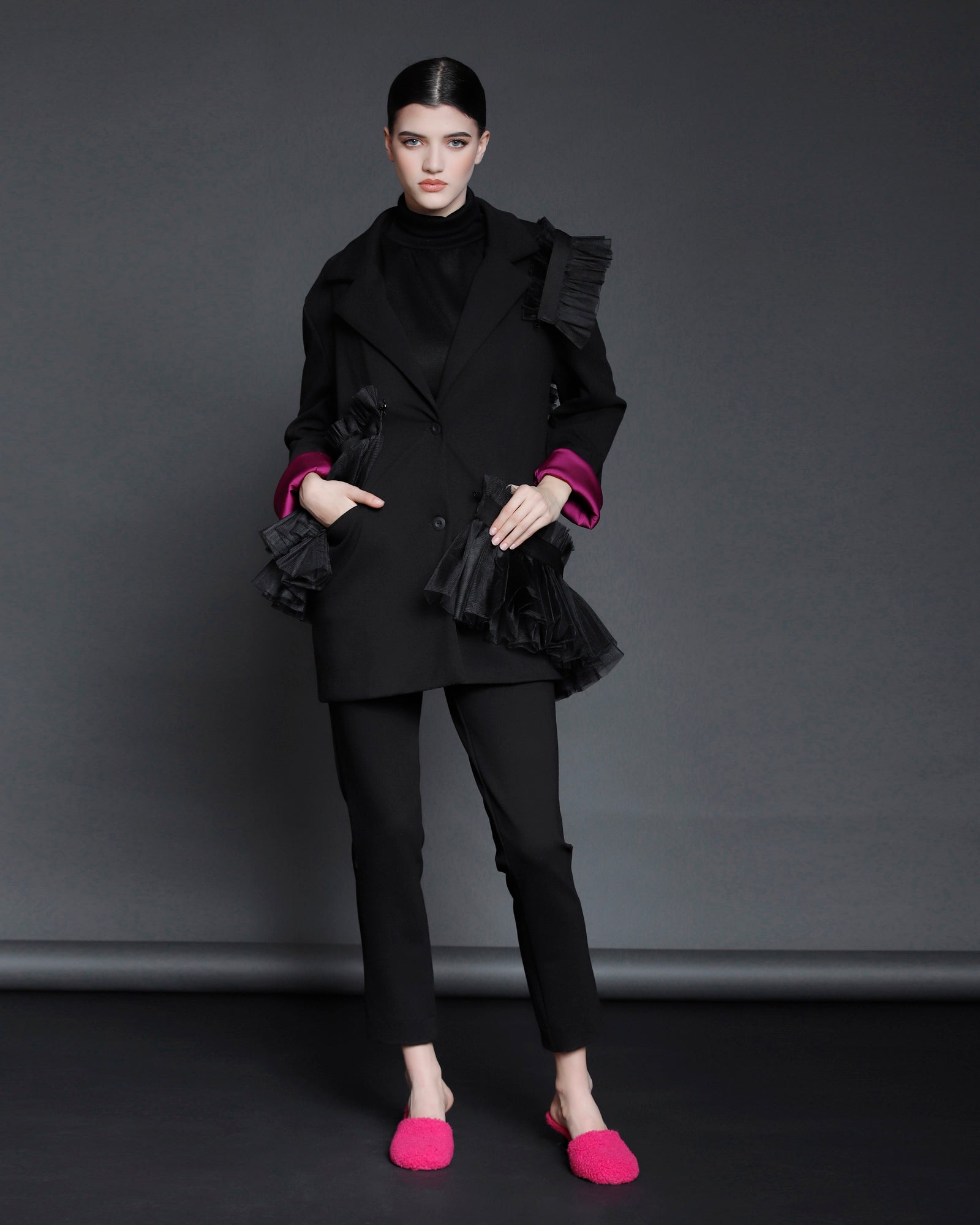 Nu se pastreaza stocuri si niciun material nu este risipit. O echipa foarte calificata asigura calitate si croiala exceptionala. Designurile din piese iconice sau colectii anterioare pot fi realizate la comanda, cu optiuni personalizate de material din selectia actuala.