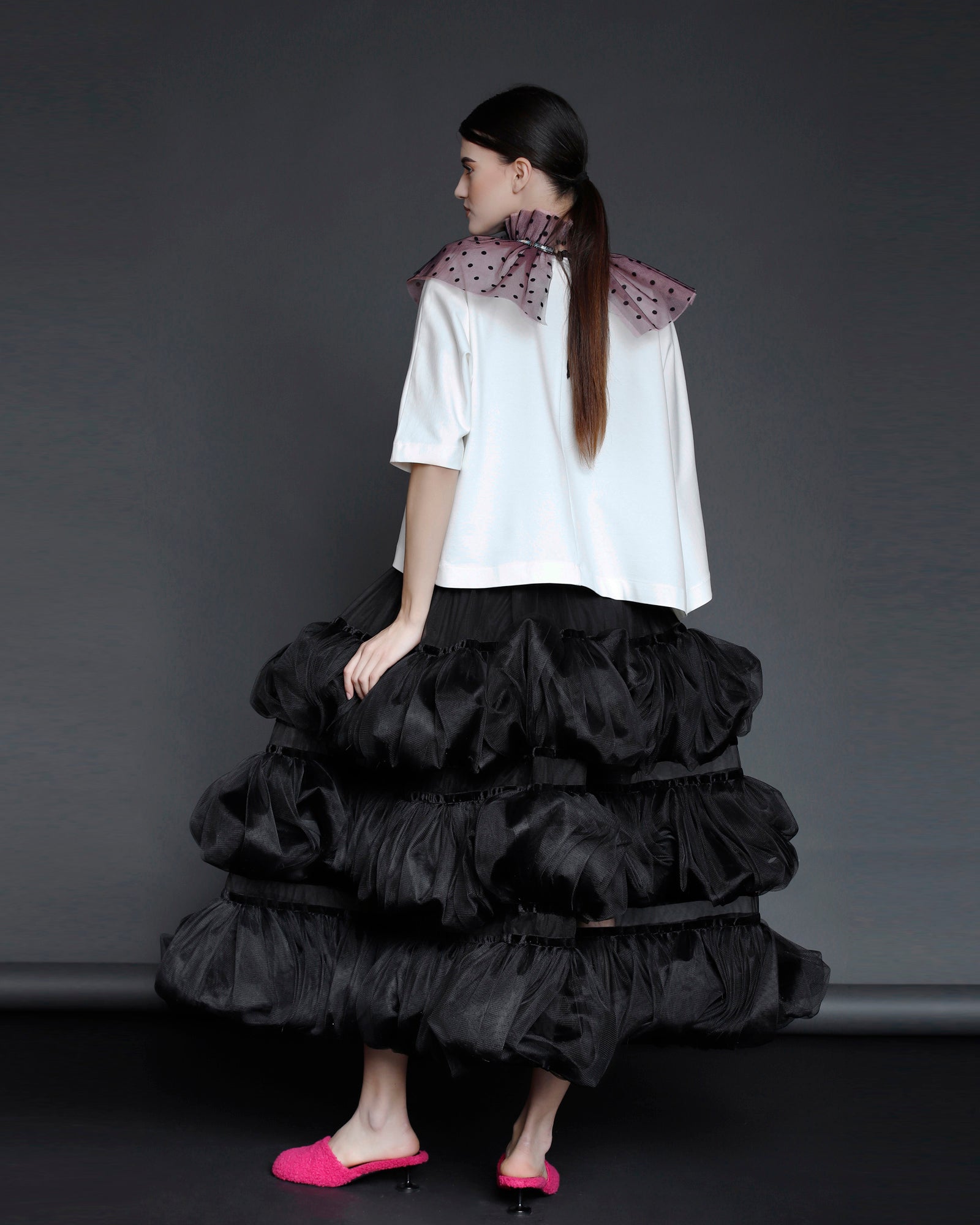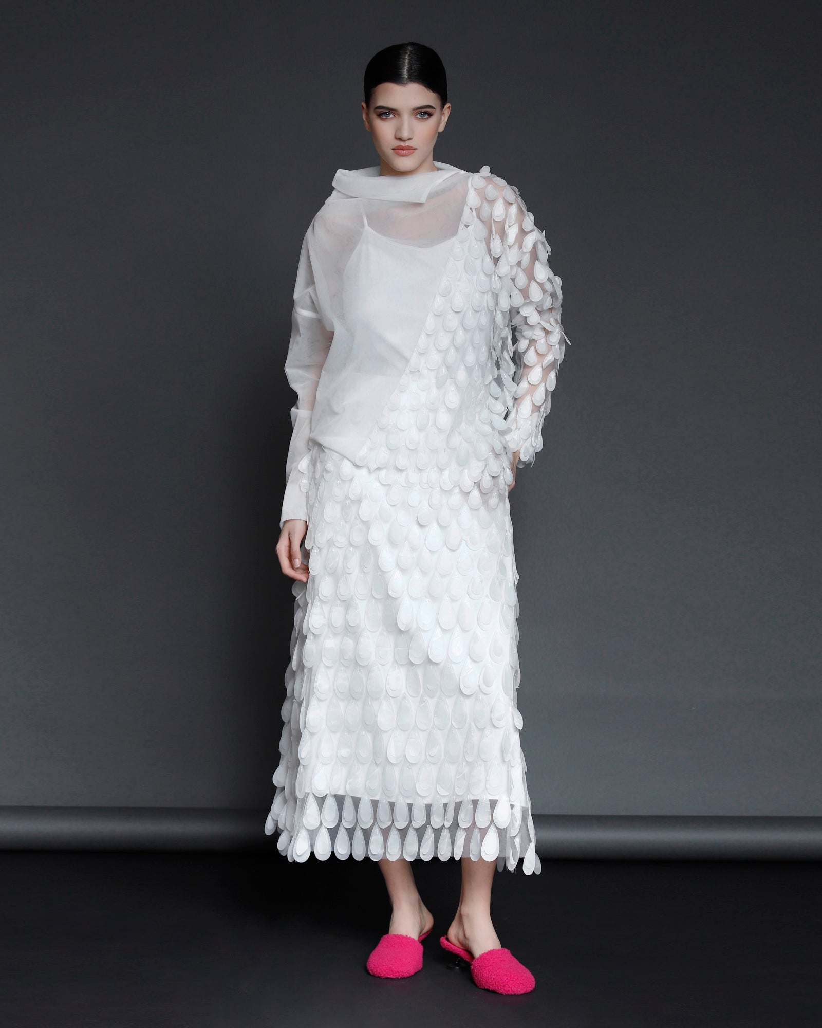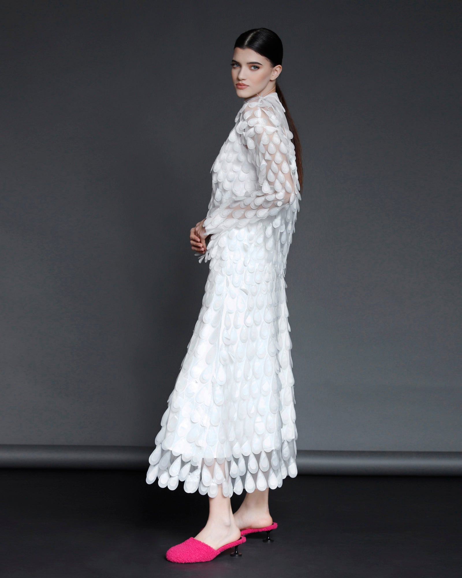 Nu se pastreaza stocuri si niciun material nu este risipit. O echipa foarte calificata asigura calitate si croiala exceptionala. Designurile din piese iconice sau colectii anterioare pot fi realizate la comanda, cu optiuni personalizate de material din selectia actuala.