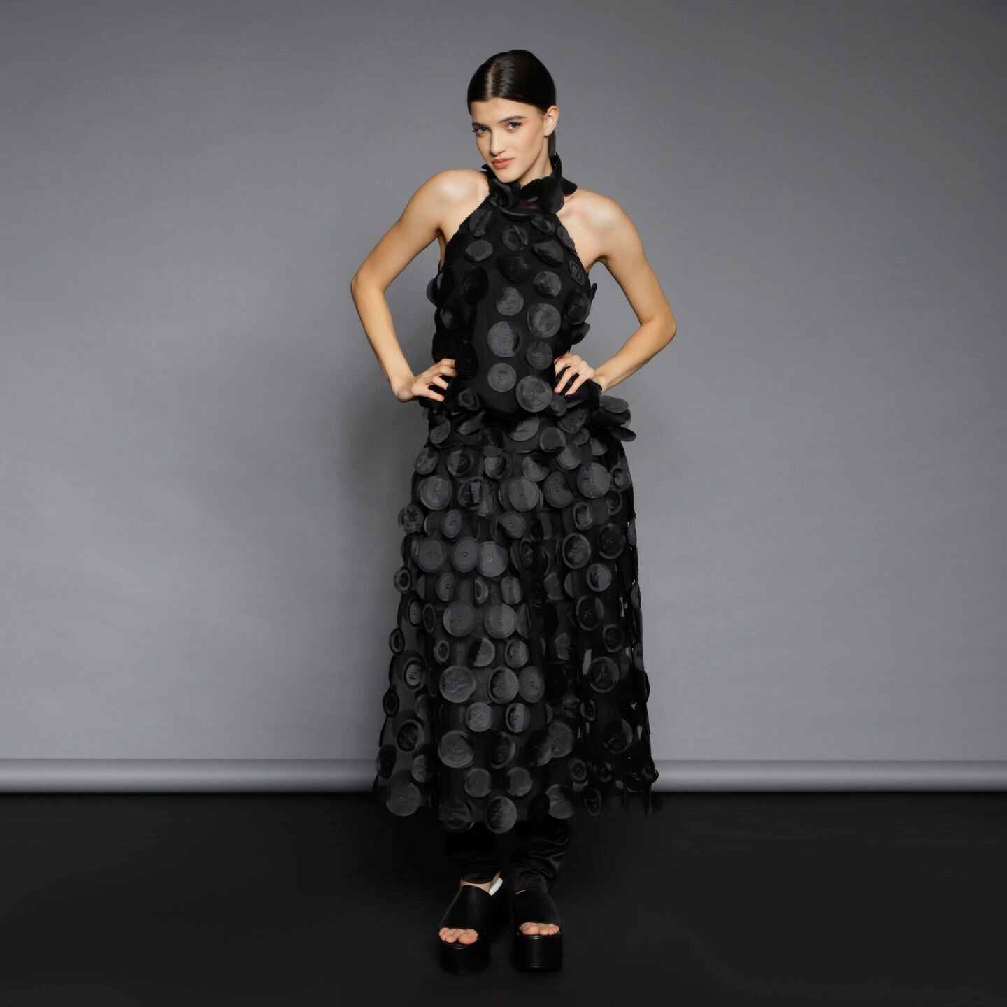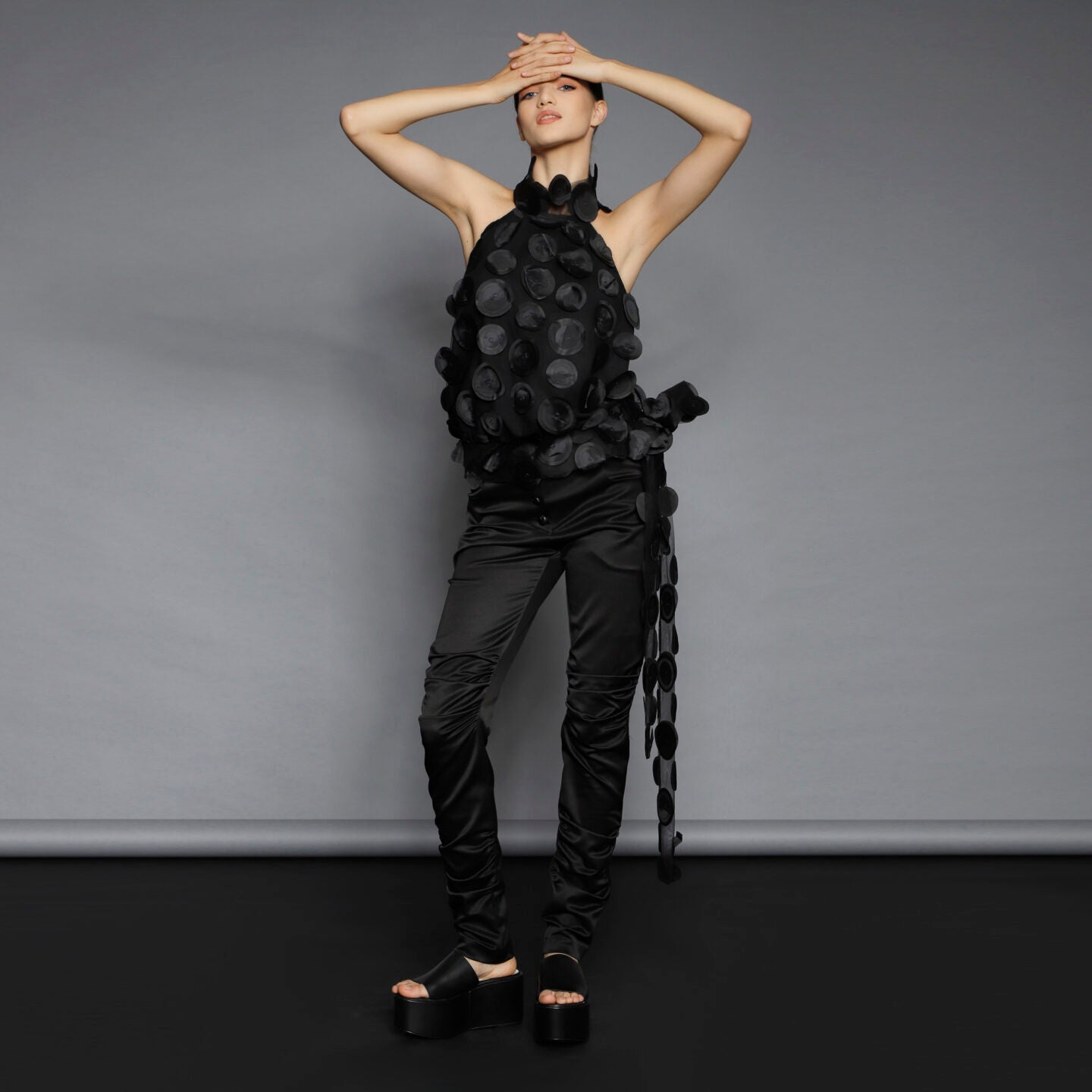 Nu se pastreaza stocuri si niciun material nu este risipit. O echipa foarte calificata asigura calitate si croiala exceptionala. Designurile din piese iconice sau colectii anterioare pot fi realizate la comanda, cu optiuni personalizate de material din selectia actuala.