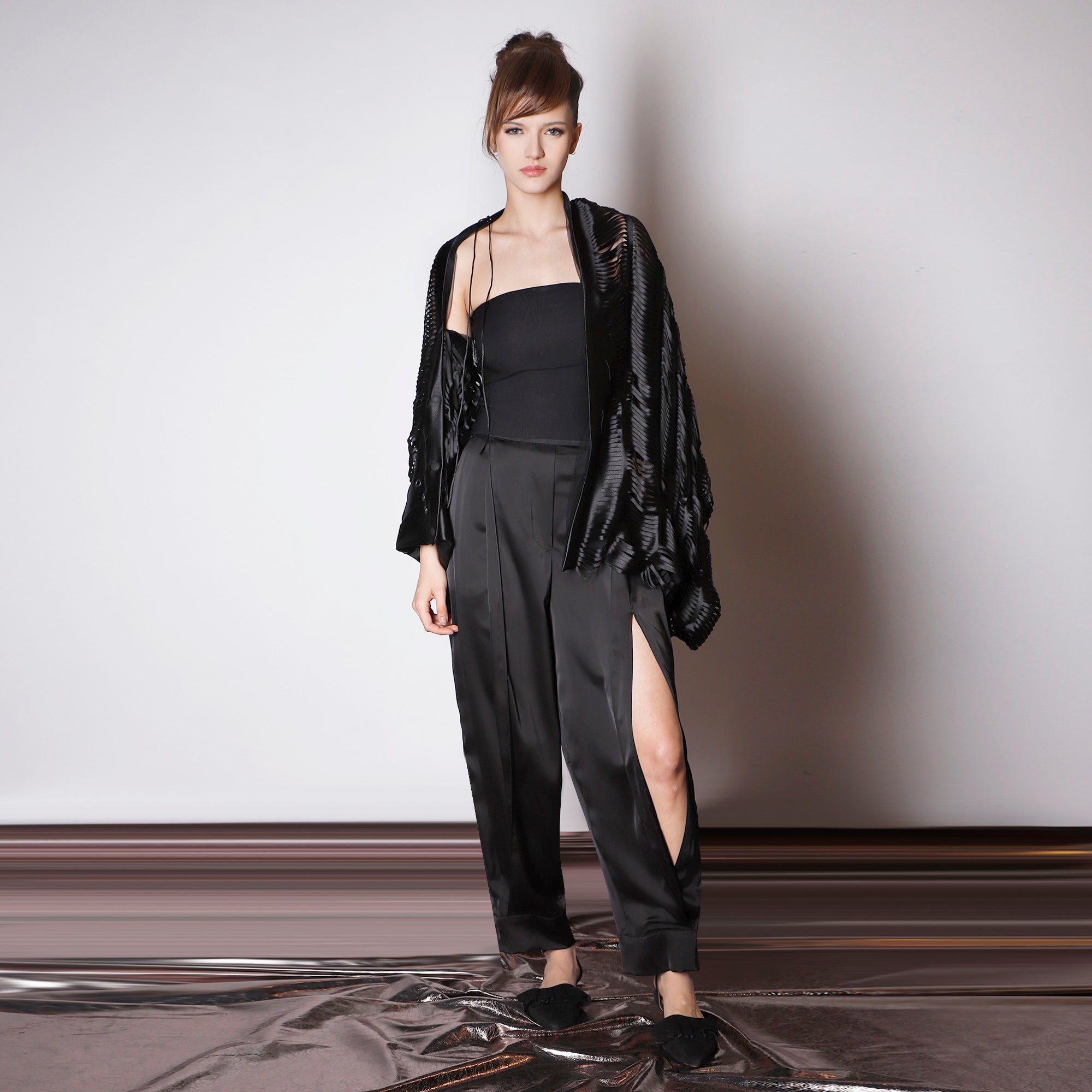 Nu se pastreaza stocuri si niciun material nu este risipit. O echipa foarte calificata asigura calitate si croiala exceptionala. Designurile din piese iconice sau colectii anterioare pot fi realizate la comanda, cu optiuni personalizate de material din selectia actuala.