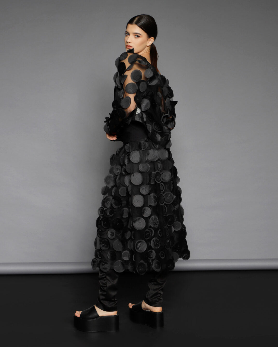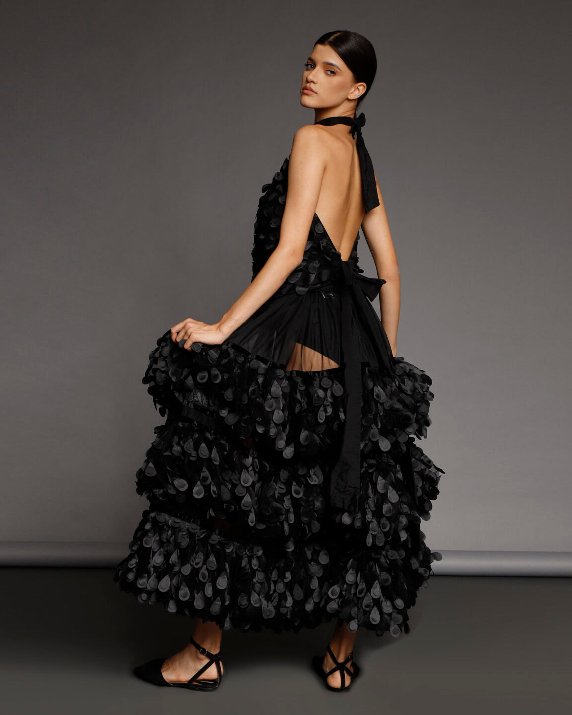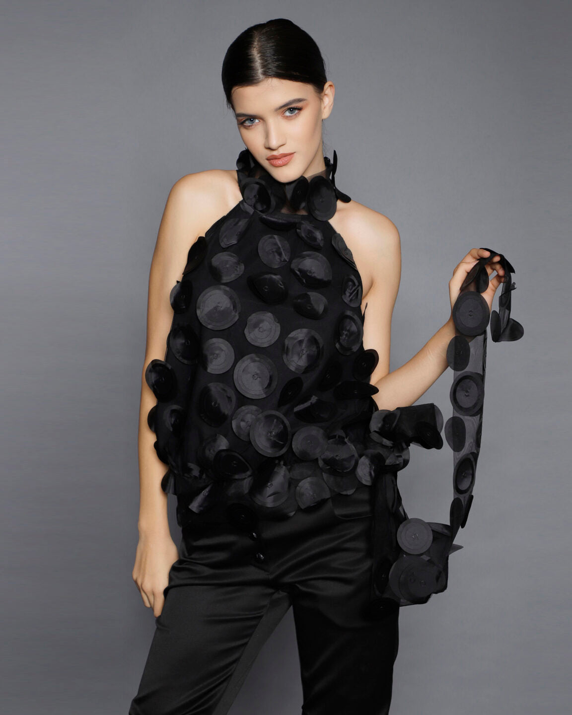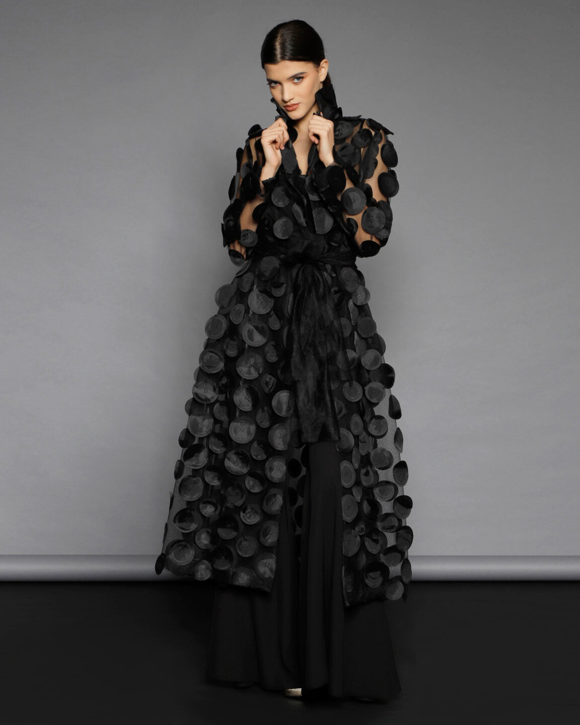 Nu se pastreaza stocuri si niciun material nu este risipit. O echipa foarte calificata asigura calitate si croiala exceptionala. Designurile din piese iconice sau colectii anterioare pot fi realizate la comanda, cu optiuni personalizate de material din selectia actuala.