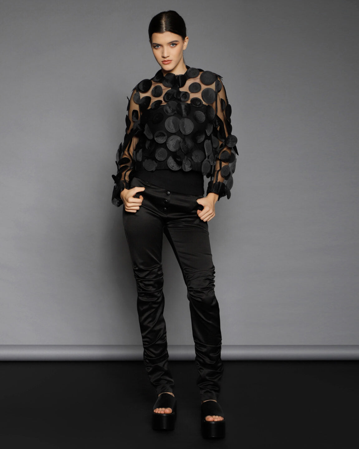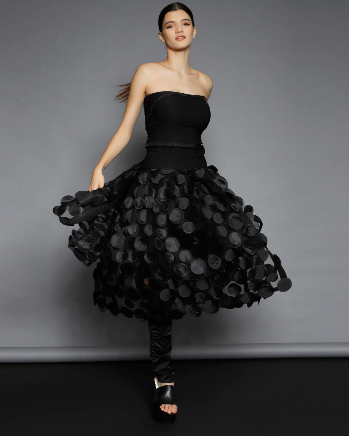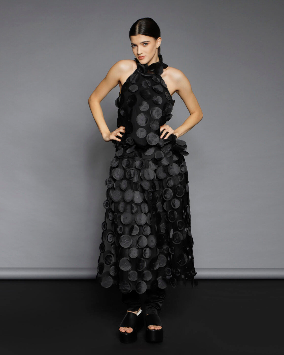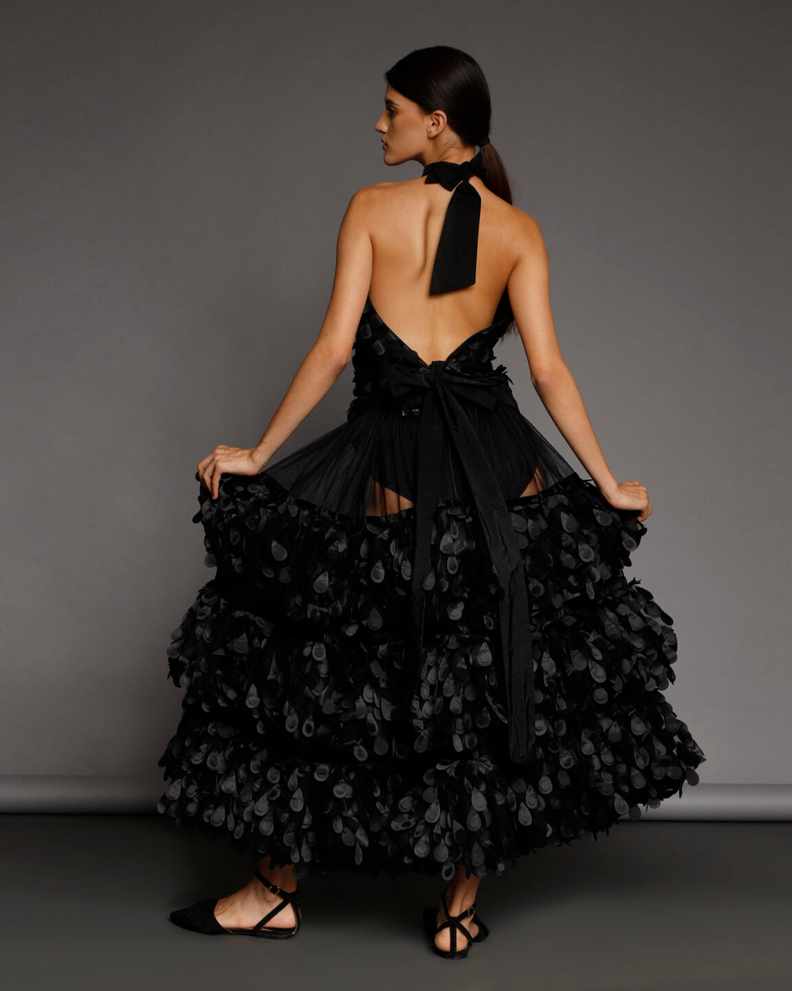 Nu se pastreaza stocuri si niciun material nu este risipit. O echipa foarte calificata asigura calitate si croiala exceptionala. Designurile din piese iconice sau colectii anterioare pot fi realizate la comanda, cu optiuni personalizate de material din selectia actuala.