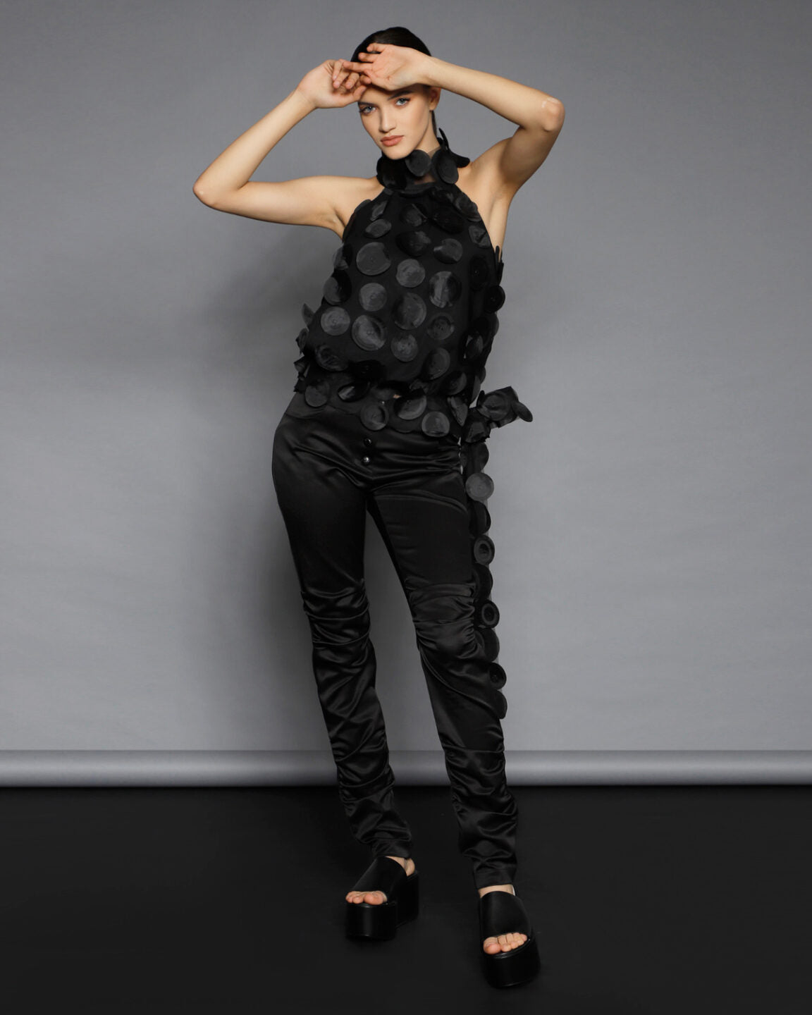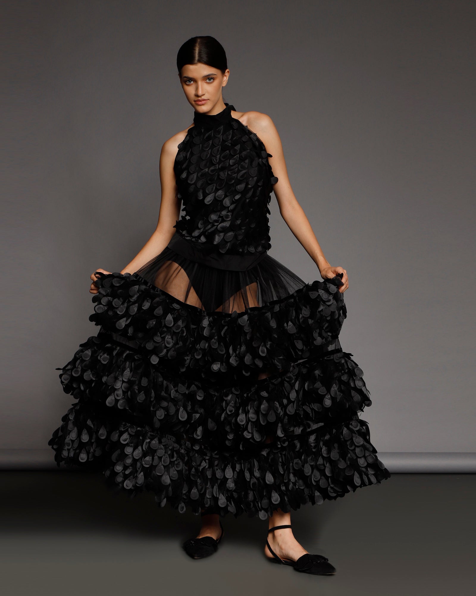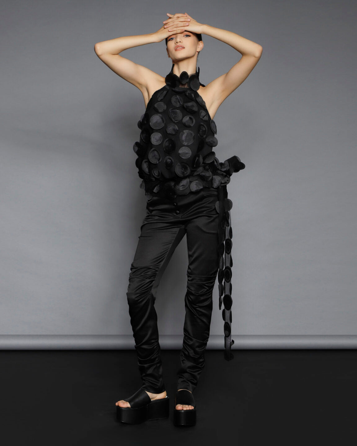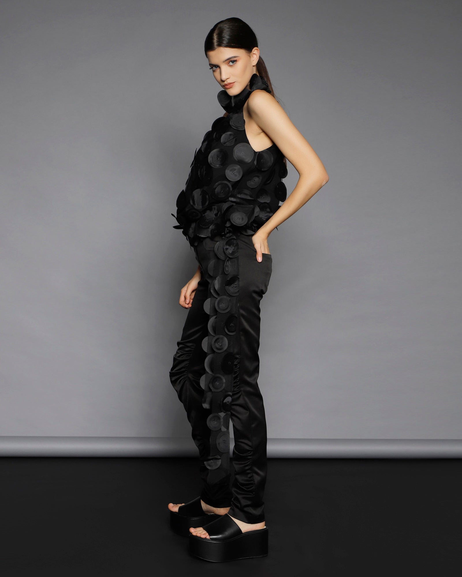Nu se pastreaza stocuri si niciun material nu este risipit. O echipa foarte calificata asigura calitate si croiala exceptionala. Designurile din piese iconice sau colectii anterioare pot fi realizate la comanda, cu optiuni personalizate de material din selectia actuala.