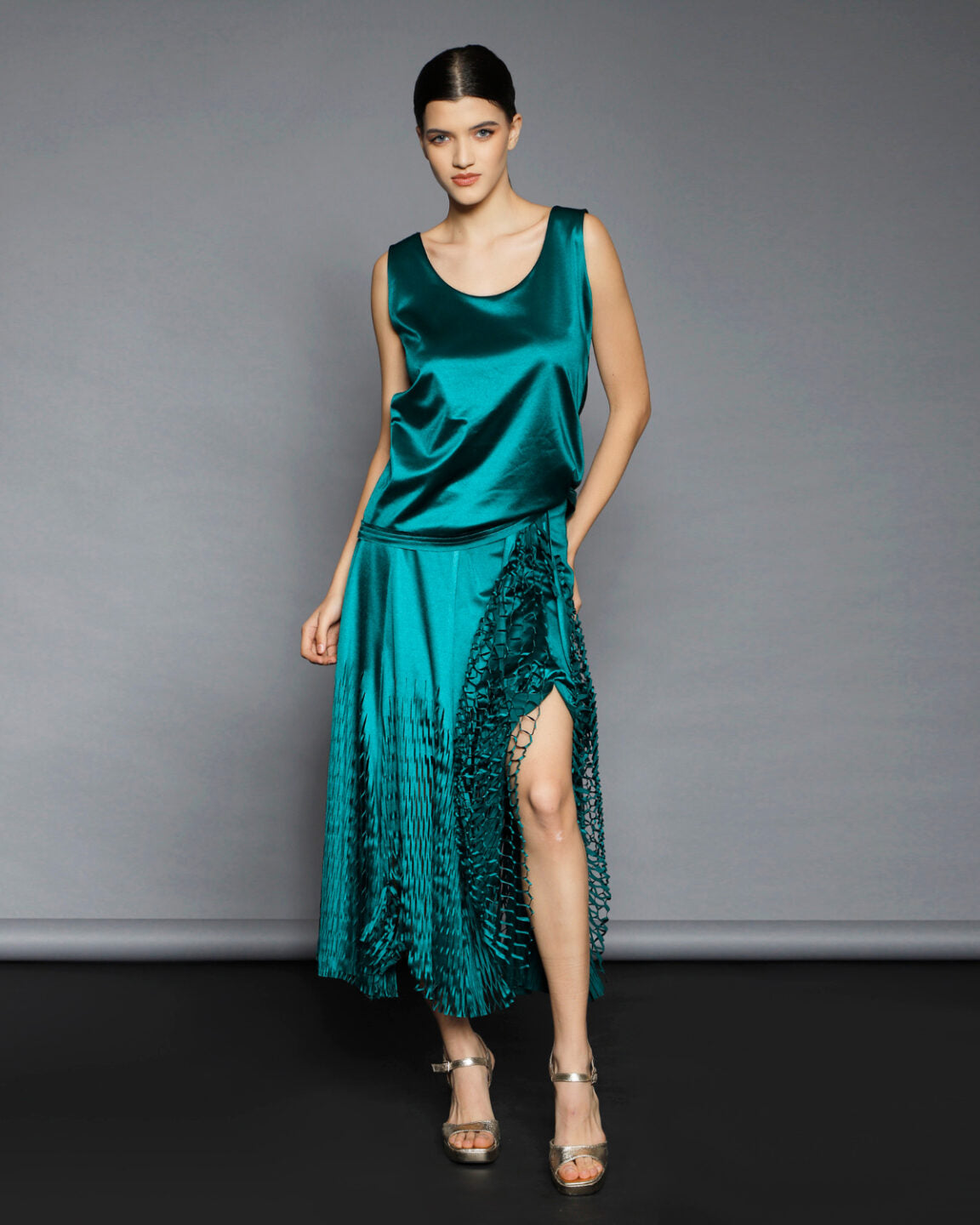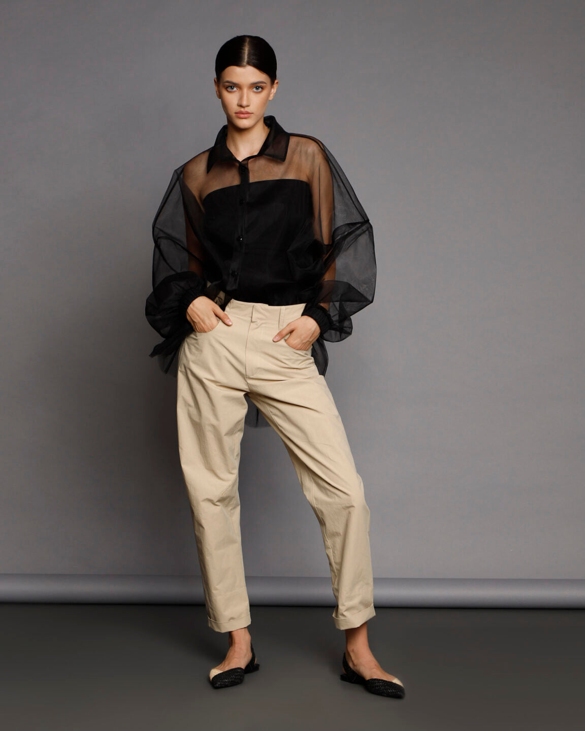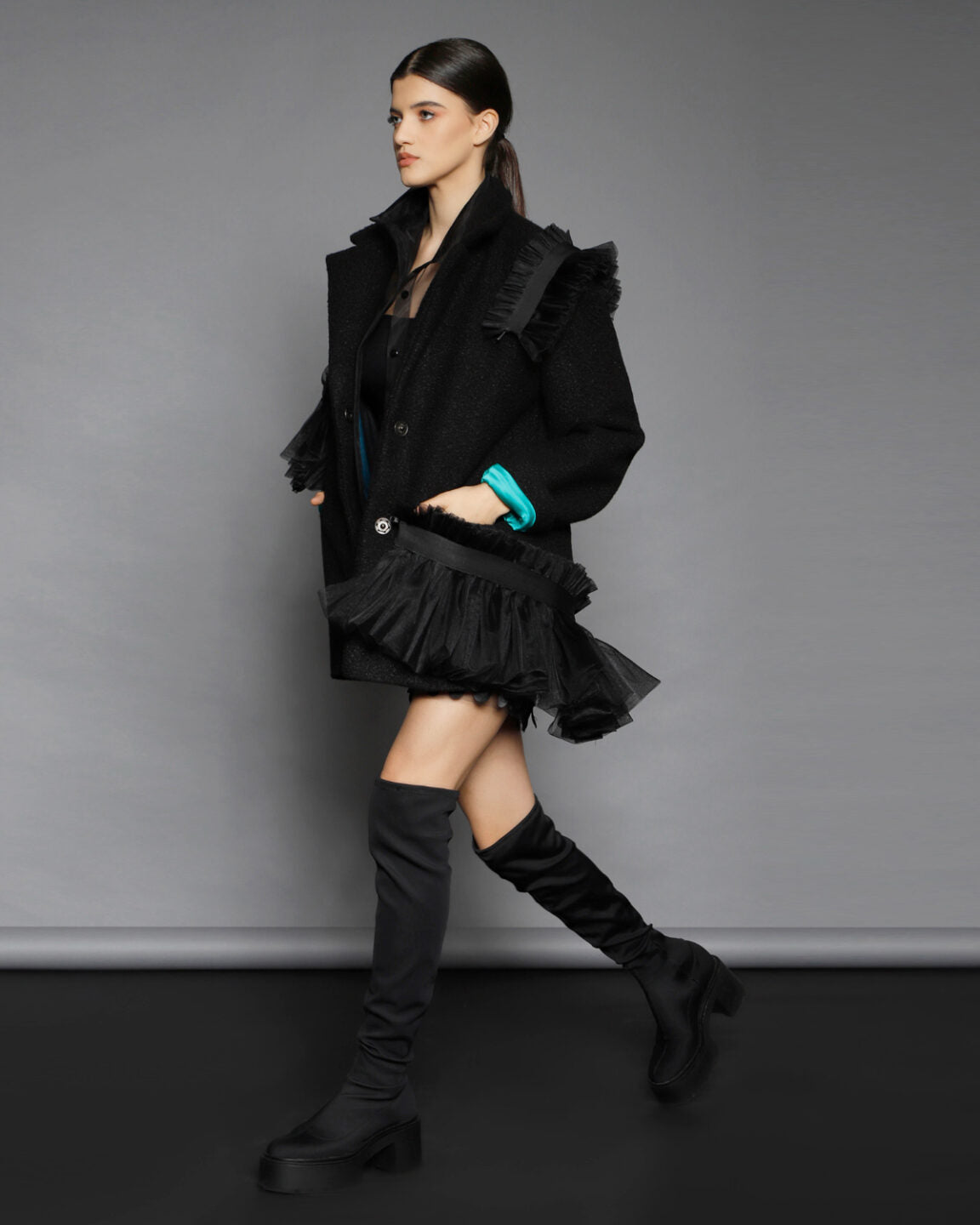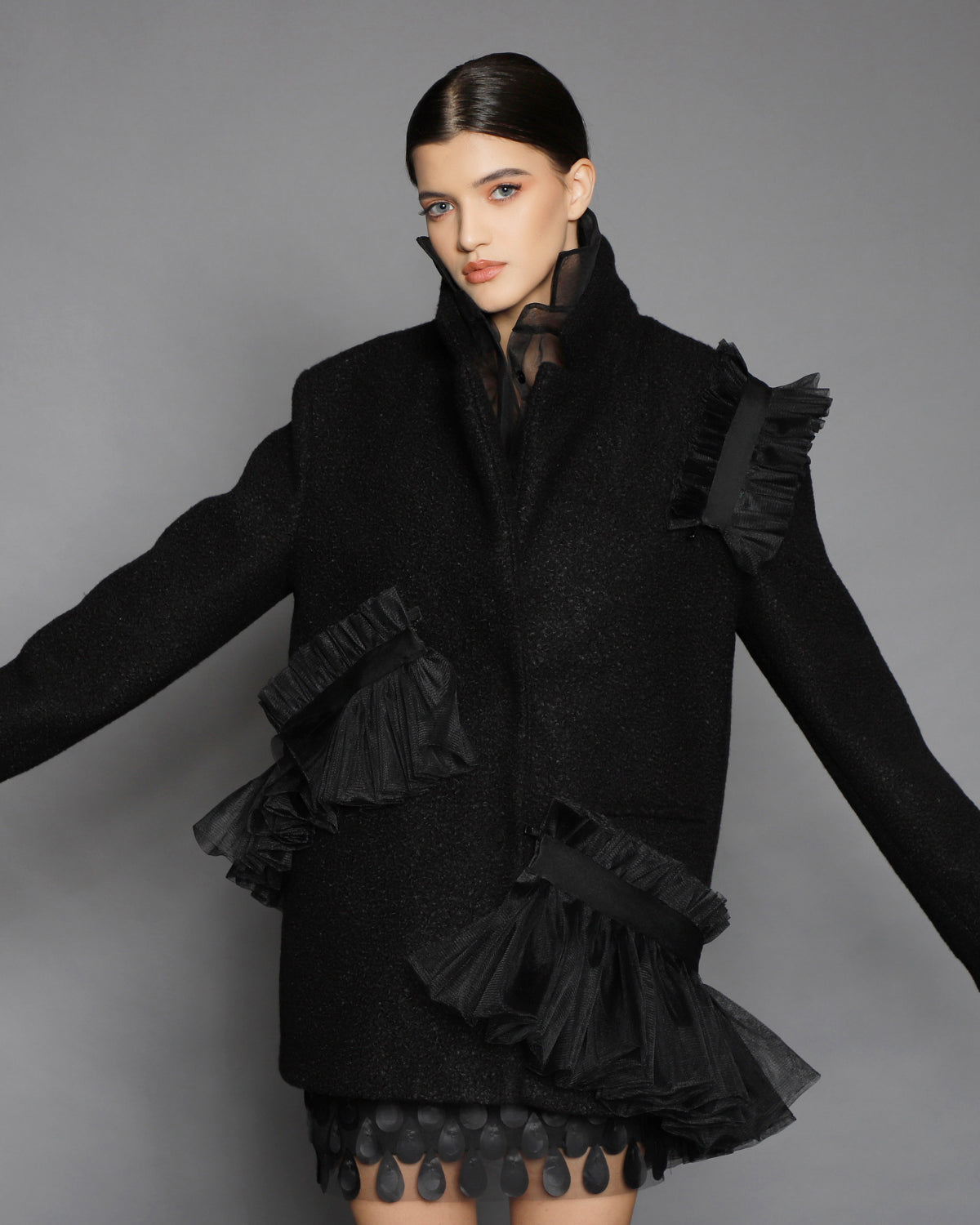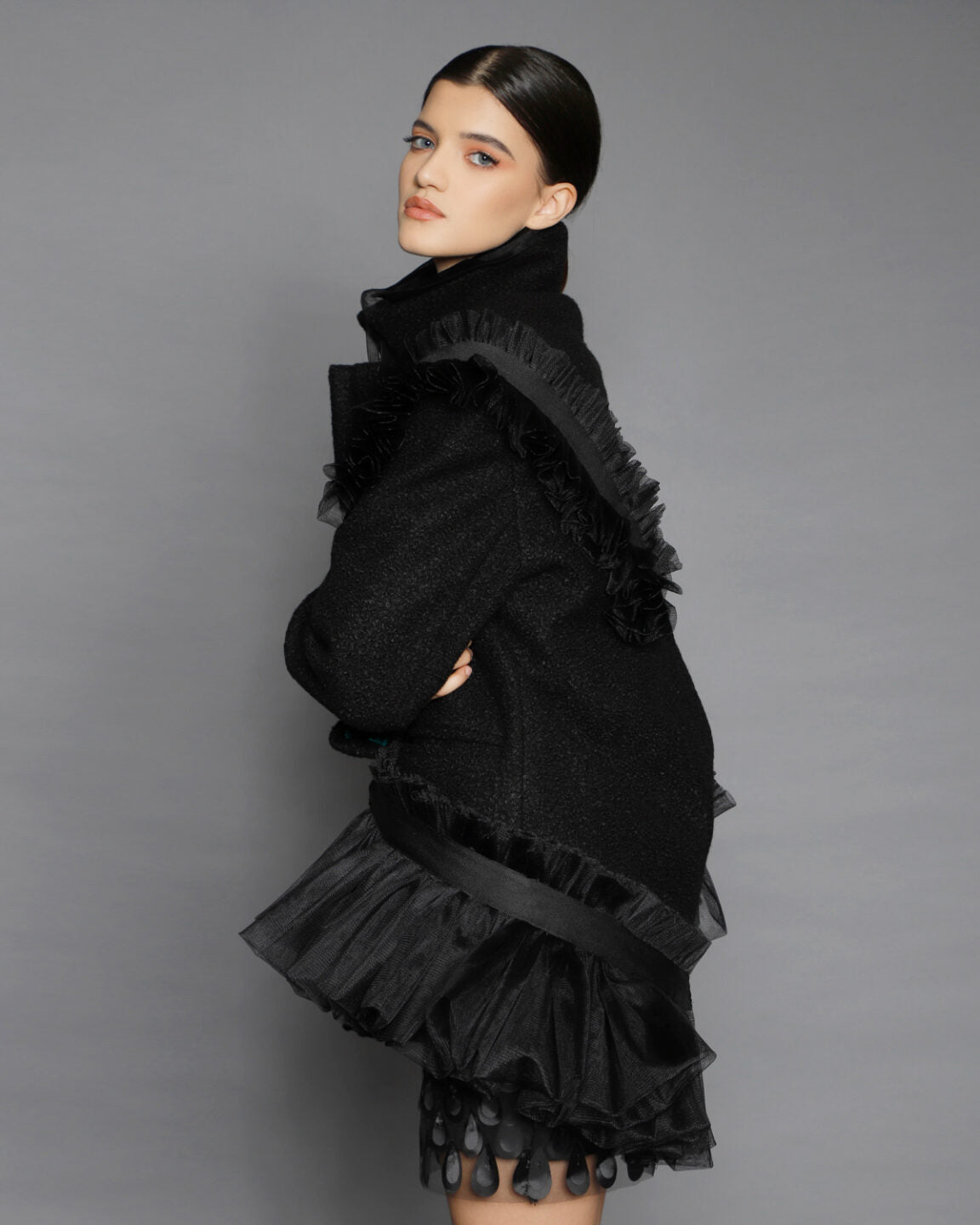 Nu se pastreaza stocuri si niciun material nu este risipit. O echipa foarte calificata asigura calitate si croiala exceptionala. Designurile din piese iconice sau colectii anterioare pot fi realizate la comanda, cu optiuni personalizate de material din selectia actuala.