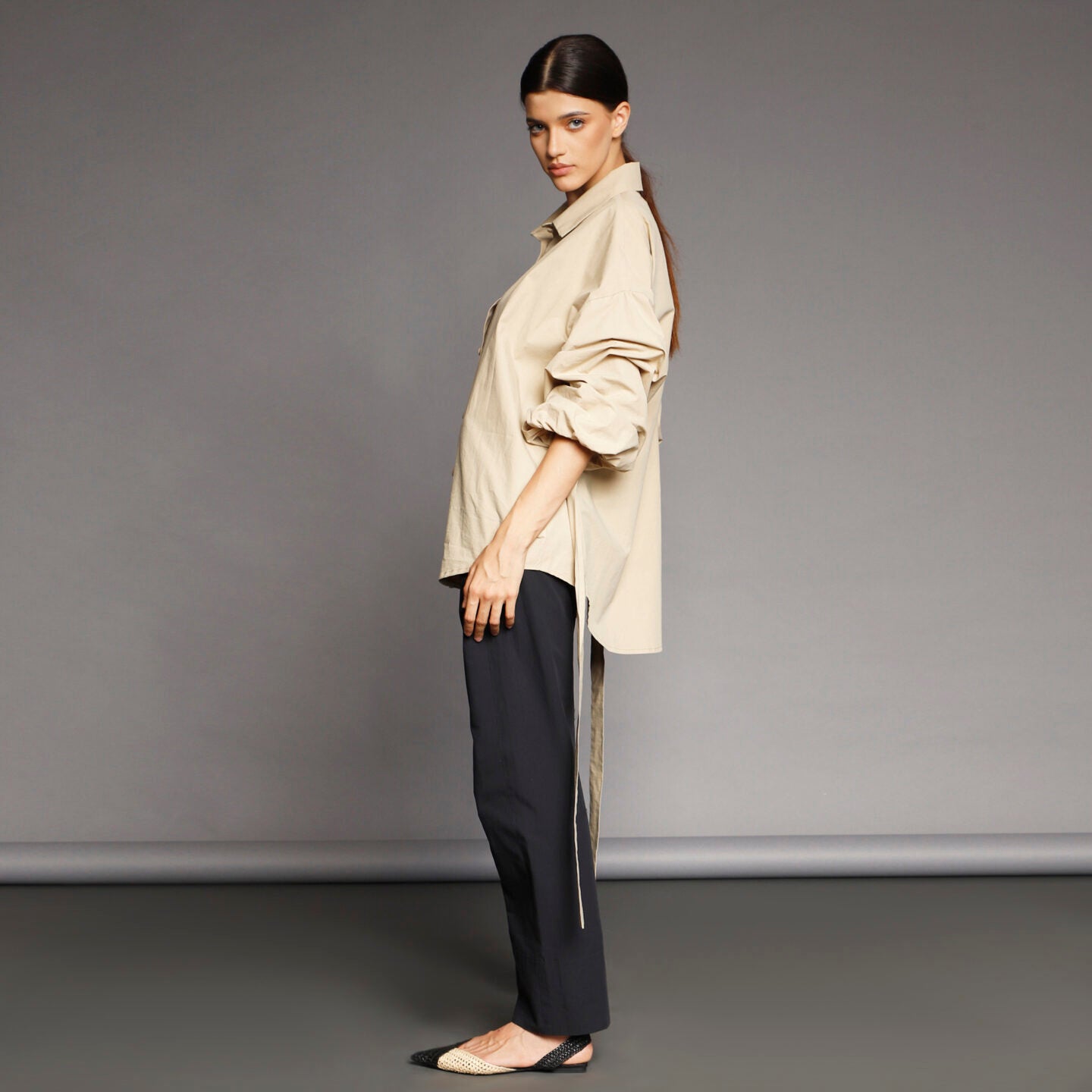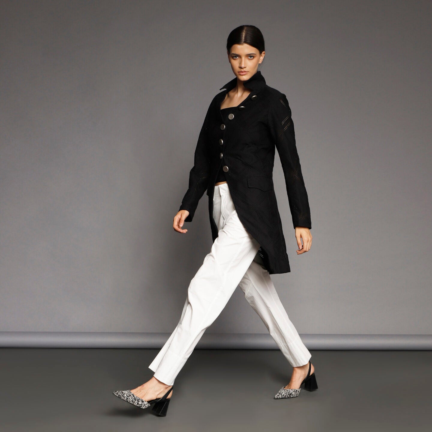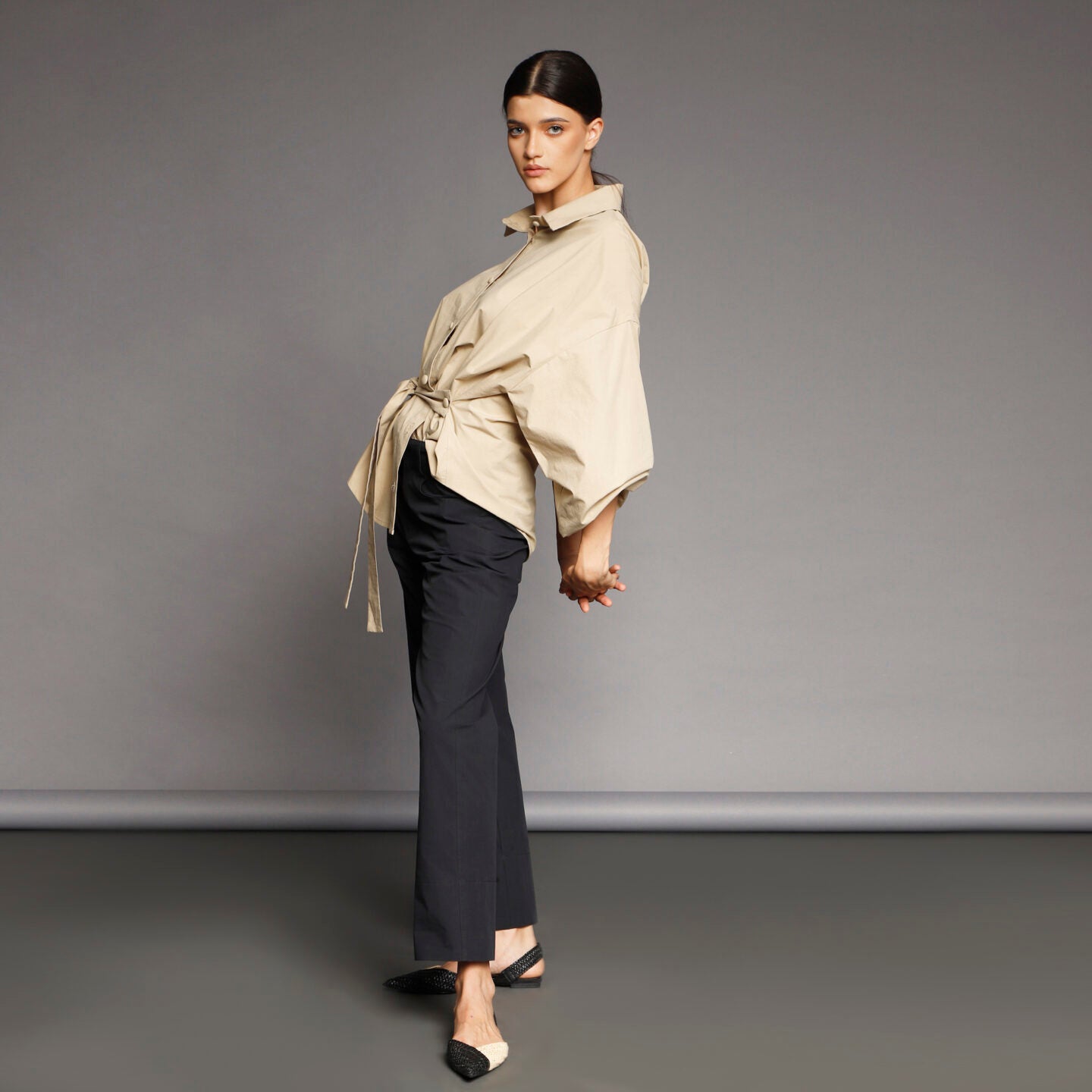 Nu se pastreaza stocuri si niciun material nu este risipit. O echipa foarte calificata asigura calitate si croiala exceptionala. Designurile din piese iconice sau colectii anterioare pot fi realizate la comanda, cu optiuni personalizate de material din selectia actuala.