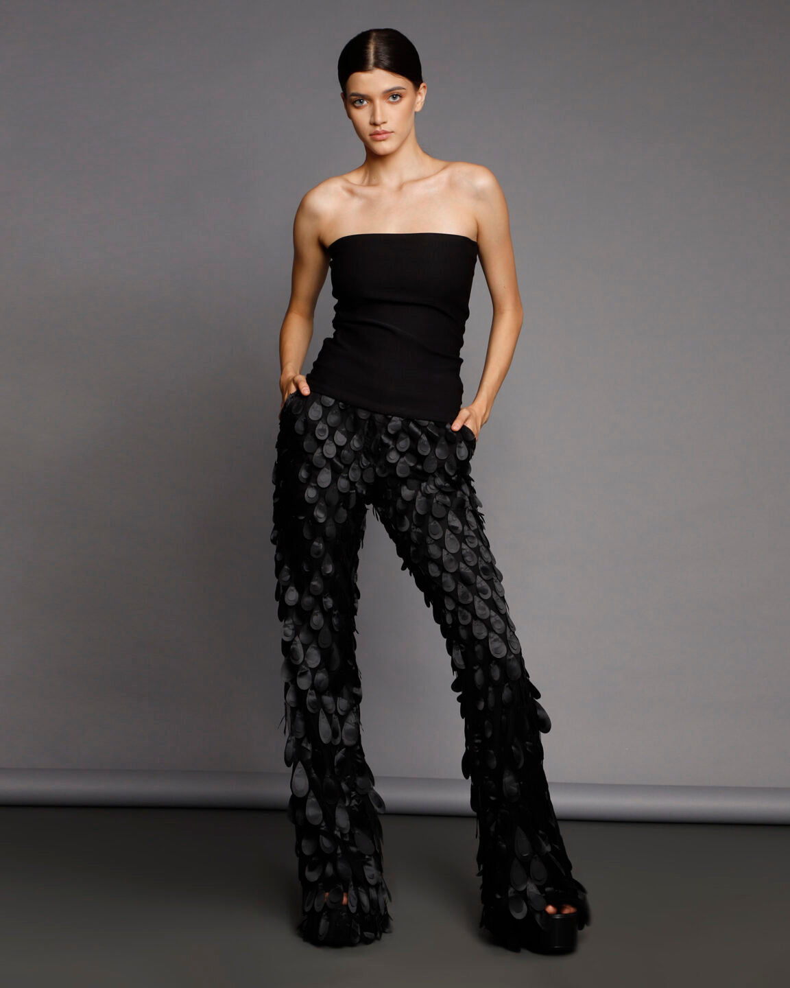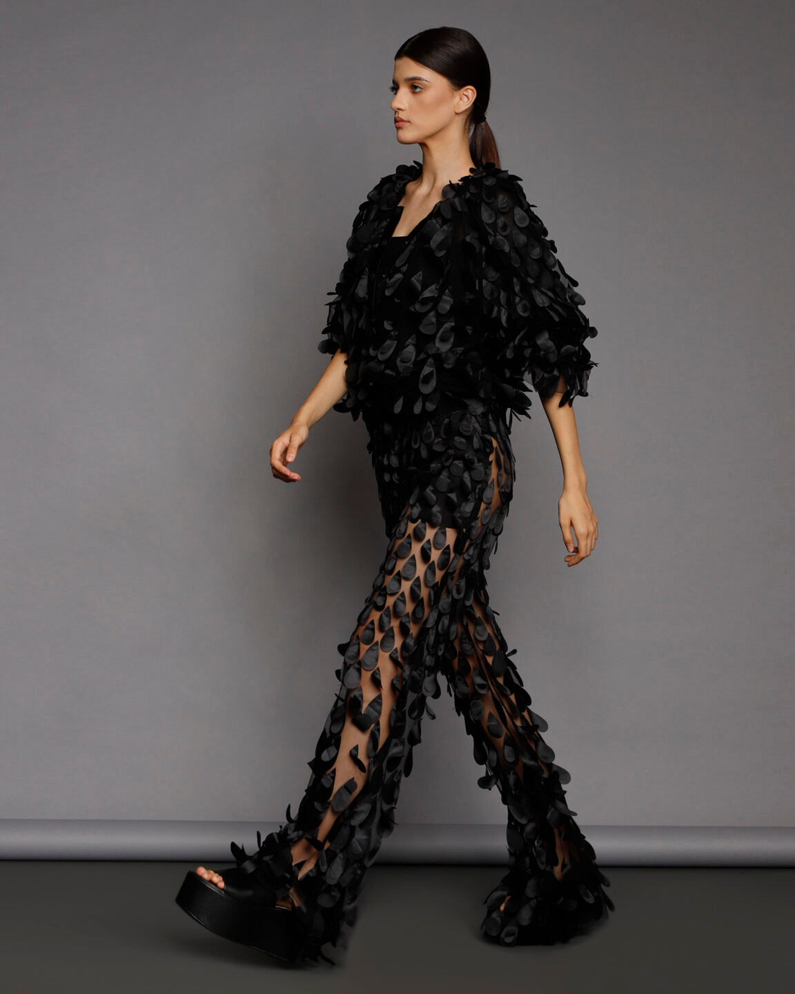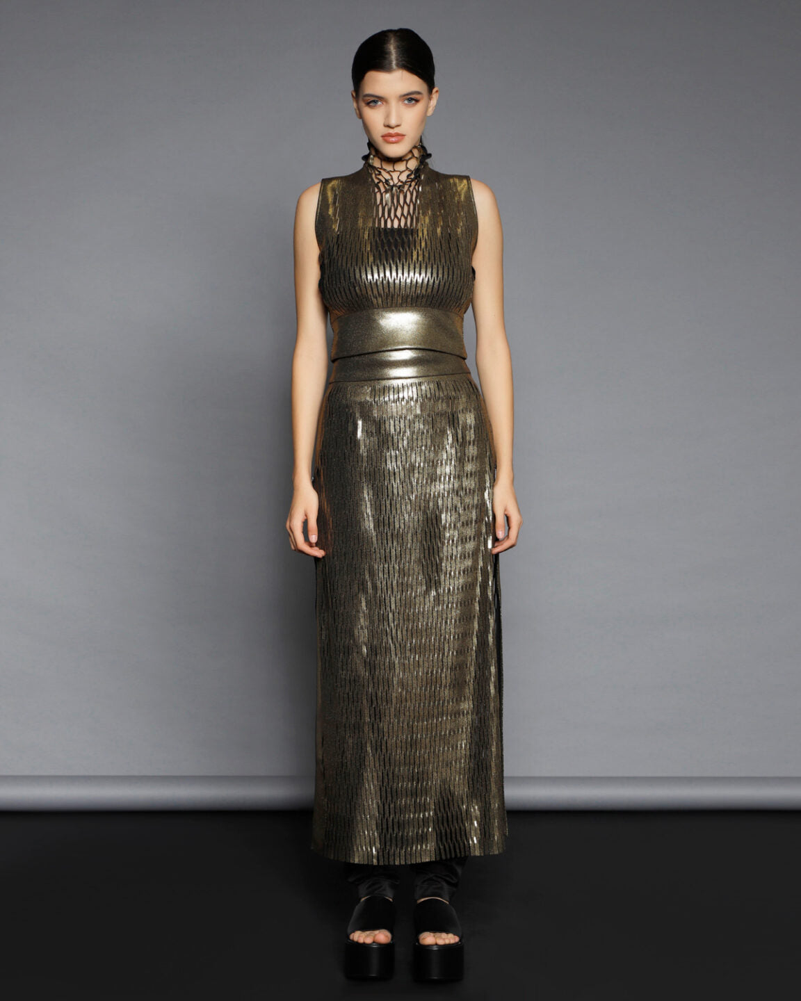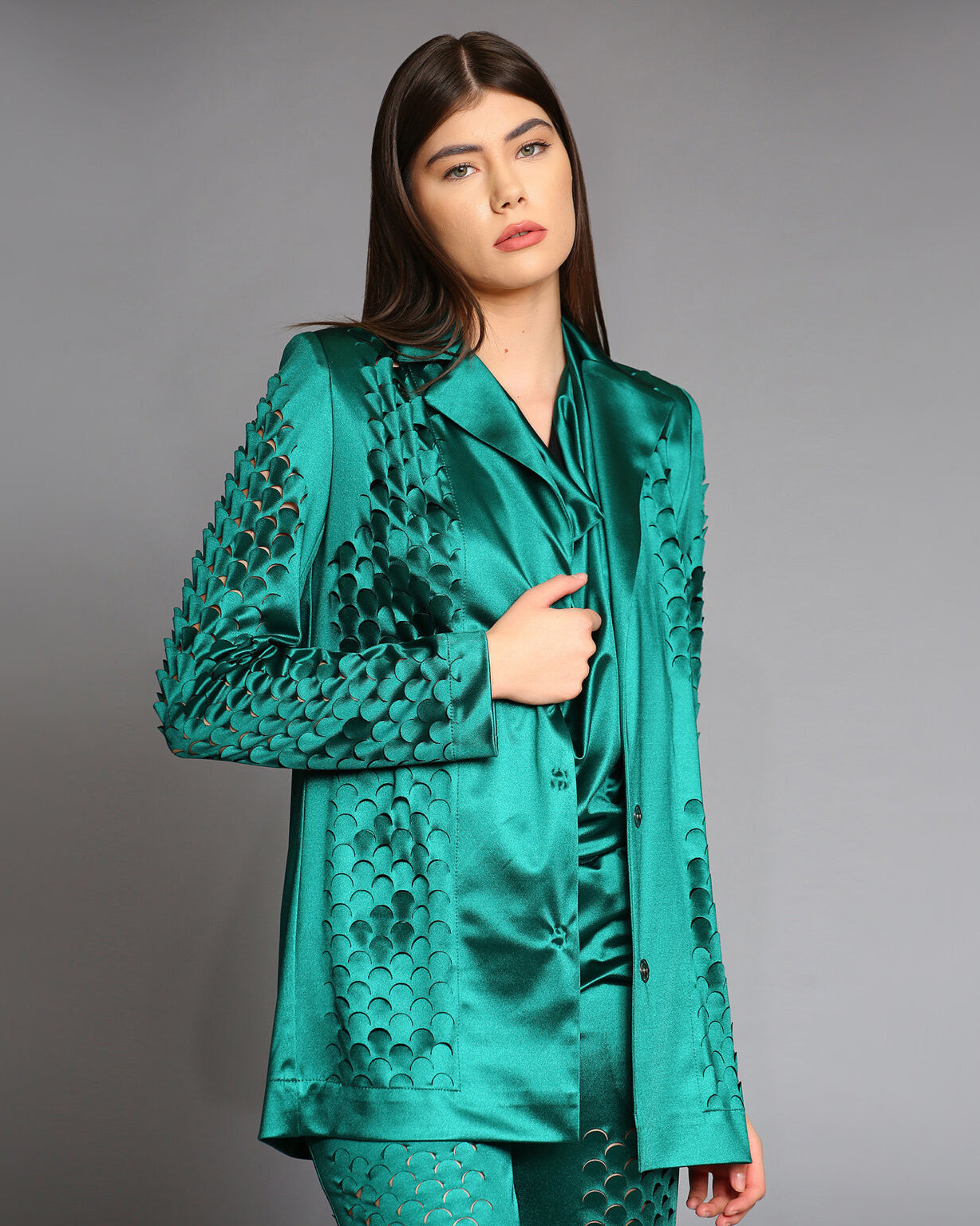 Nu se pastreaza stocuri si niciun material nu este risipit. O echipa foarte calificata asigura calitate si croiala exceptionala. Designurile din piese iconice sau colectii anterioare pot fi realizate la comanda, cu optiuni personalizate de material din selectia actuala.